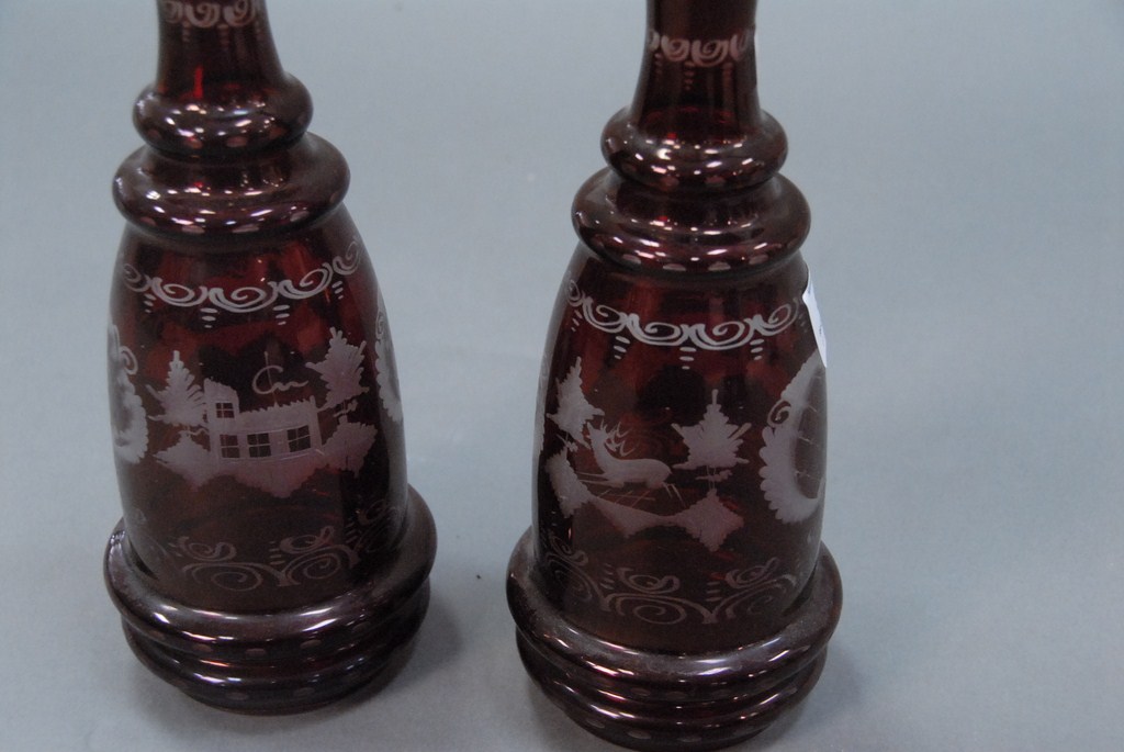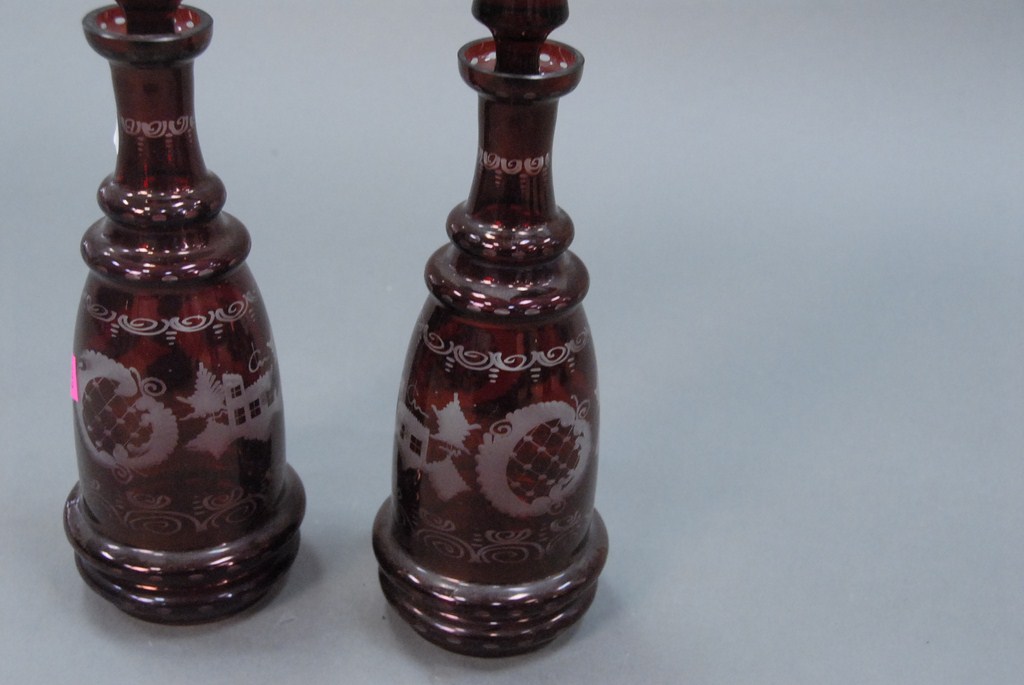 Pair of Bohemian glass decanters with stoppers, ht. 11