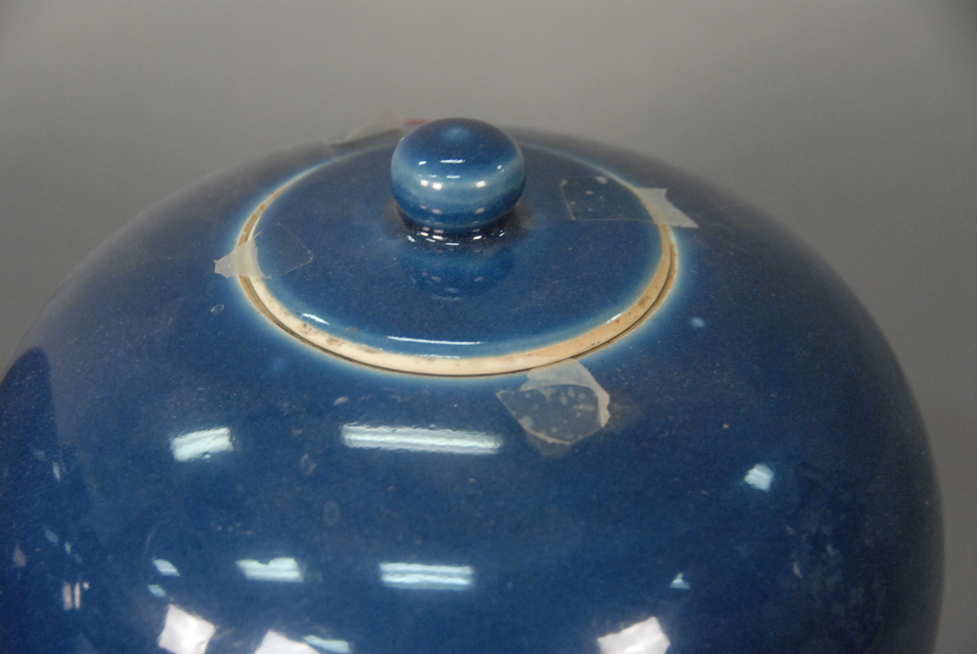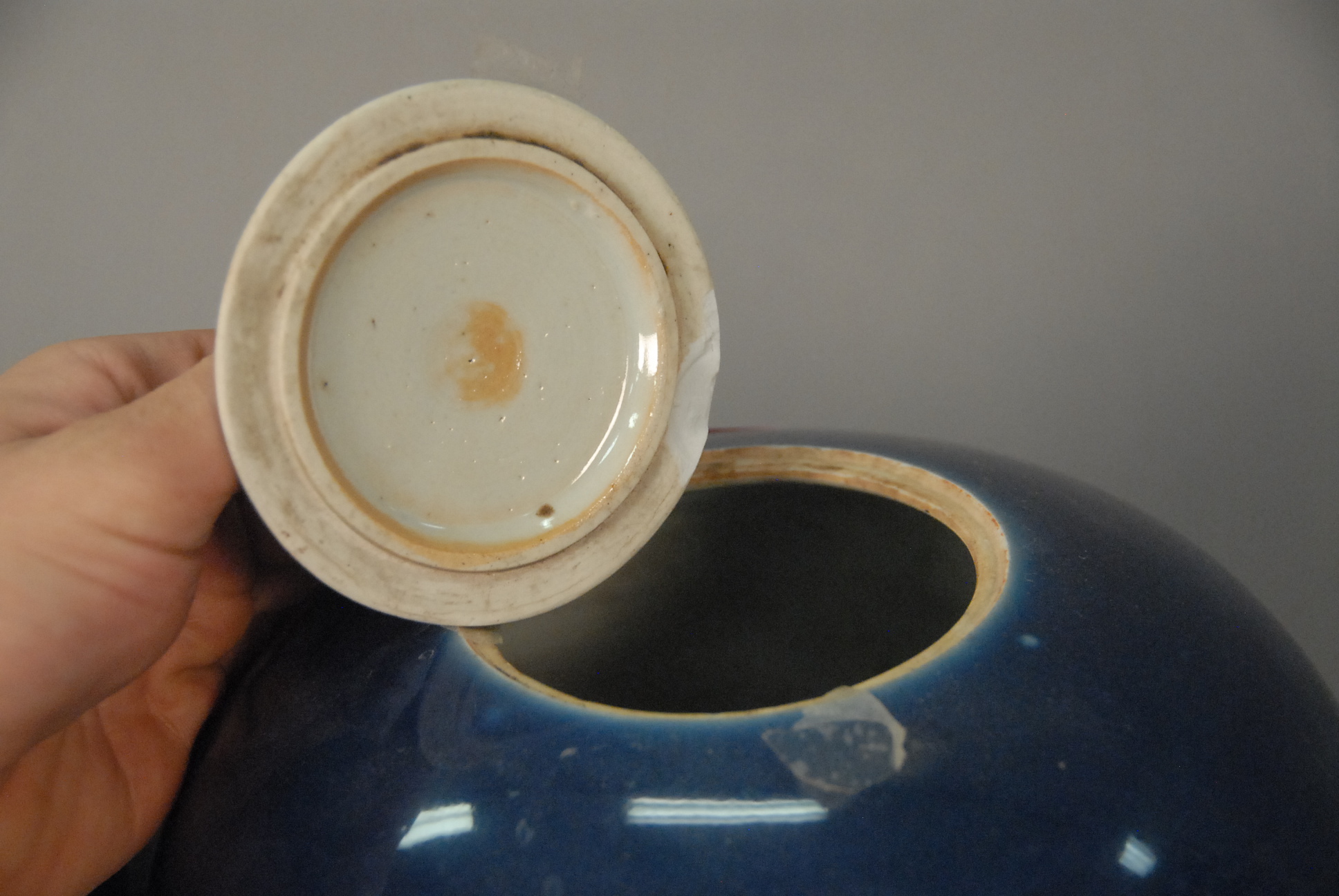 Pair of Chinese blue glazed ginger jars with covers. ht. 9 in.
