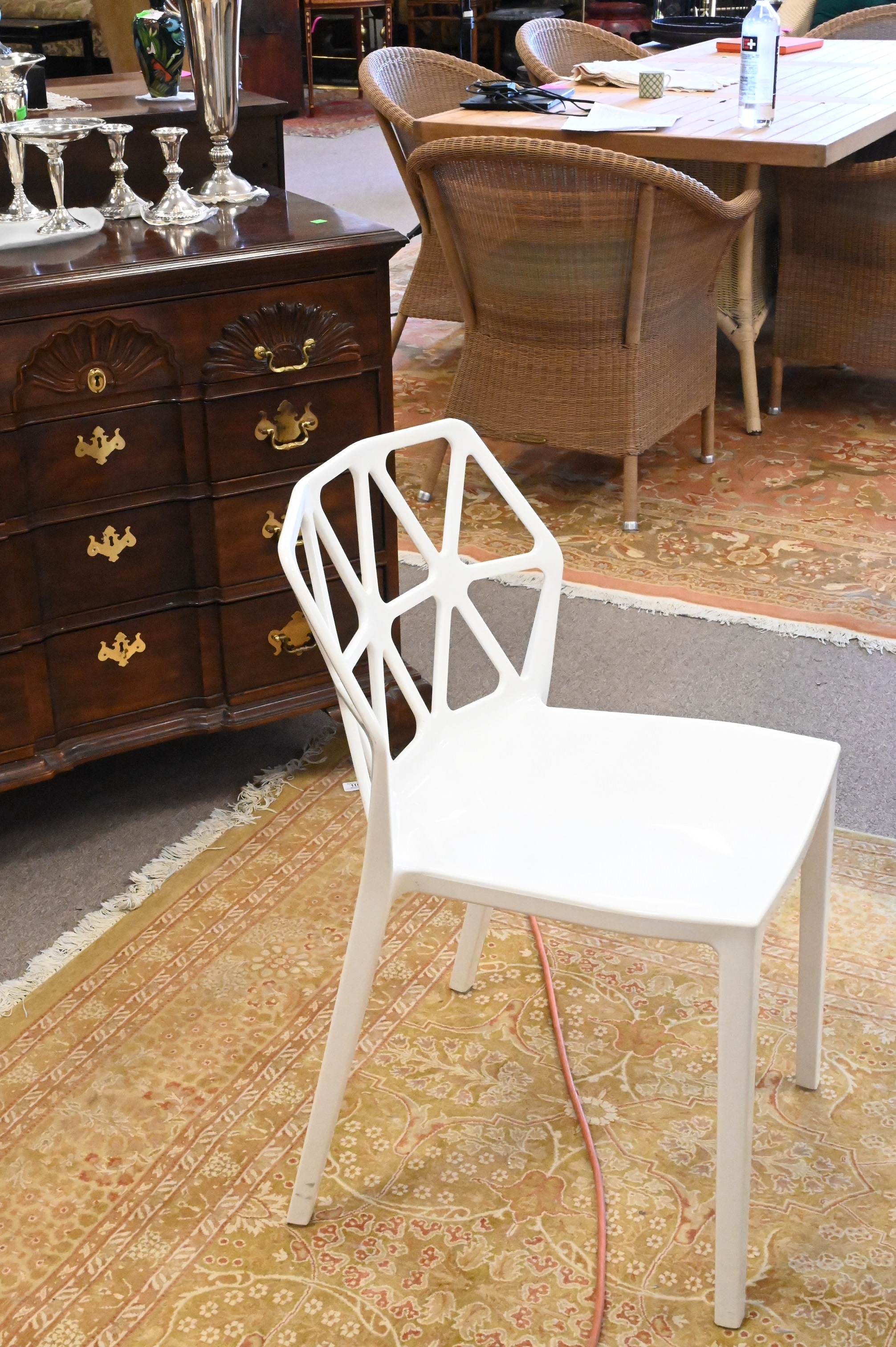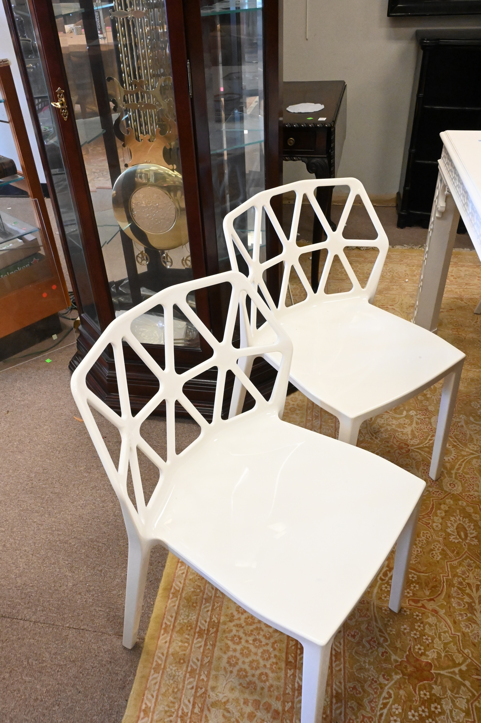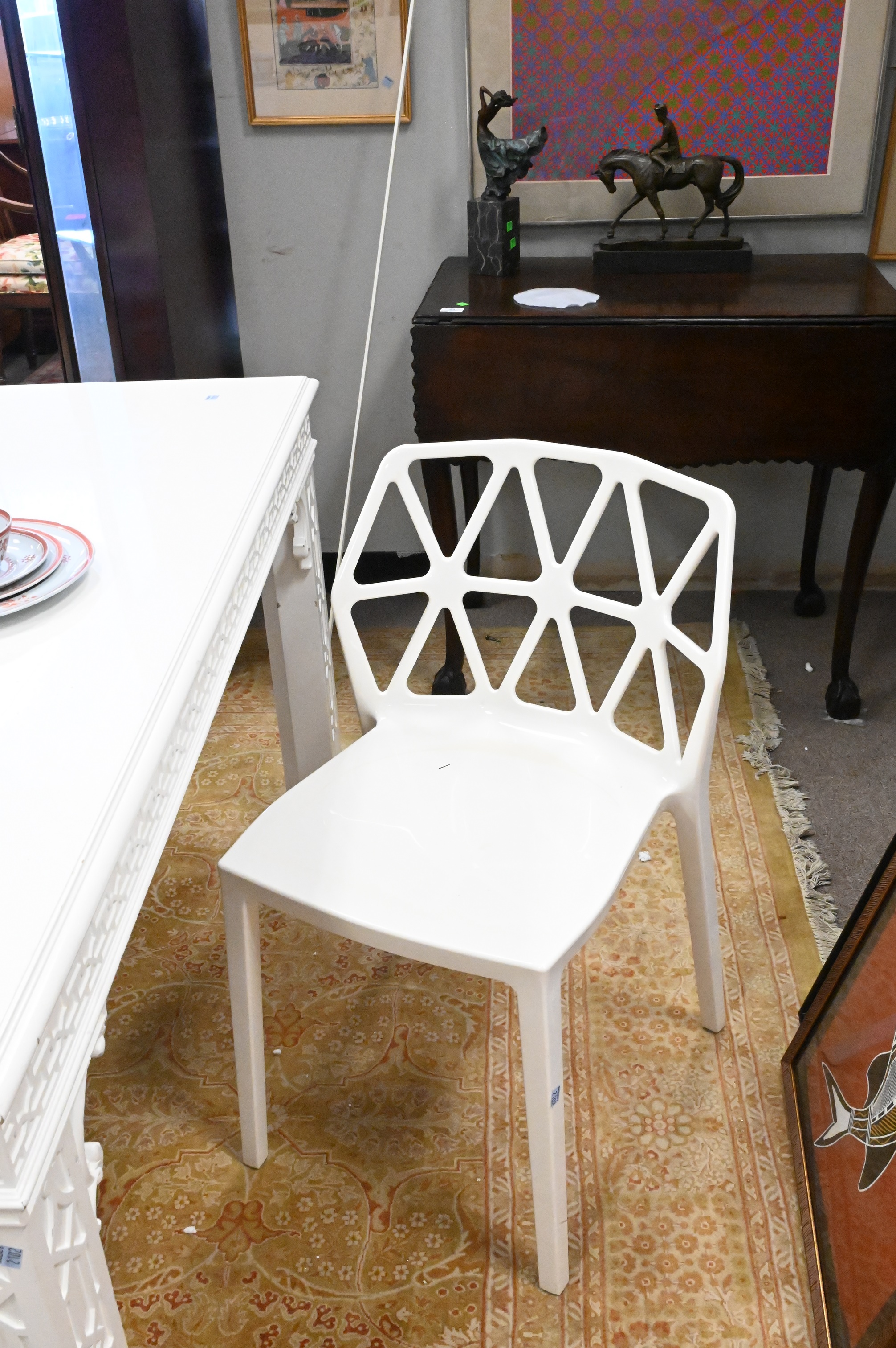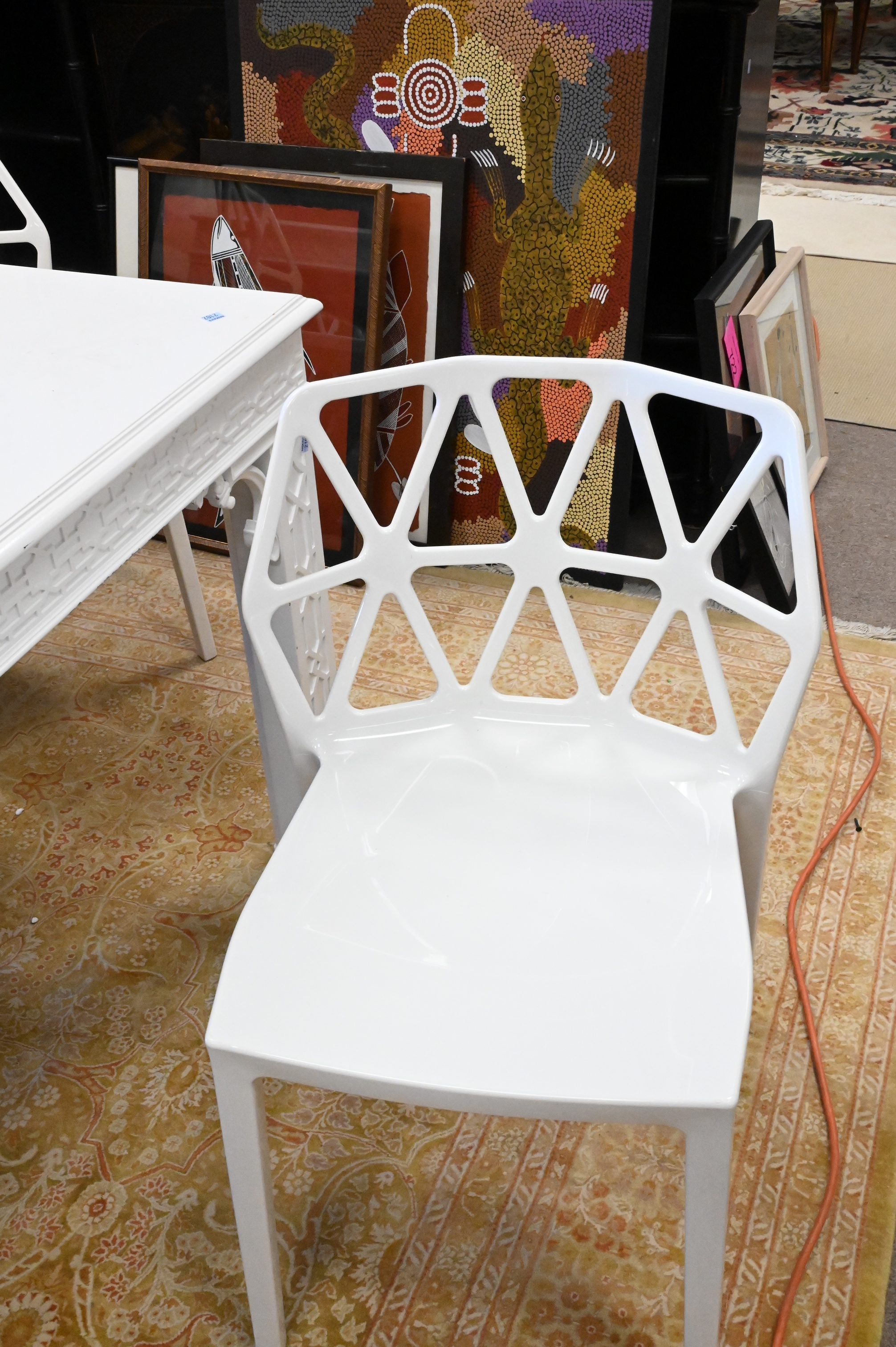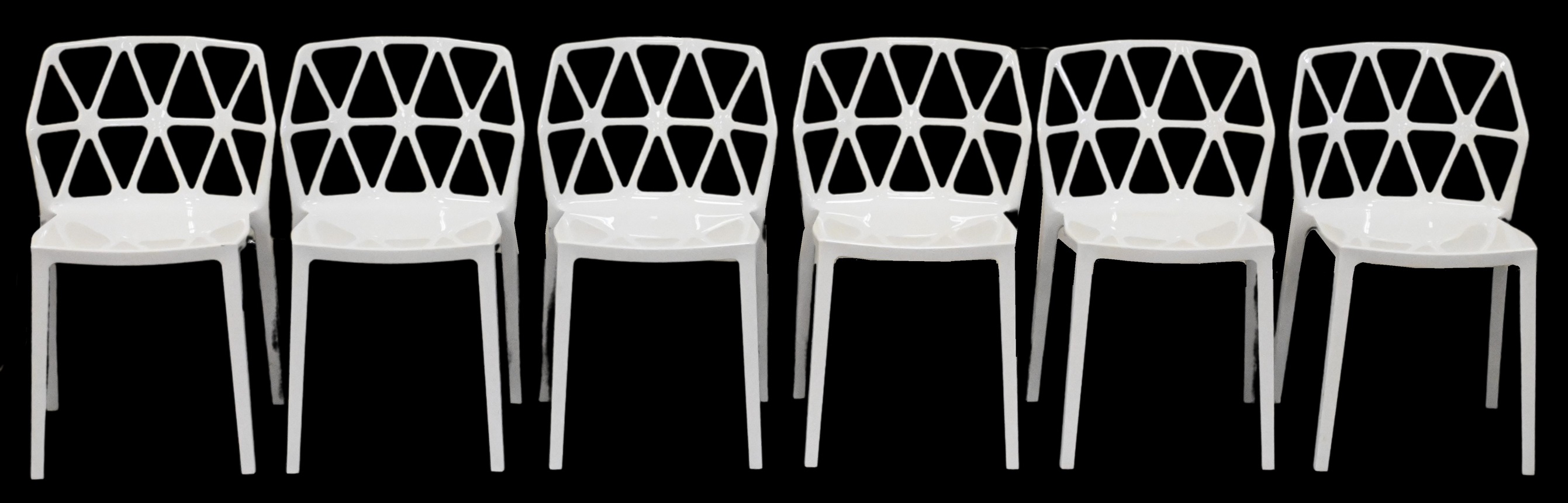 Set of Six Italian Calligaris “Alchemia” Dining Chairs, all with geometric shaped books, height 31 inches.