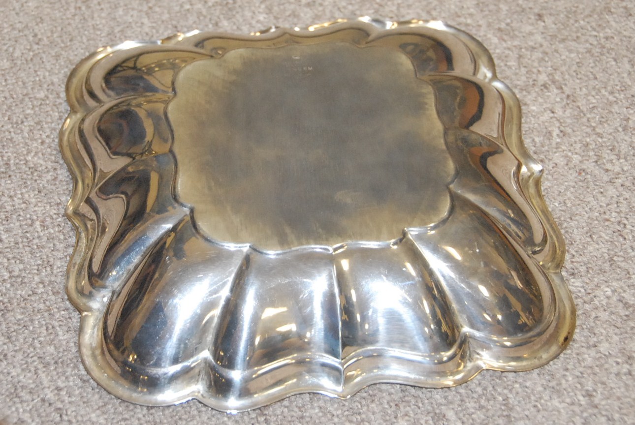 Sterling silver square bowl, 12.8 t oz