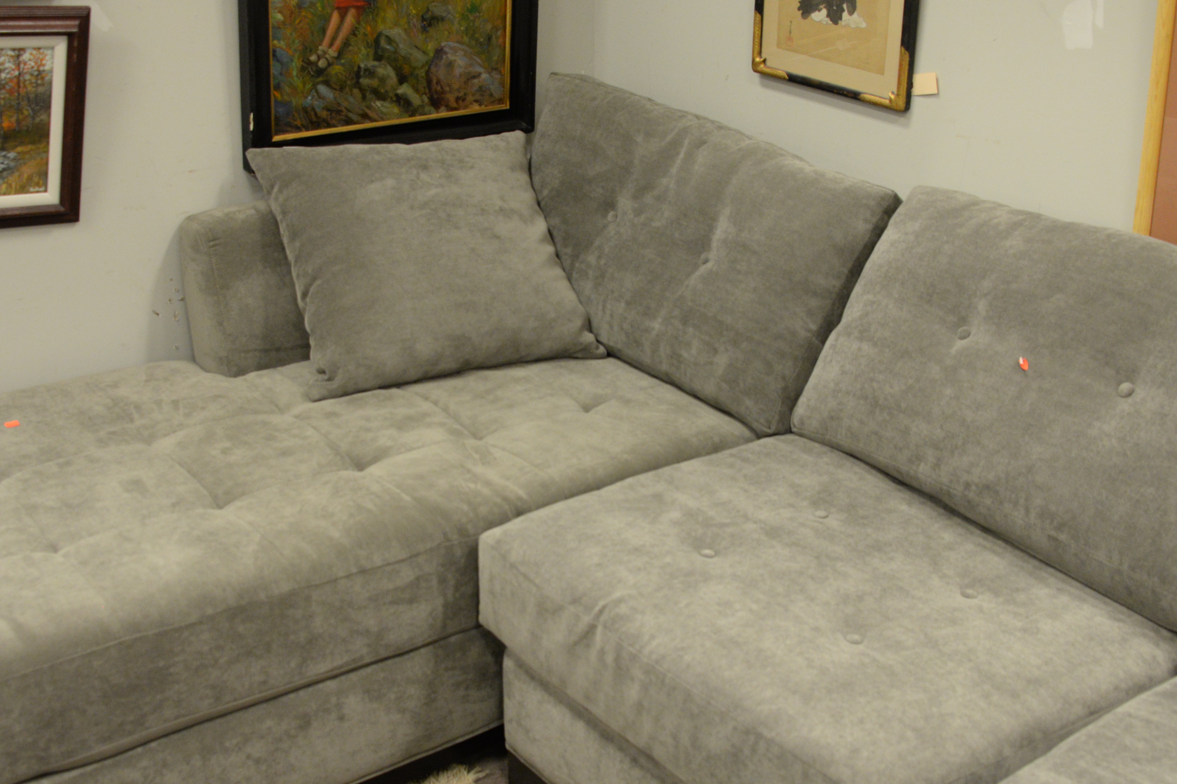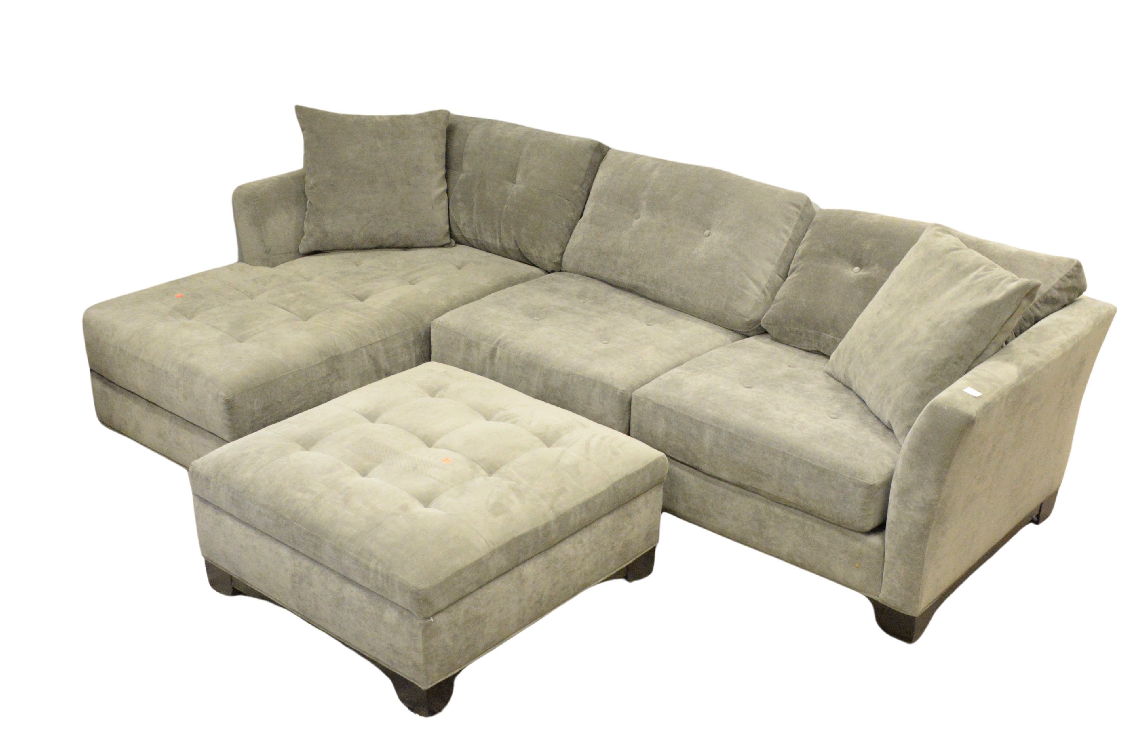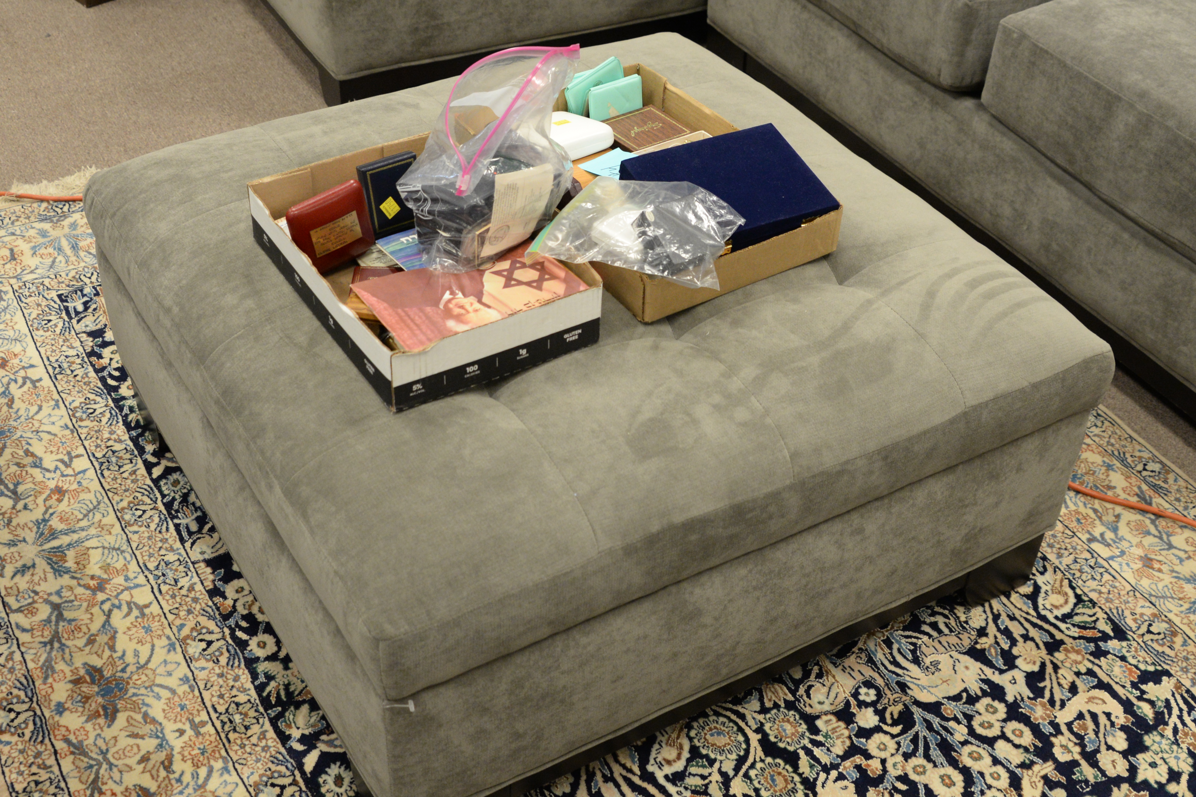 Three Piece Sofa, ottoman with lift top, height 19 inches, length 109 inches