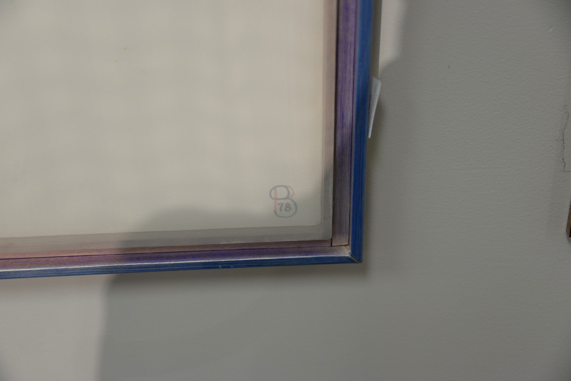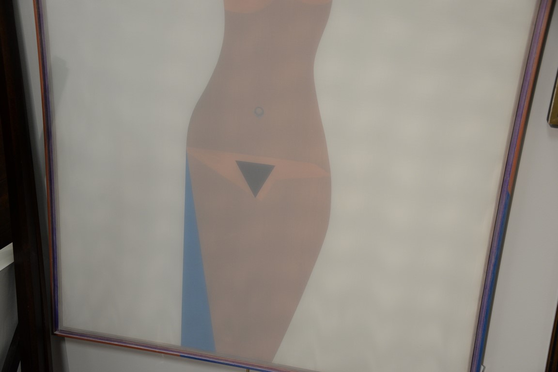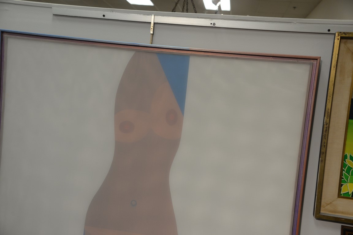 Lot 510: Broderick Price oil under silk screen Sheboi, nude woman signed, dated, and titled on verso: Broderick Price Sheboi 1978 50 1/2…