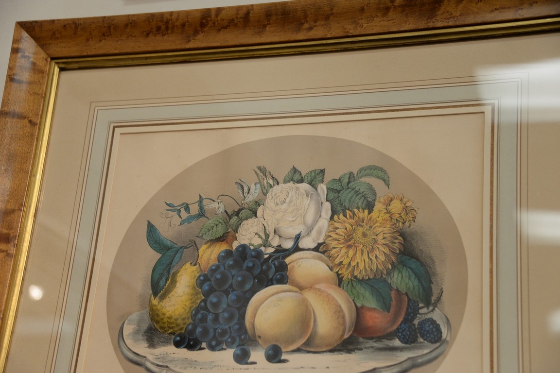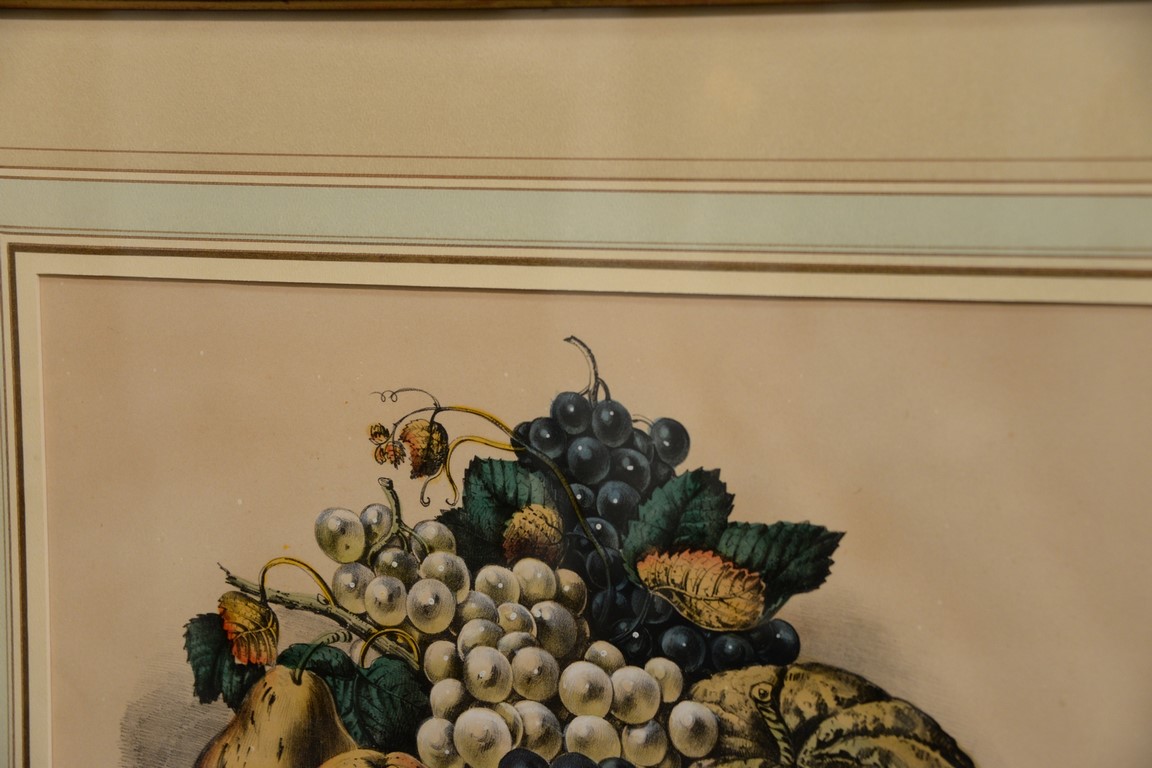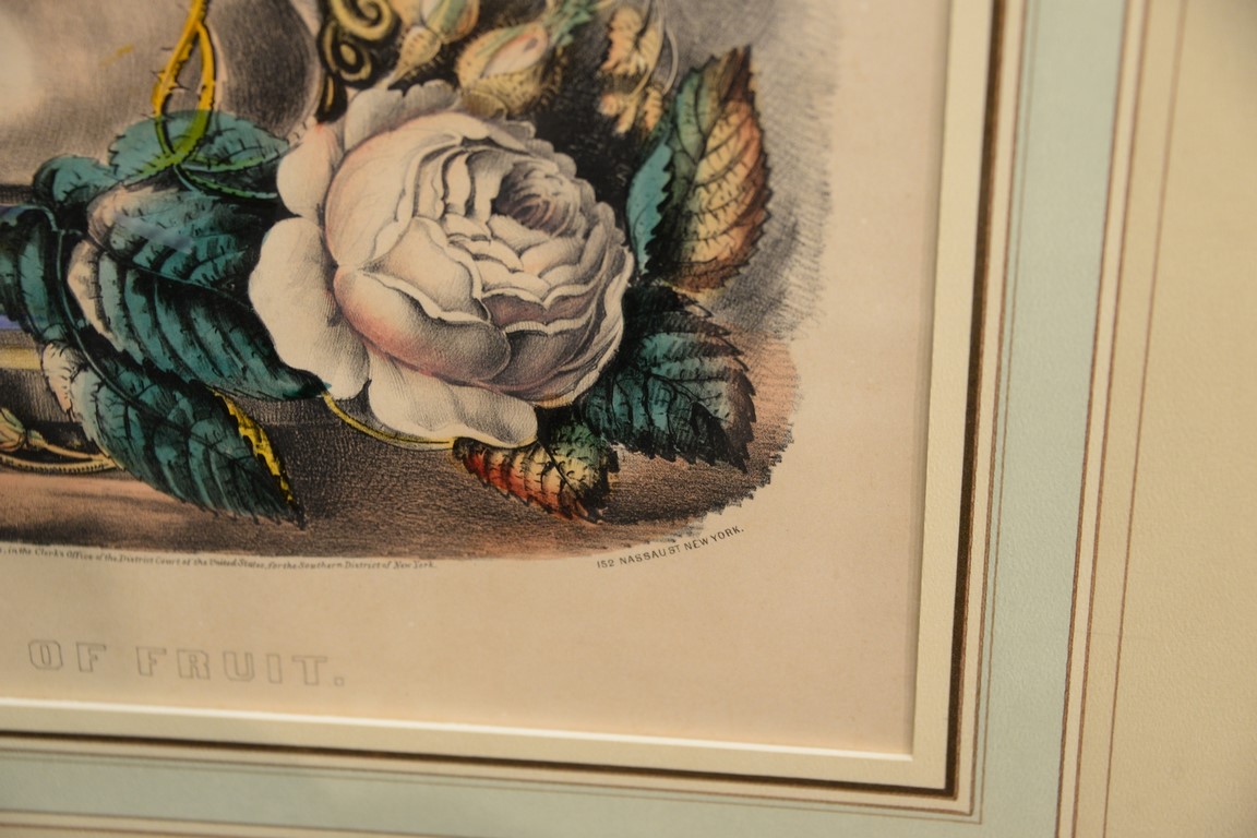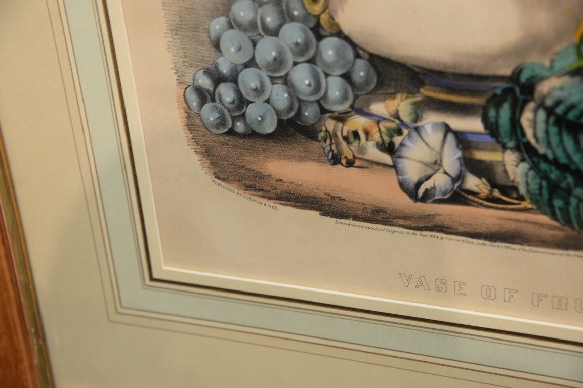 Currier & Ives, two medium folio colored lithographs, Fruits and Flowers of Autumn, sight size 14 3/4 x 15 3/4 Vase of Fruit, sight size 16 3/4 x 14. Provenance: Property from Credit Suisse’s Americana Collection