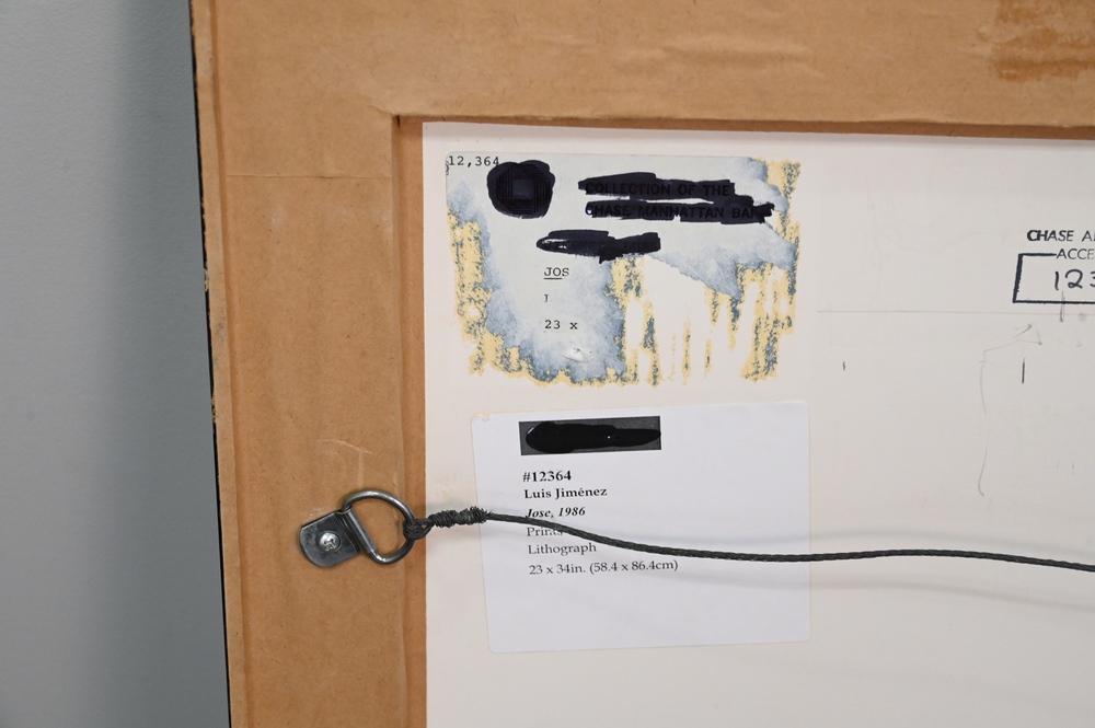 Lot 510: Luis Alfonso Jimenez (American, 1940-2006), Jose 1986, lithograph in colors on paper, signed, dated and numbered 12/30 in pencil along the lower edge, sheet size 23″ x 34″.