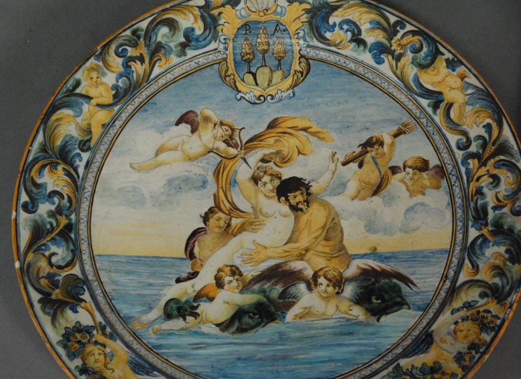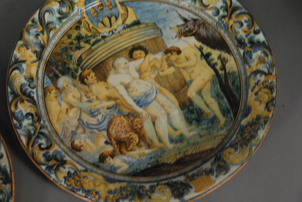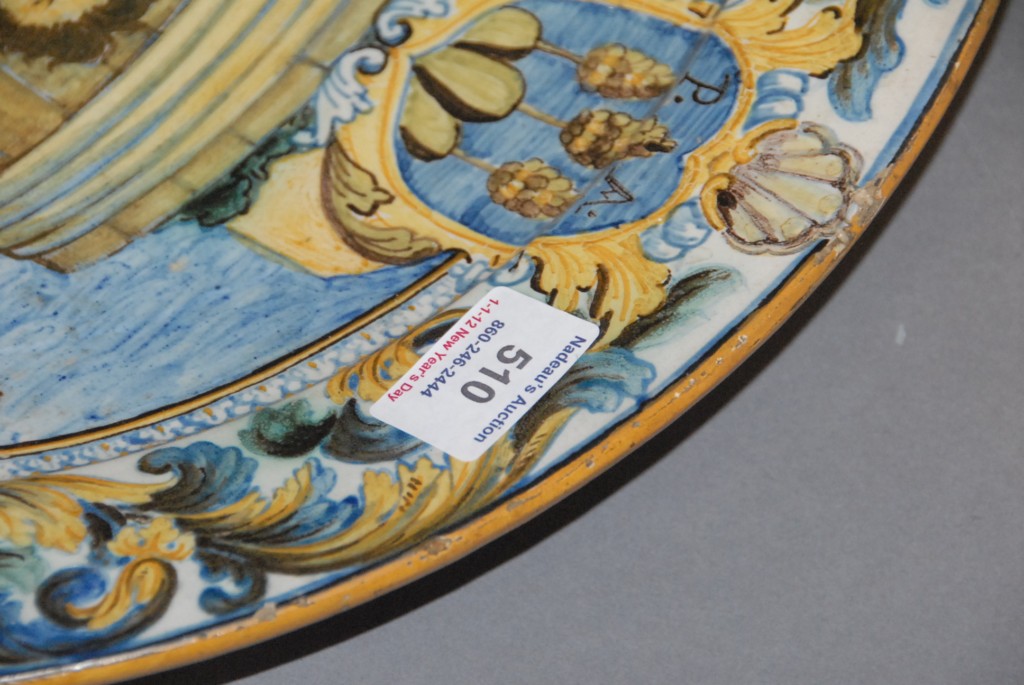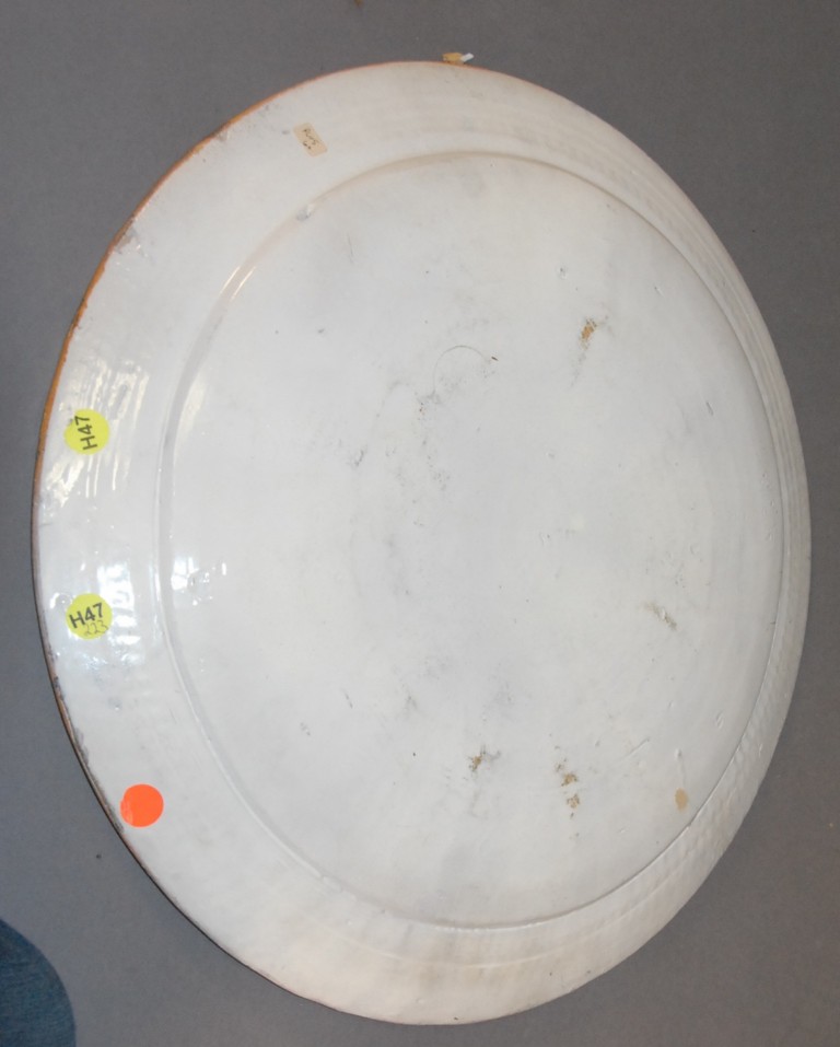 Pair of Earthenware chargers, Portuguese or Italian, initialed P.A. diameter 18 1/4in.