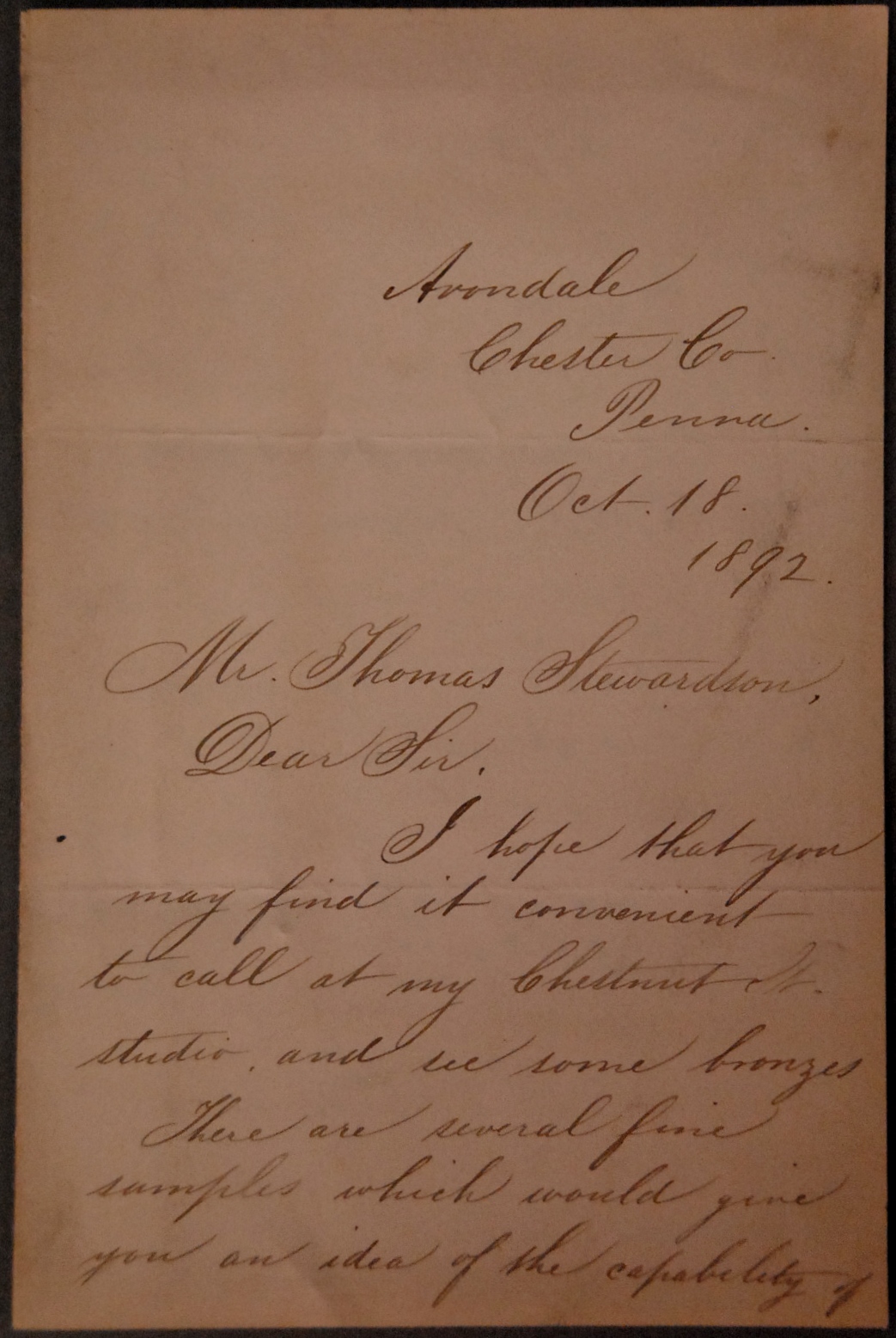 Thomas Eakins autograph on letter to Mr. Thomas Stewardson.