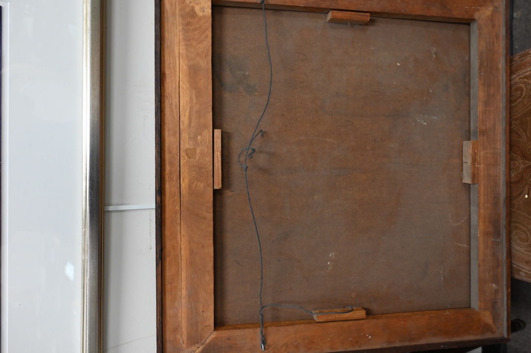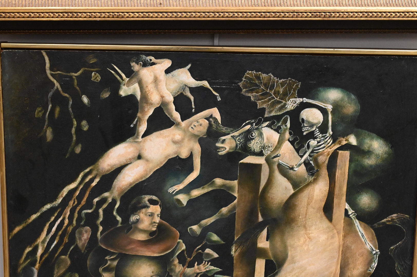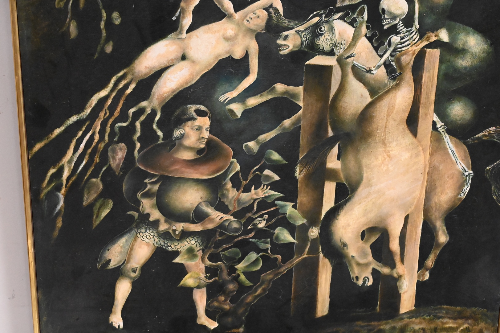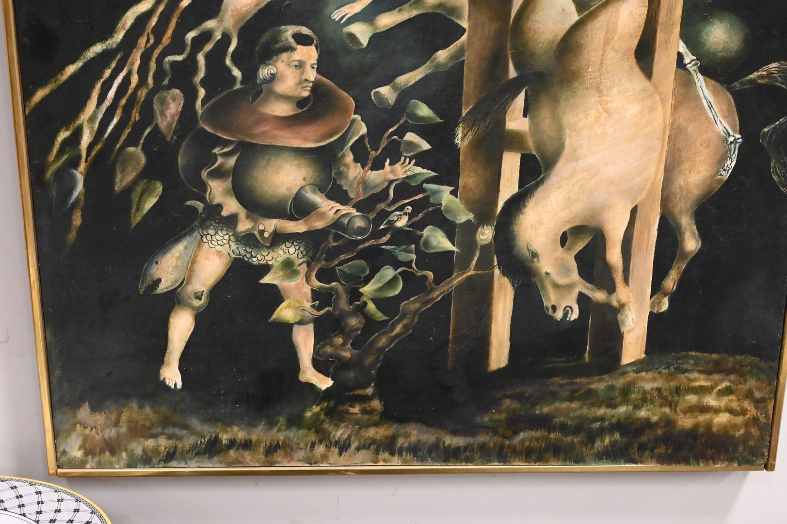 Clemence Gregory, Allegory, oil on Masonite, signed C. Gregory lower right, 24″ x 24″, Provenance: Estate of Cyril H. Moore Jr, Kent, Connecticut.