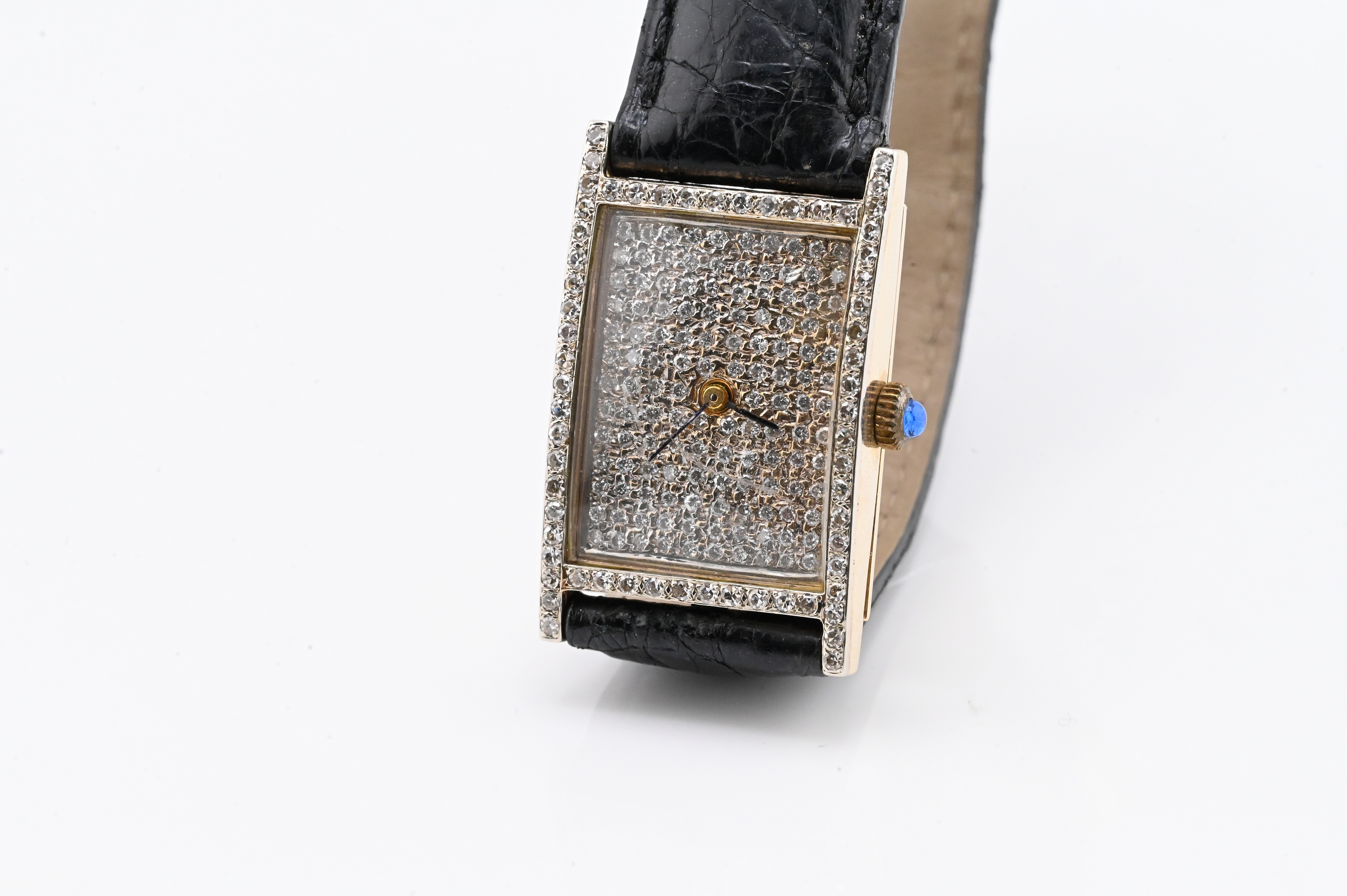 Lot 511: Omega 14K Gold and Diamond Tank Wristwatch