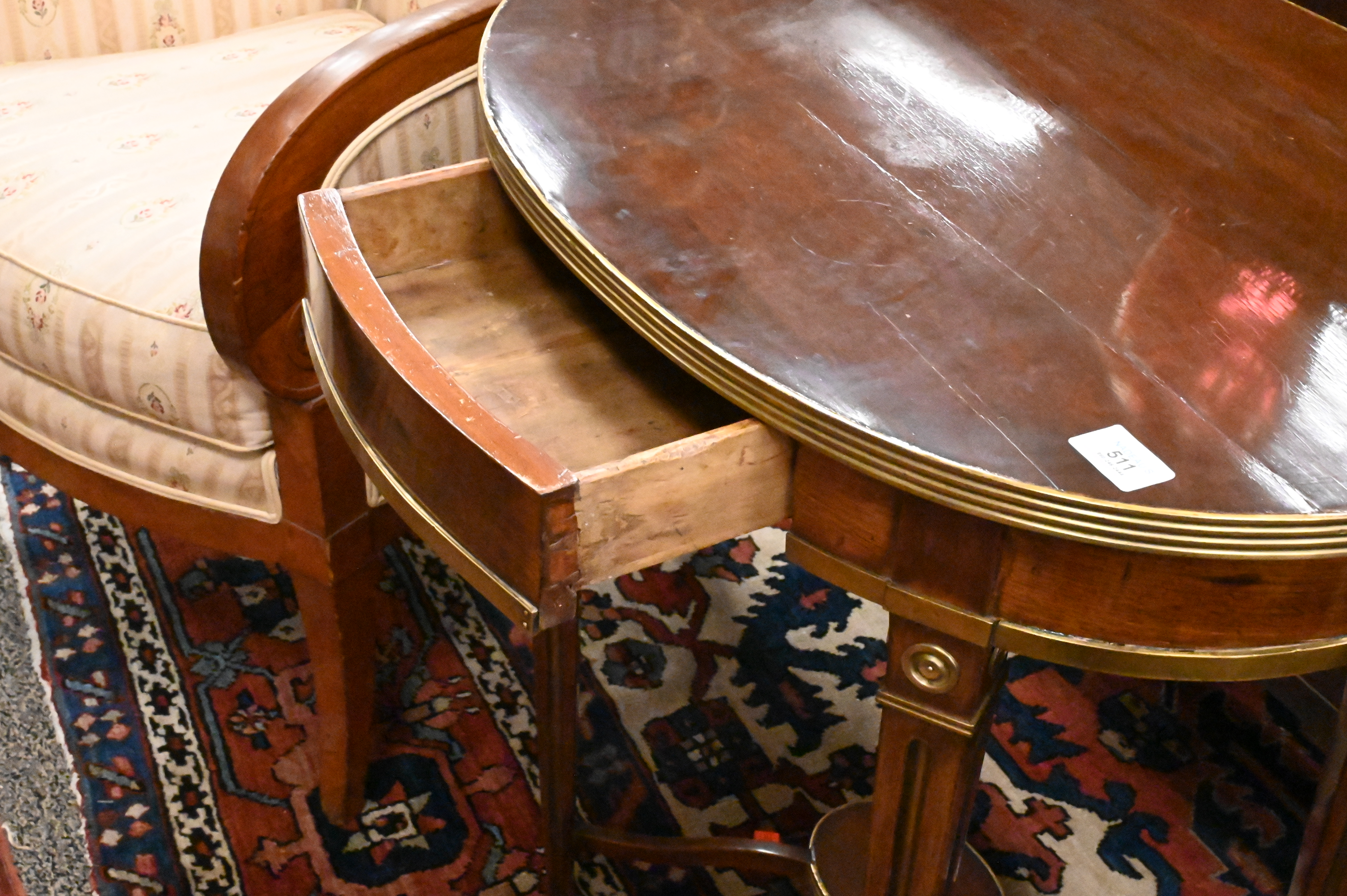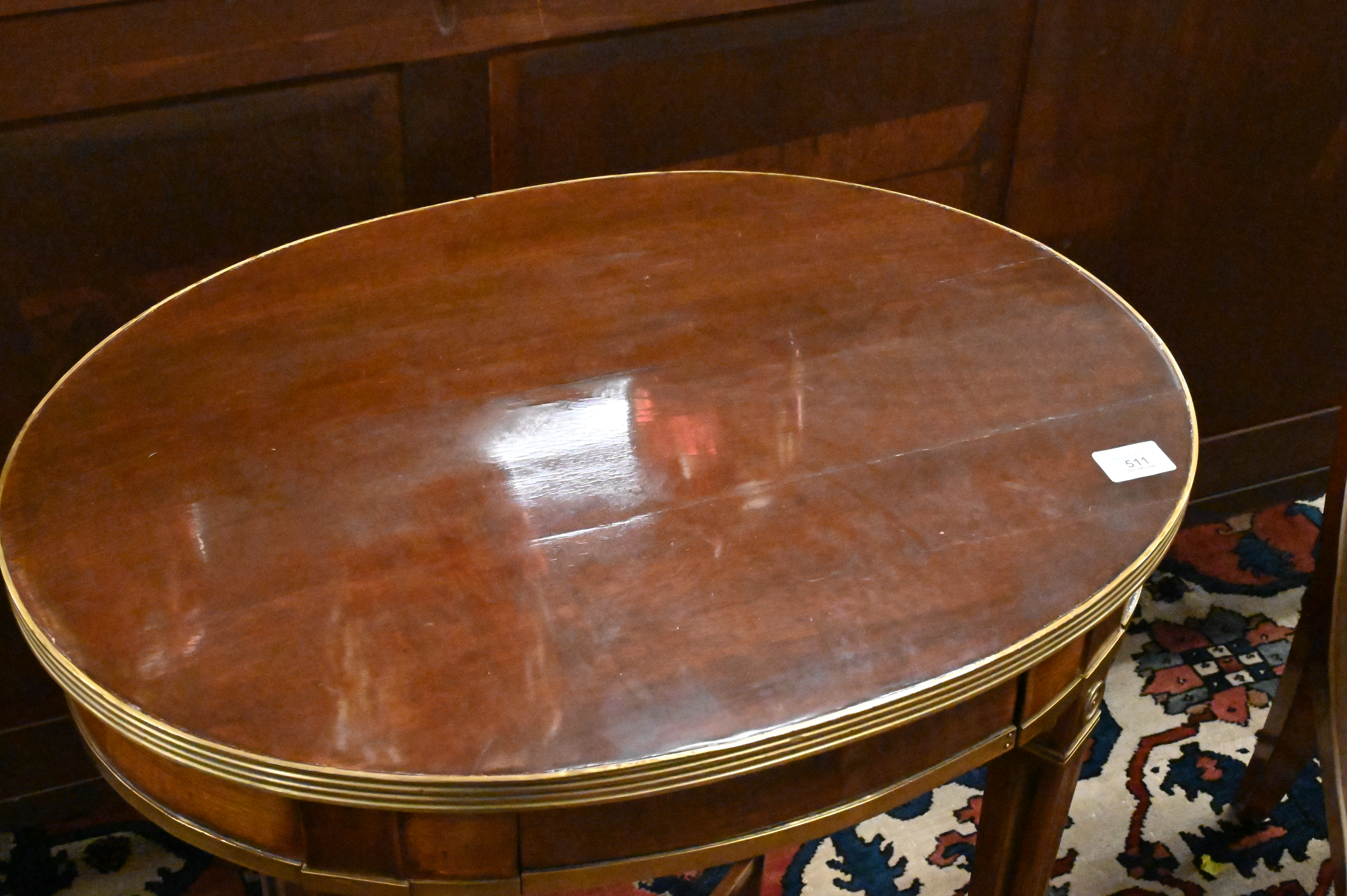 having brass mounts, raised on tapering legs with x stretcher, 18th/19th century