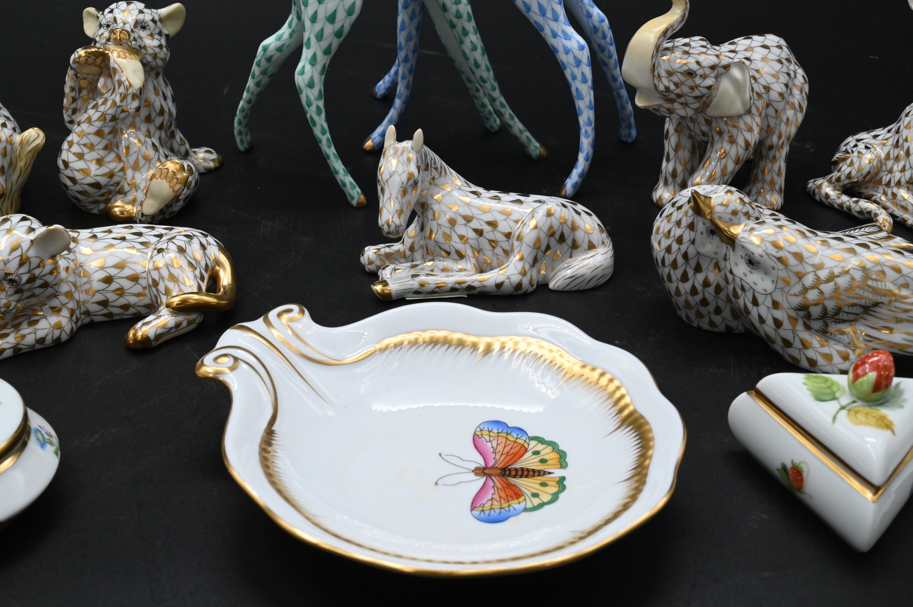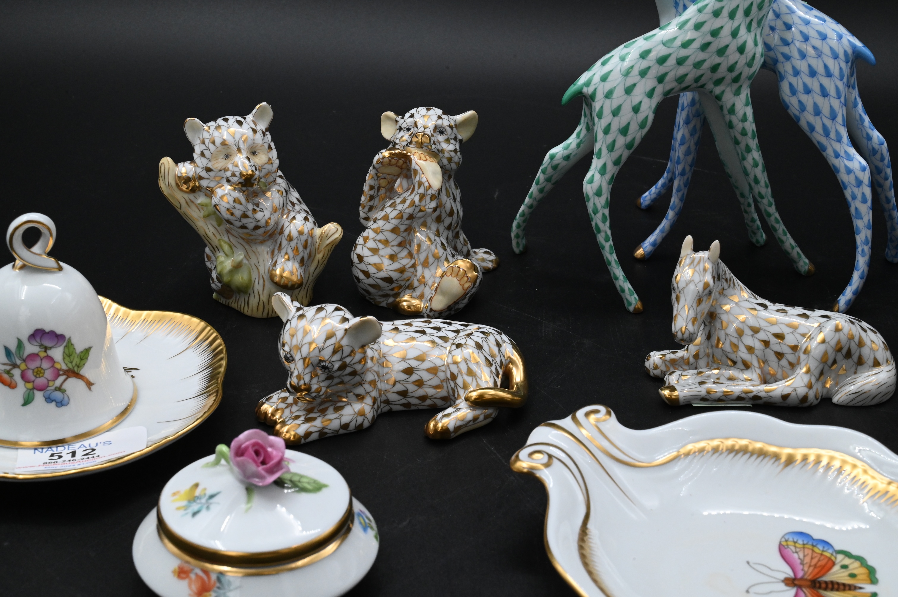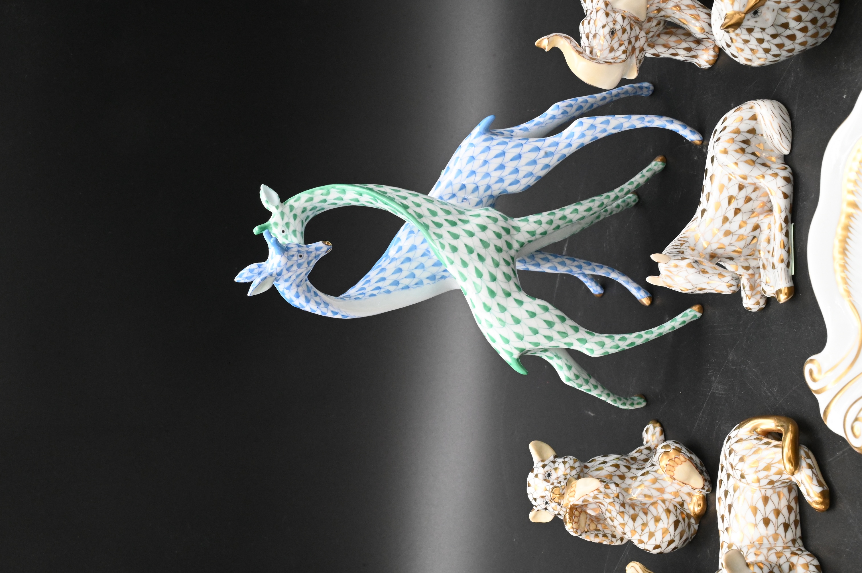 Four Herend Guild Porcelain Animal Figurines in Gold Fishnet Pattern