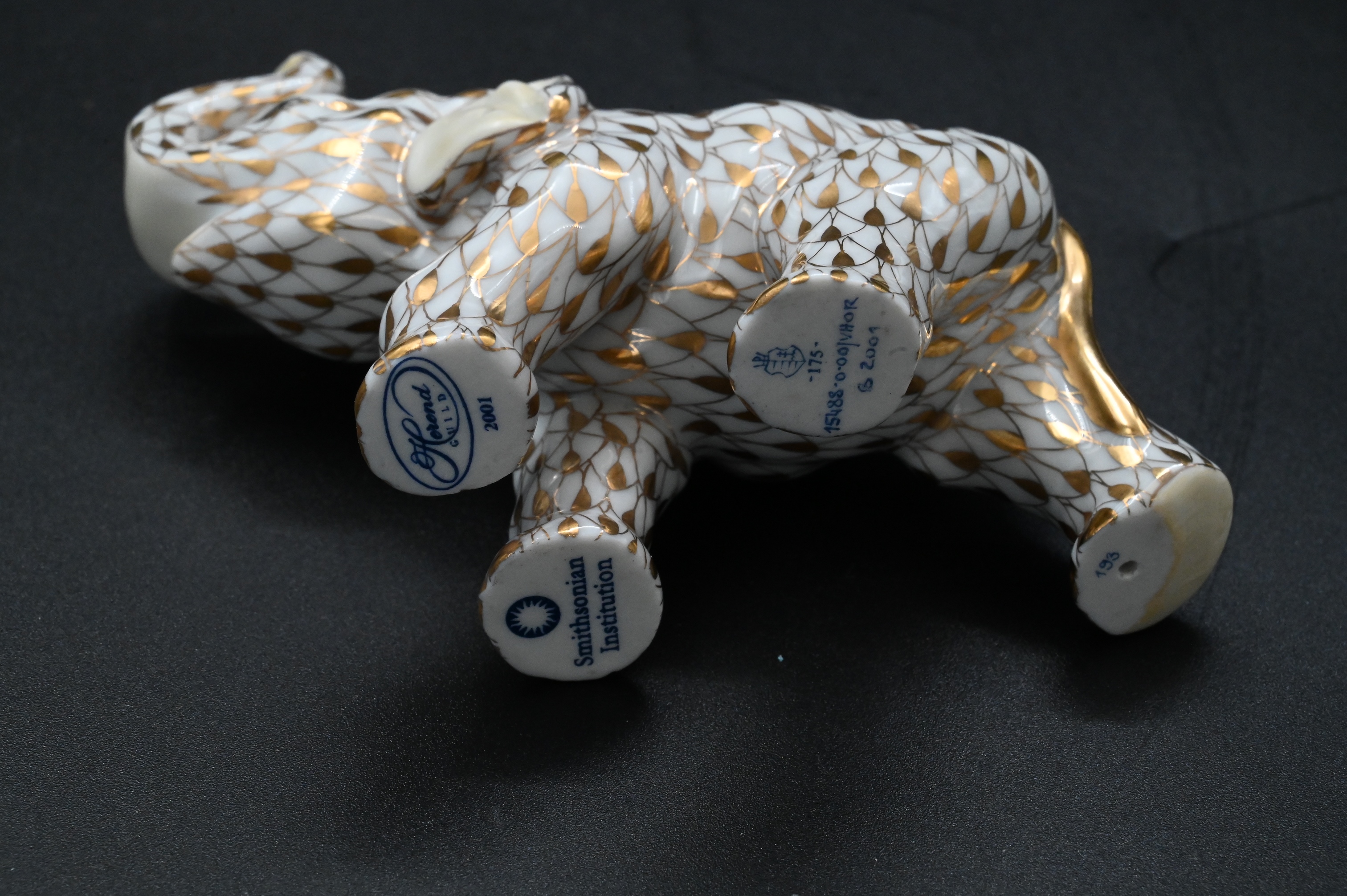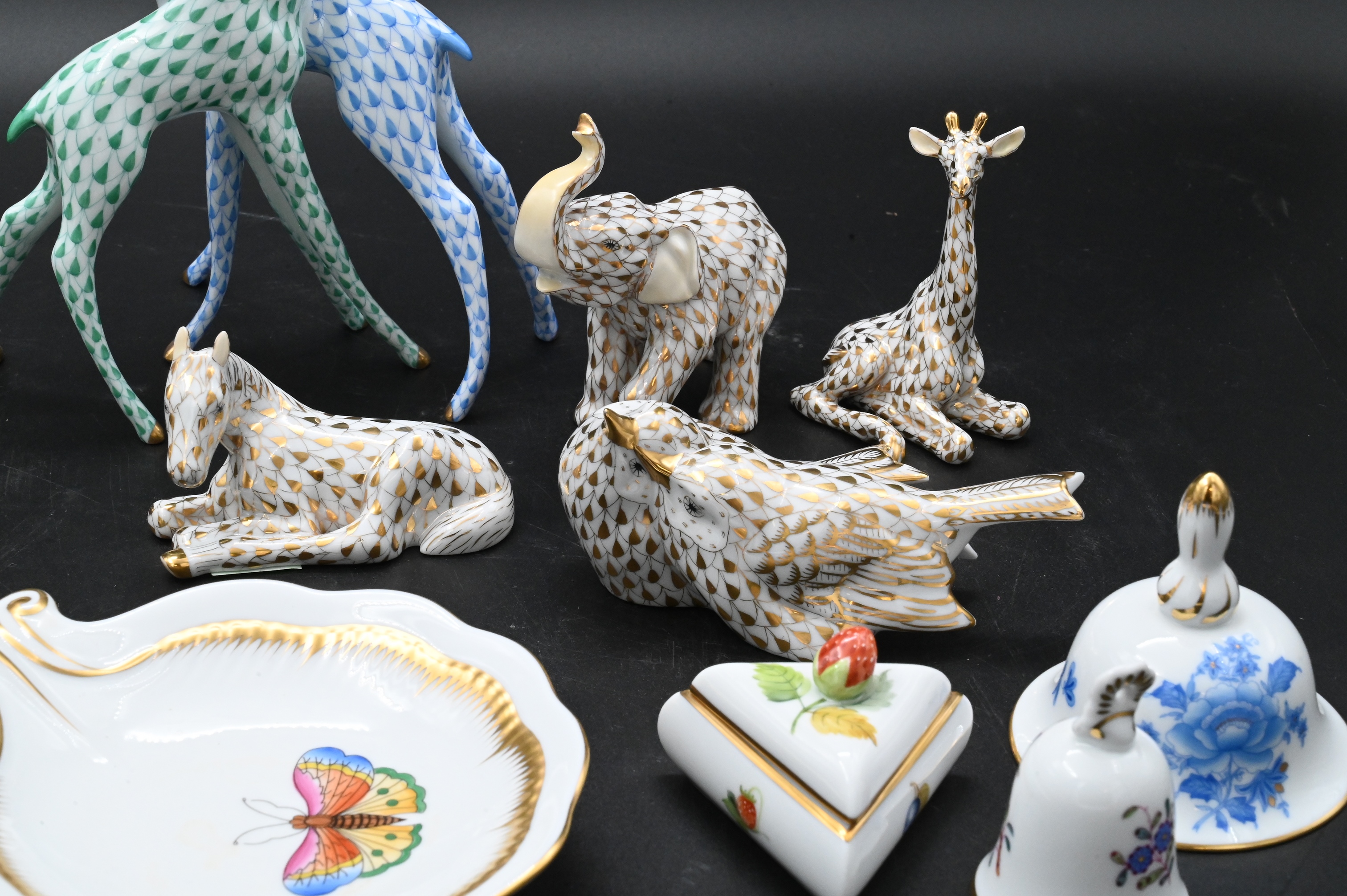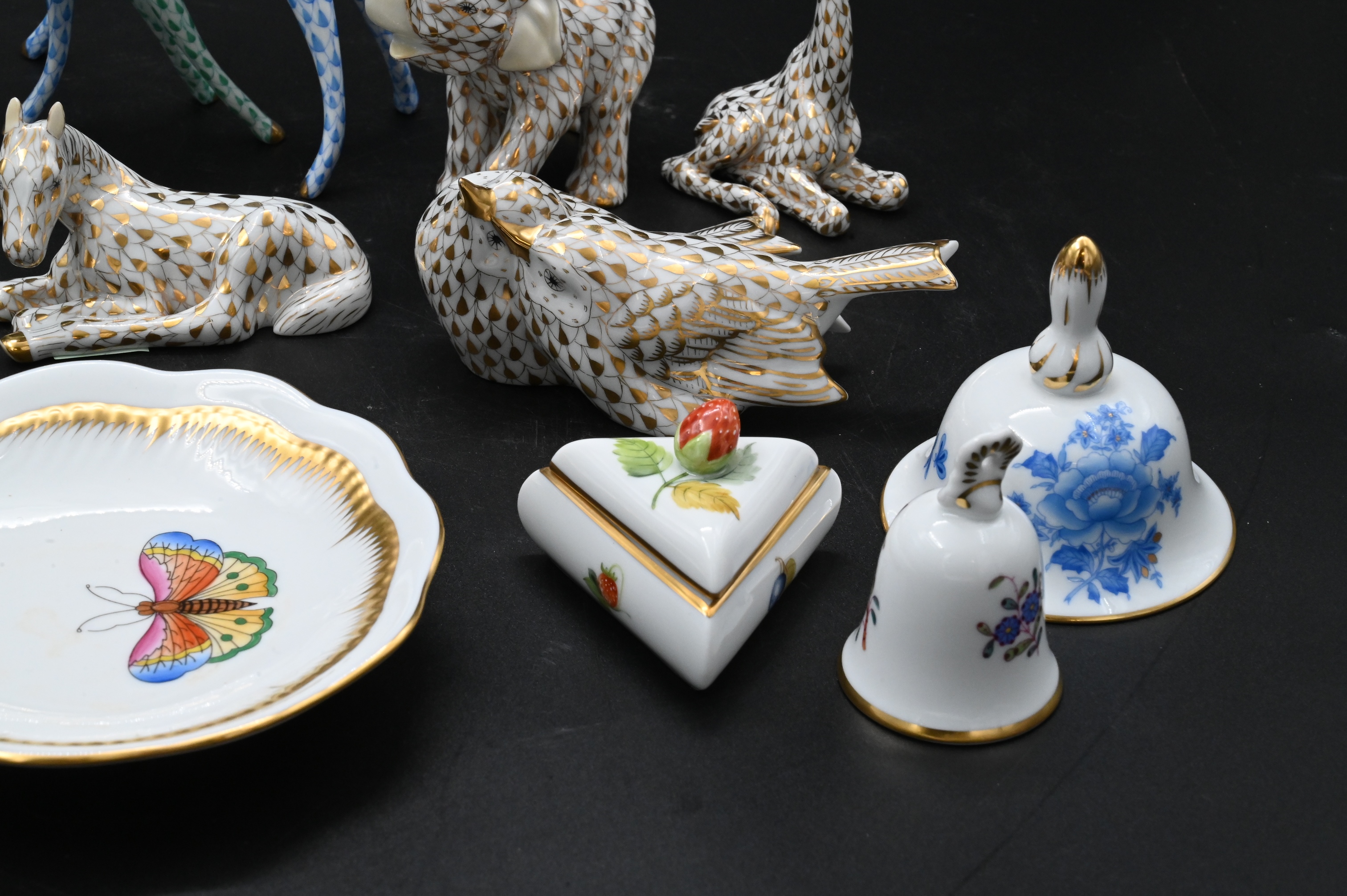 Four Herend Guild Porcelain Animal Figurines in Gold Fishnet Pattern