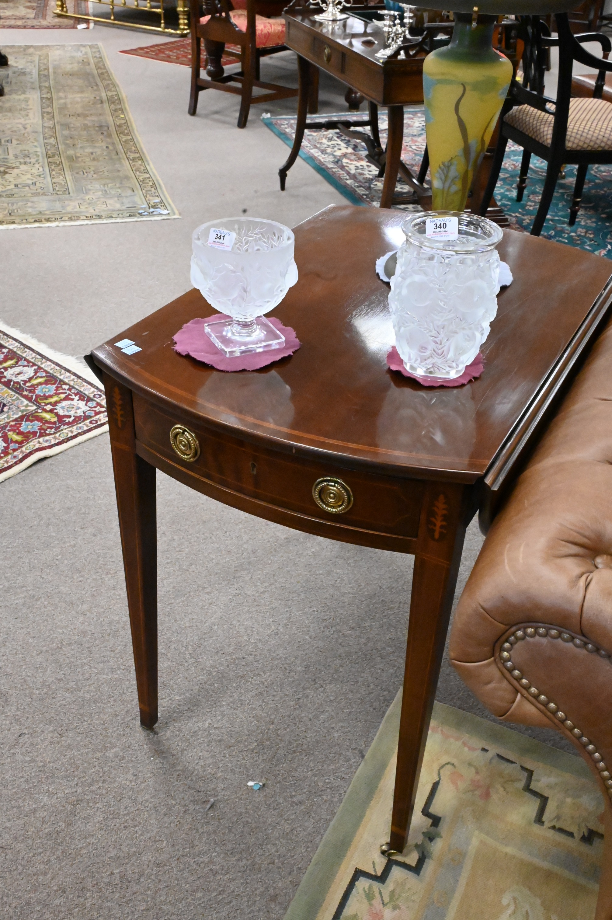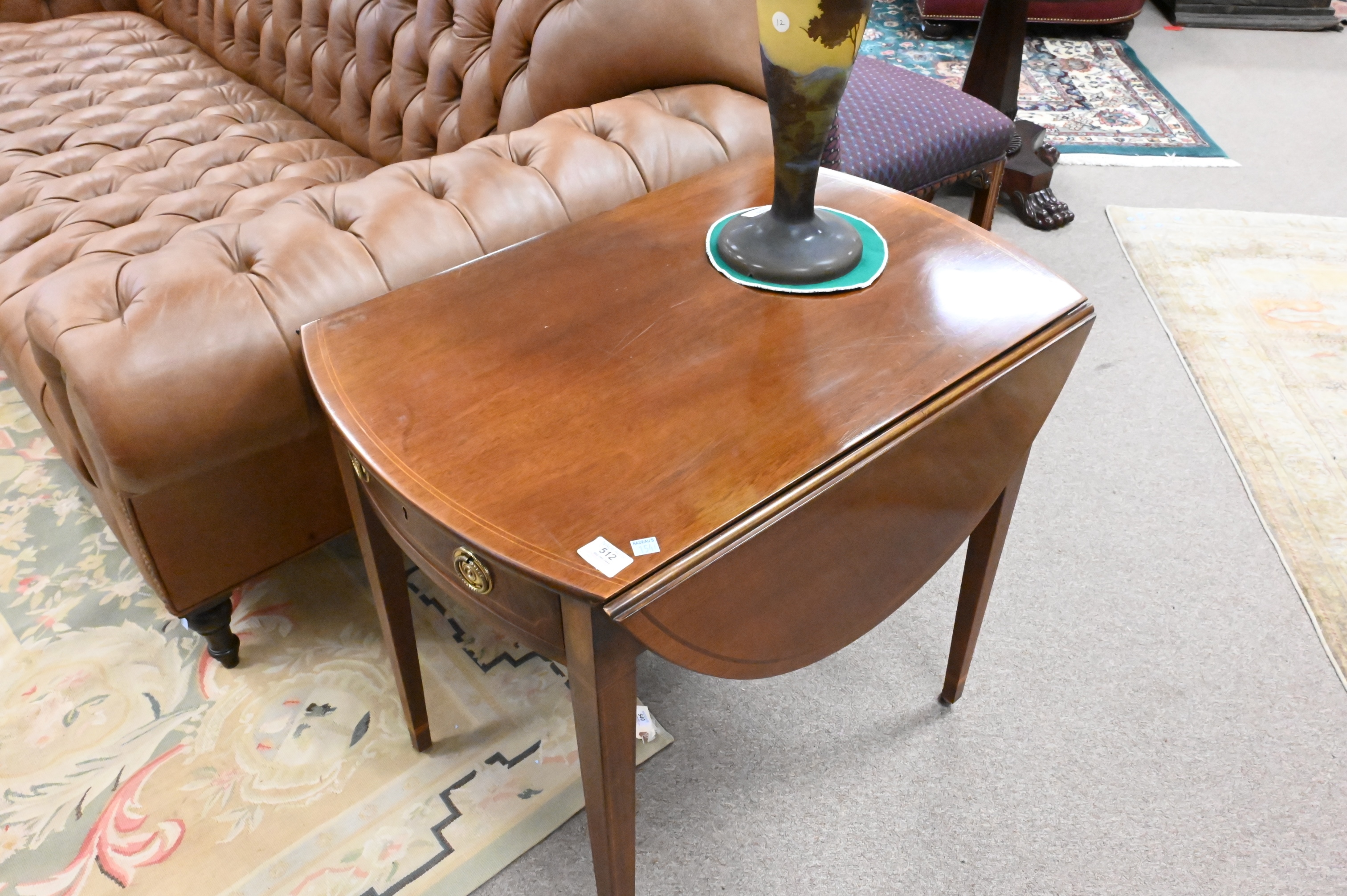 Lot 512: A Pair of Baker Historic Charleston Inlaid Mahogany Drop Leaf Tables