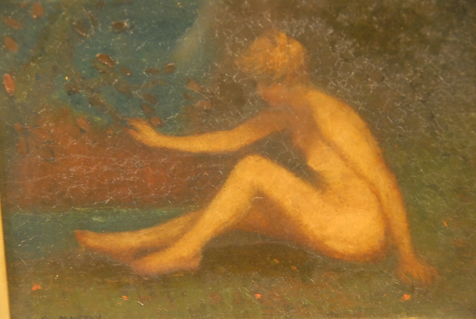 Lot 512: Adah Clifford Murphy 1859-1949 NUDE SEATED WOMAN oil on panel signed lower left A. C. Murphy 6 x 7 3/4