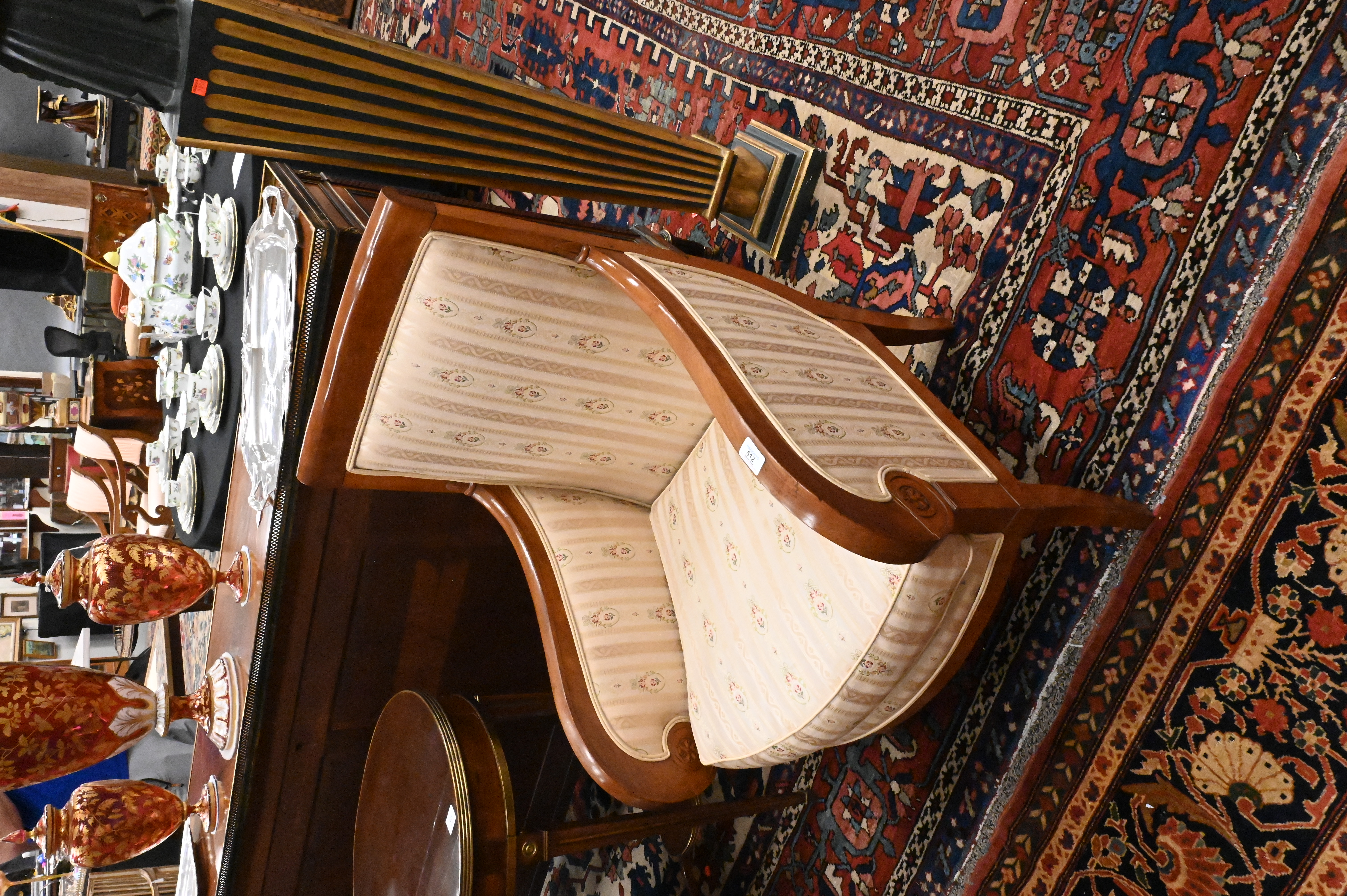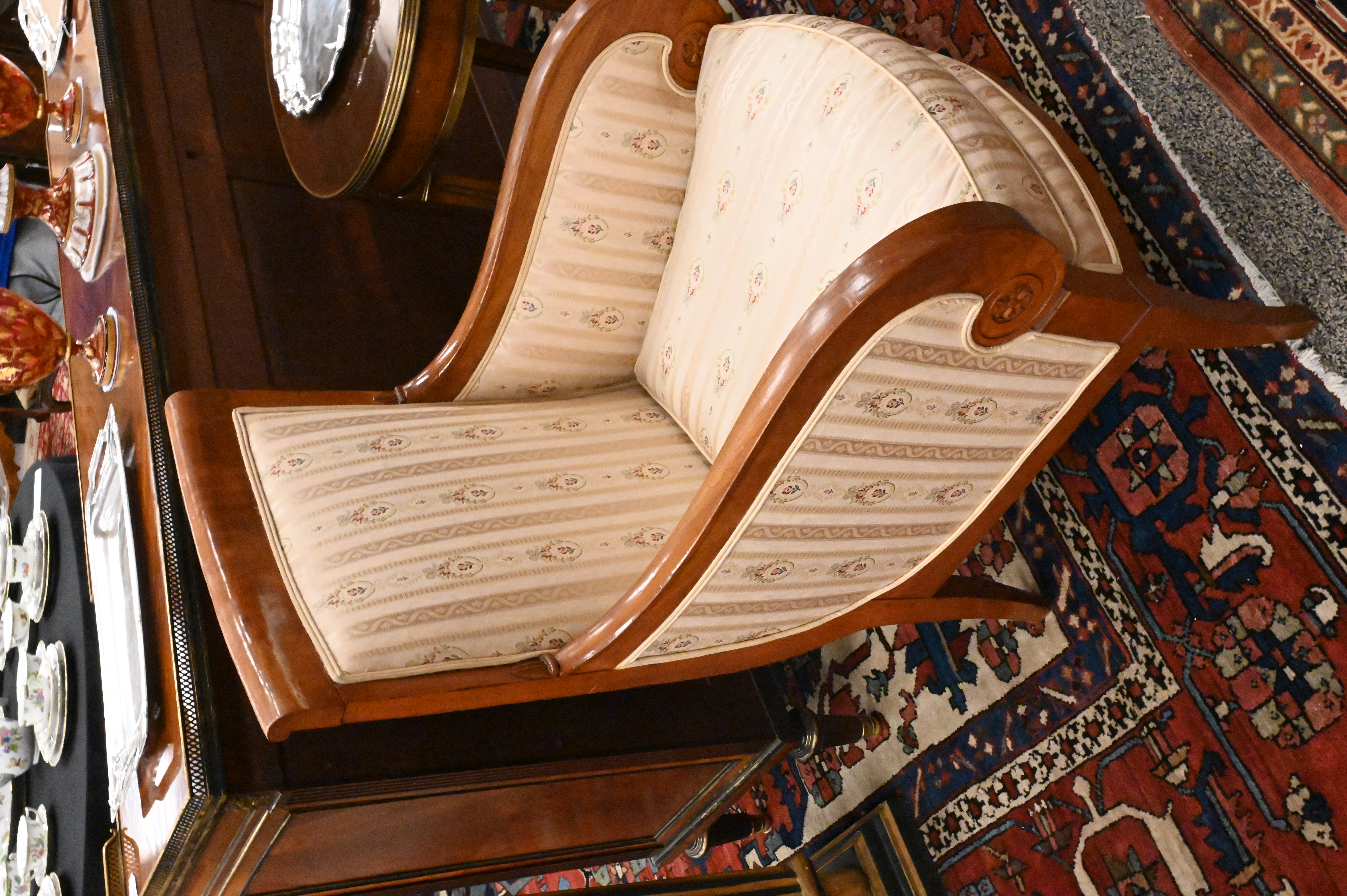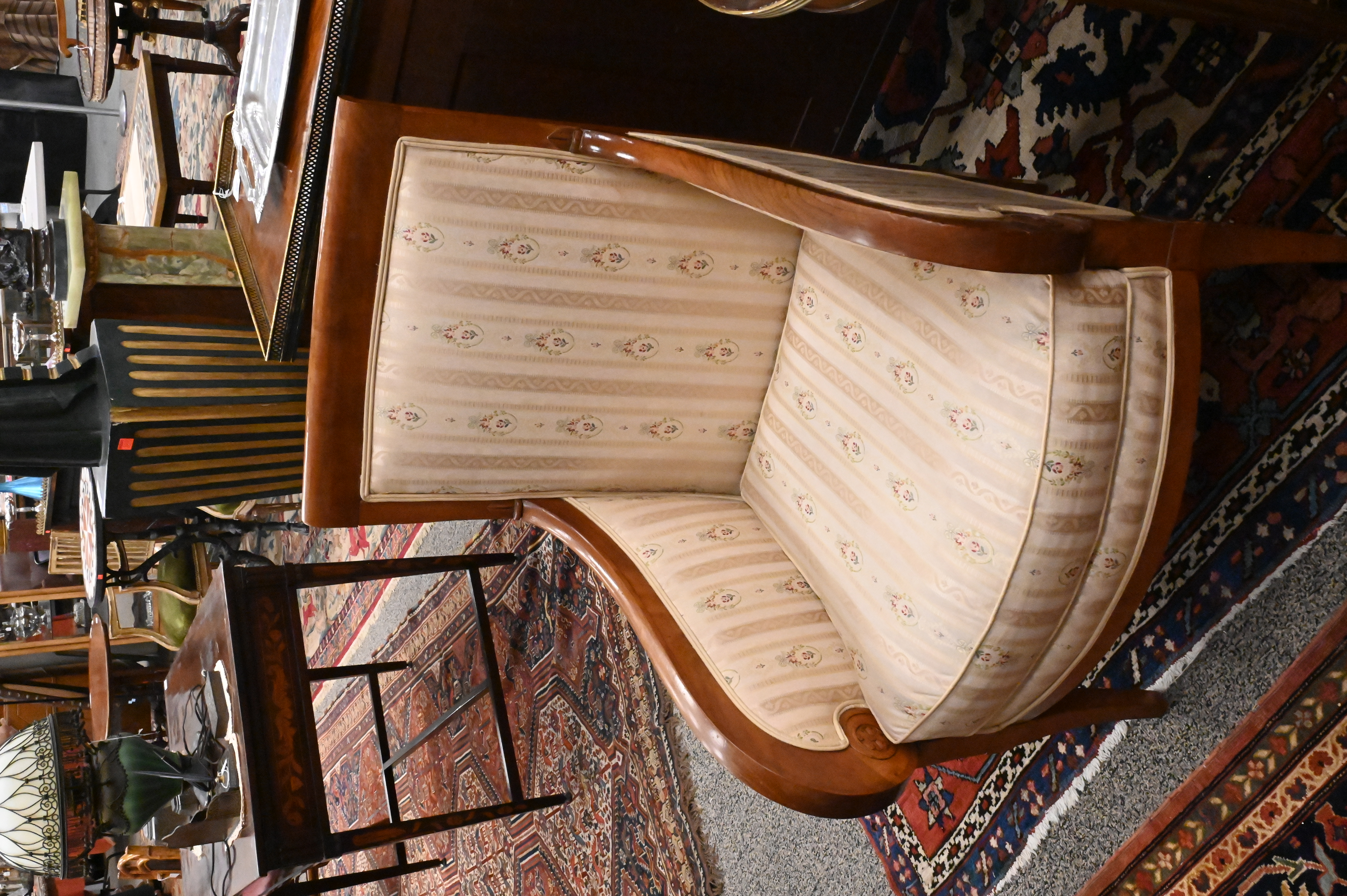 Lot 512: Pair of Classical Style Fruitwood and Upholstered Bergeres