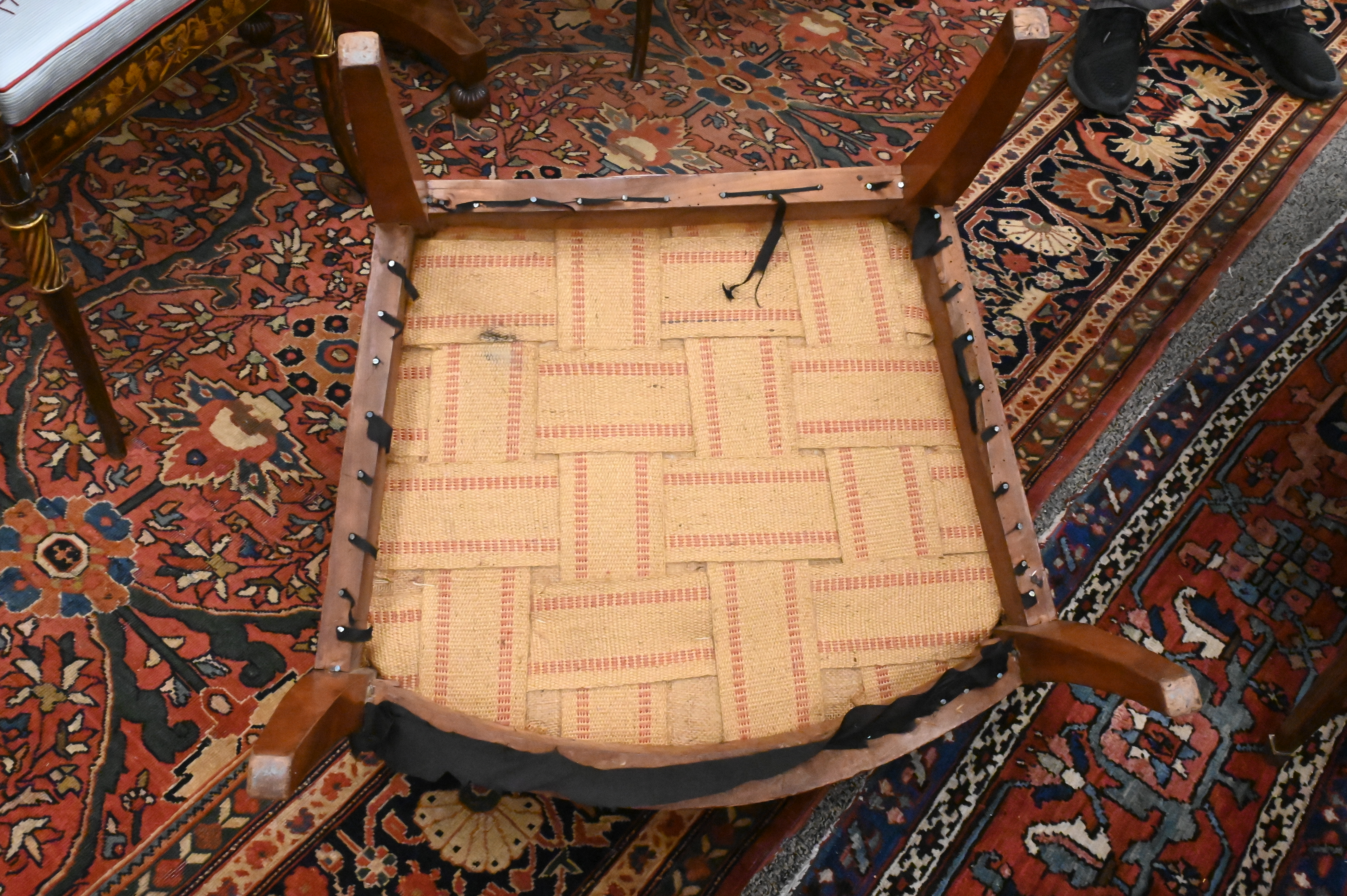 Condition: scattered insect holes, frames partially restored, one chair having crack to back leg, overall good condition, normal wear