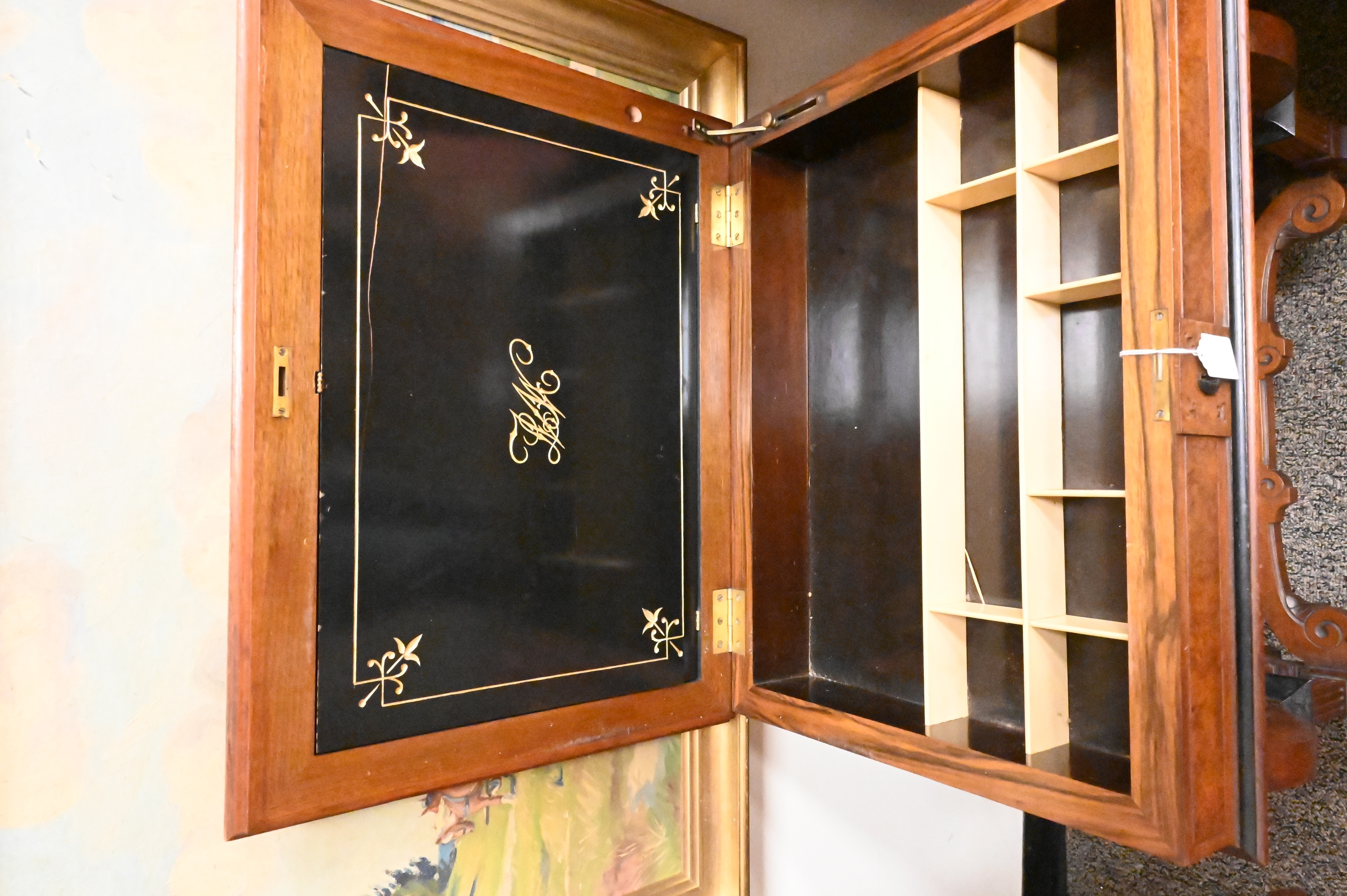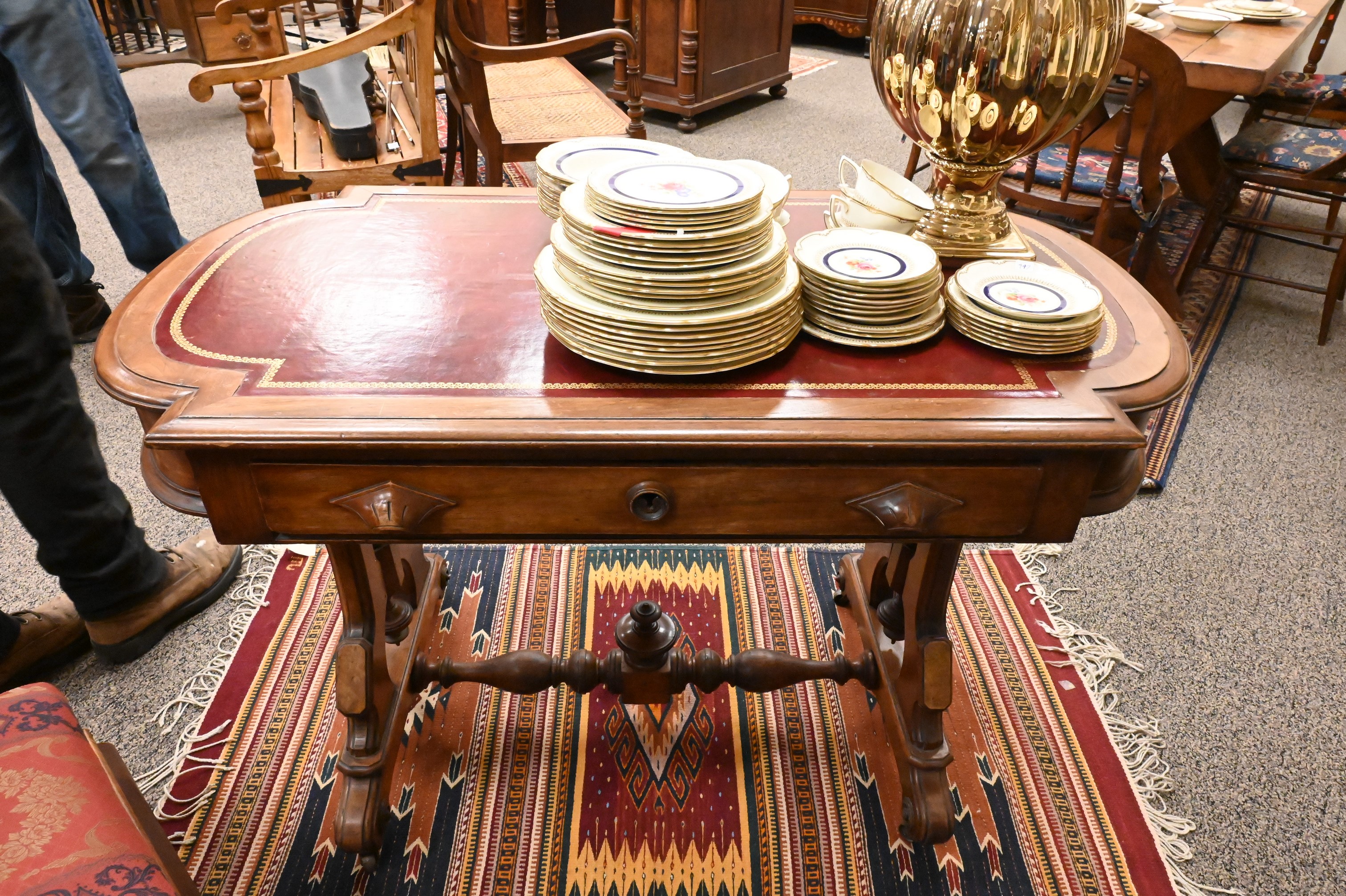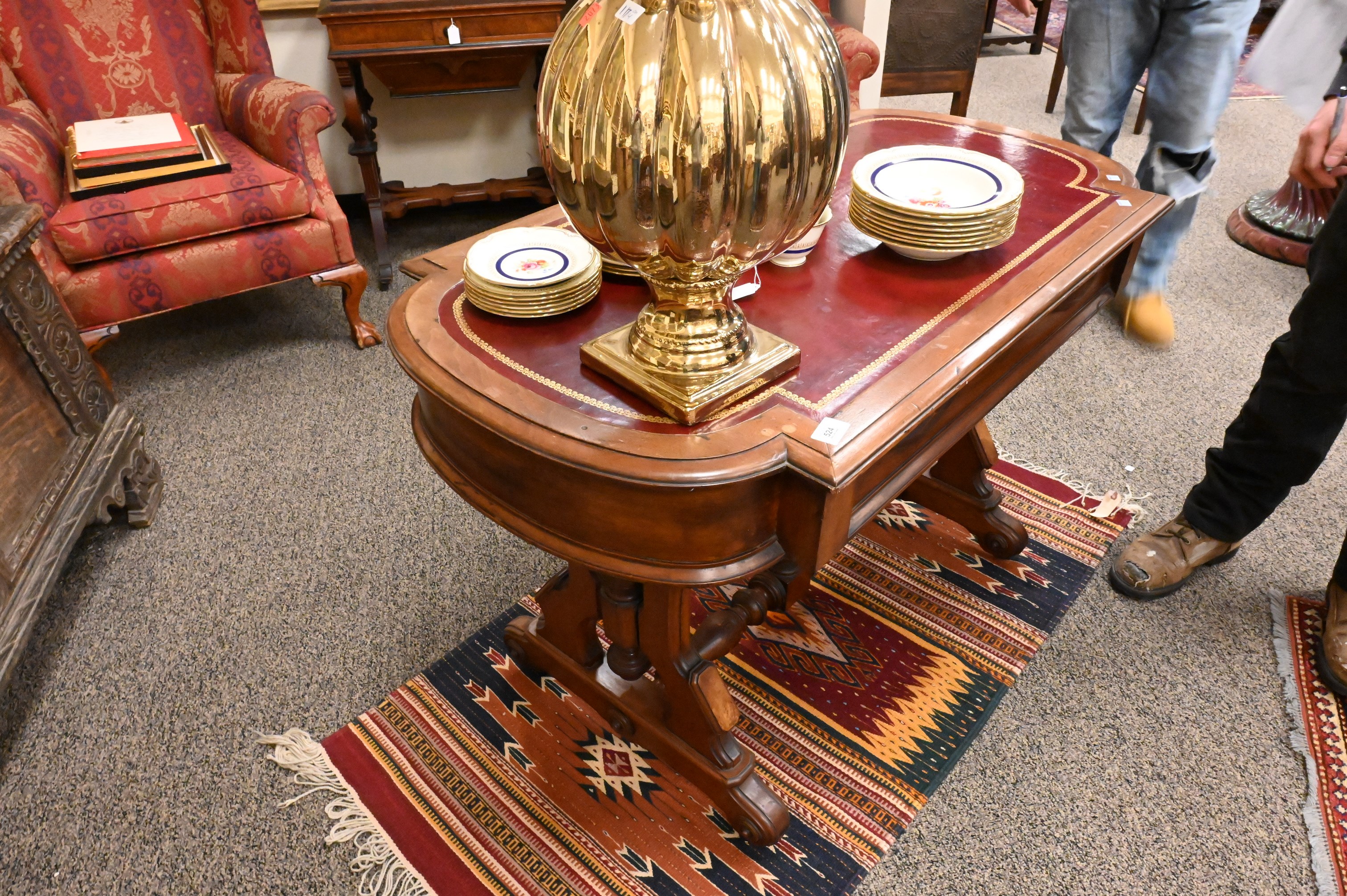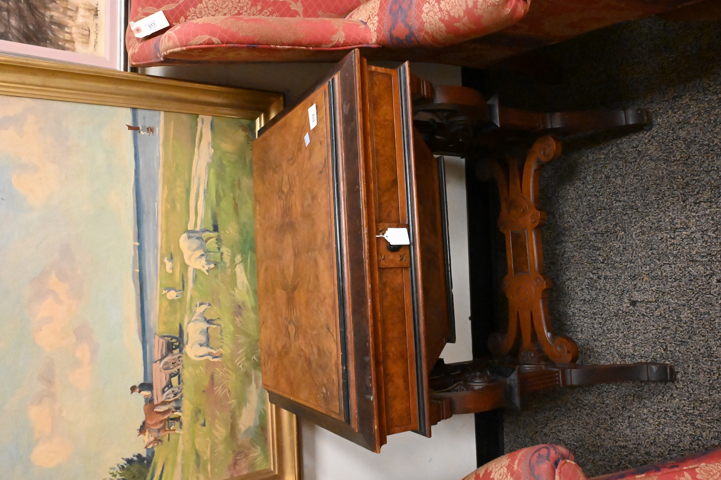 Lot 512: Victorian Walnut and Burl/ Walnut Work Table