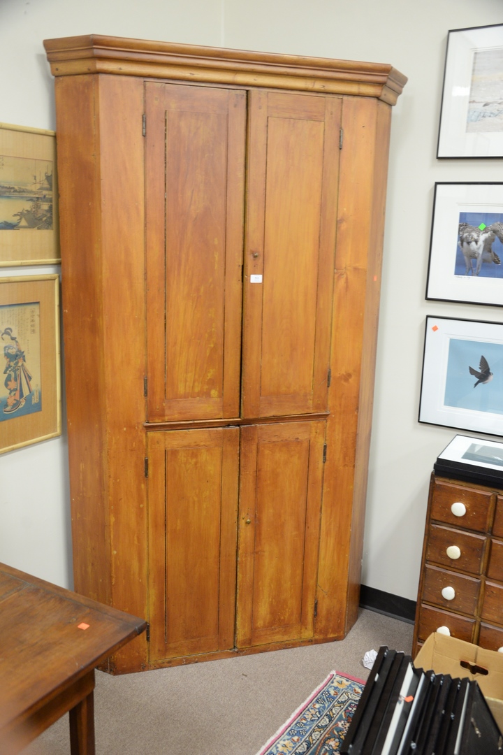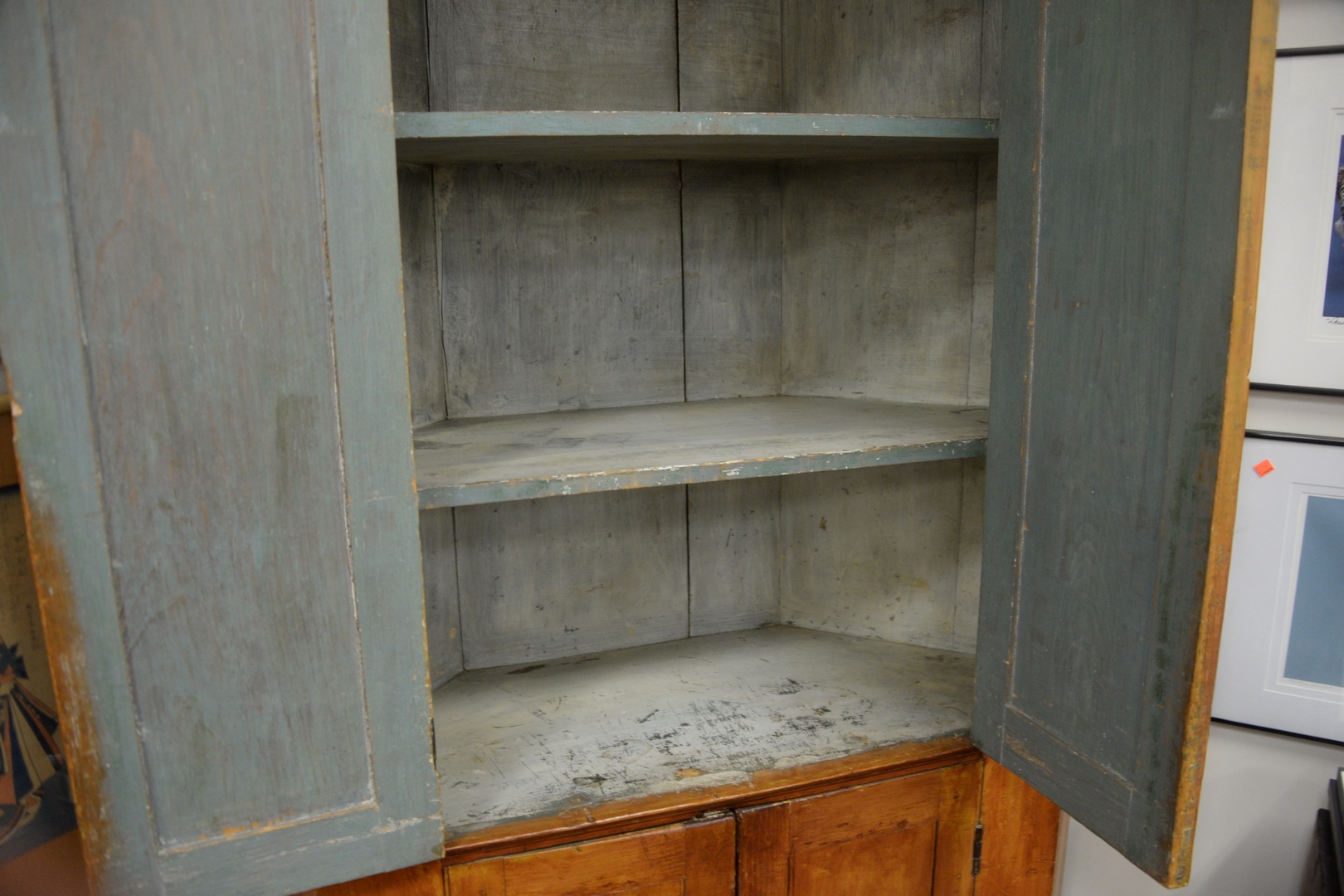 Primitive Pine Corner Cupboard with four doors height 82 1/2 inches, width 44 1/2 inches