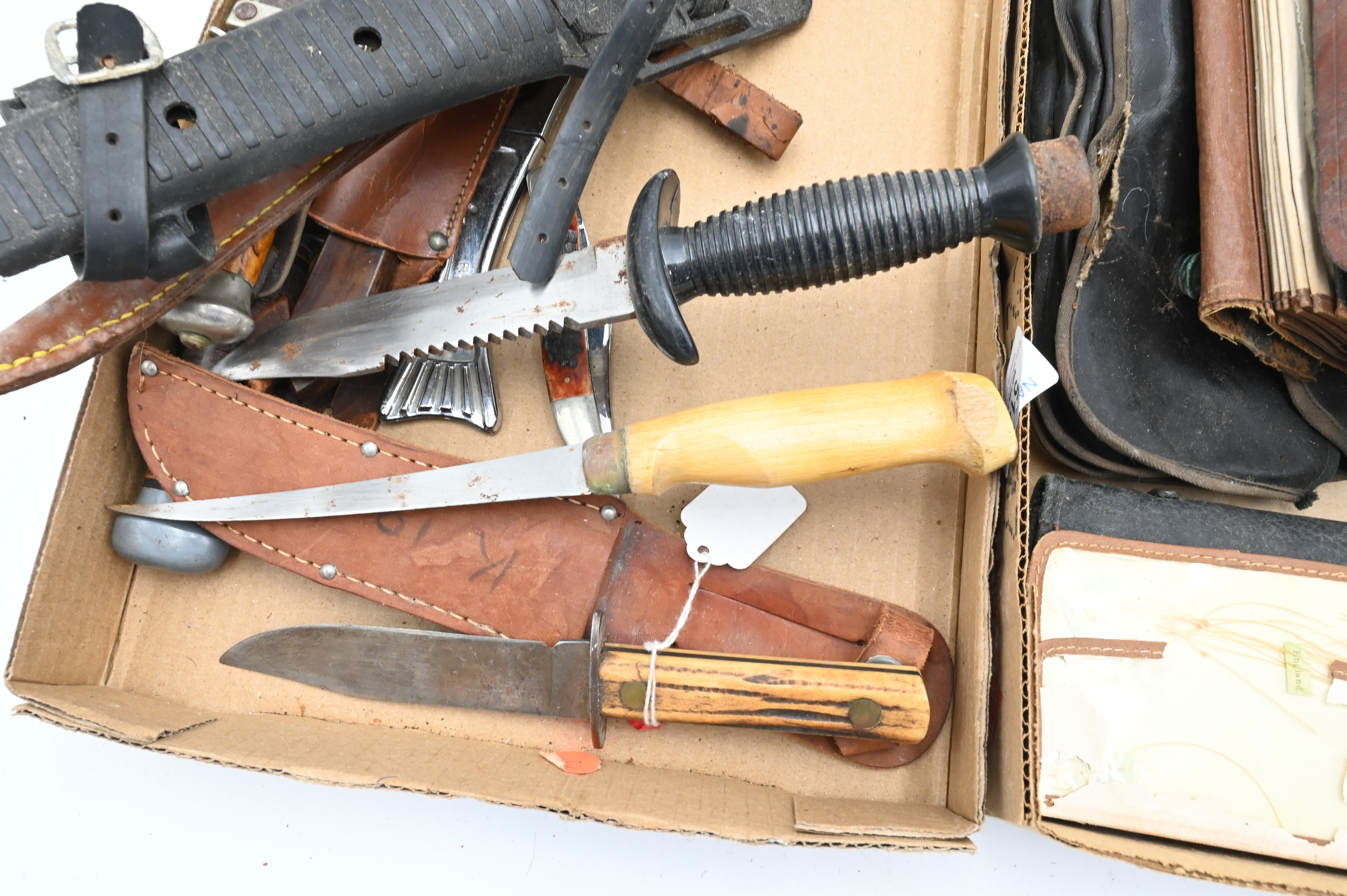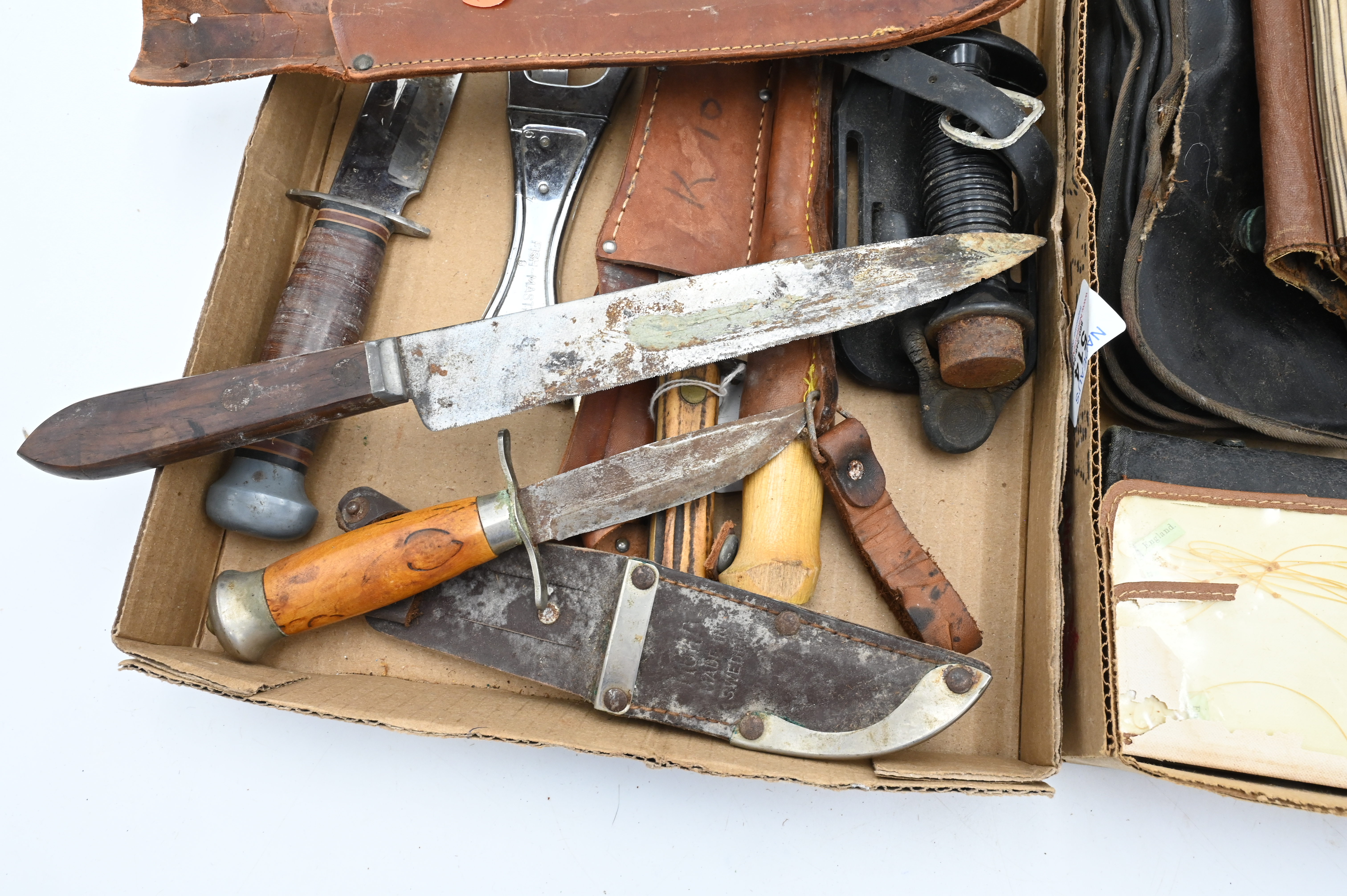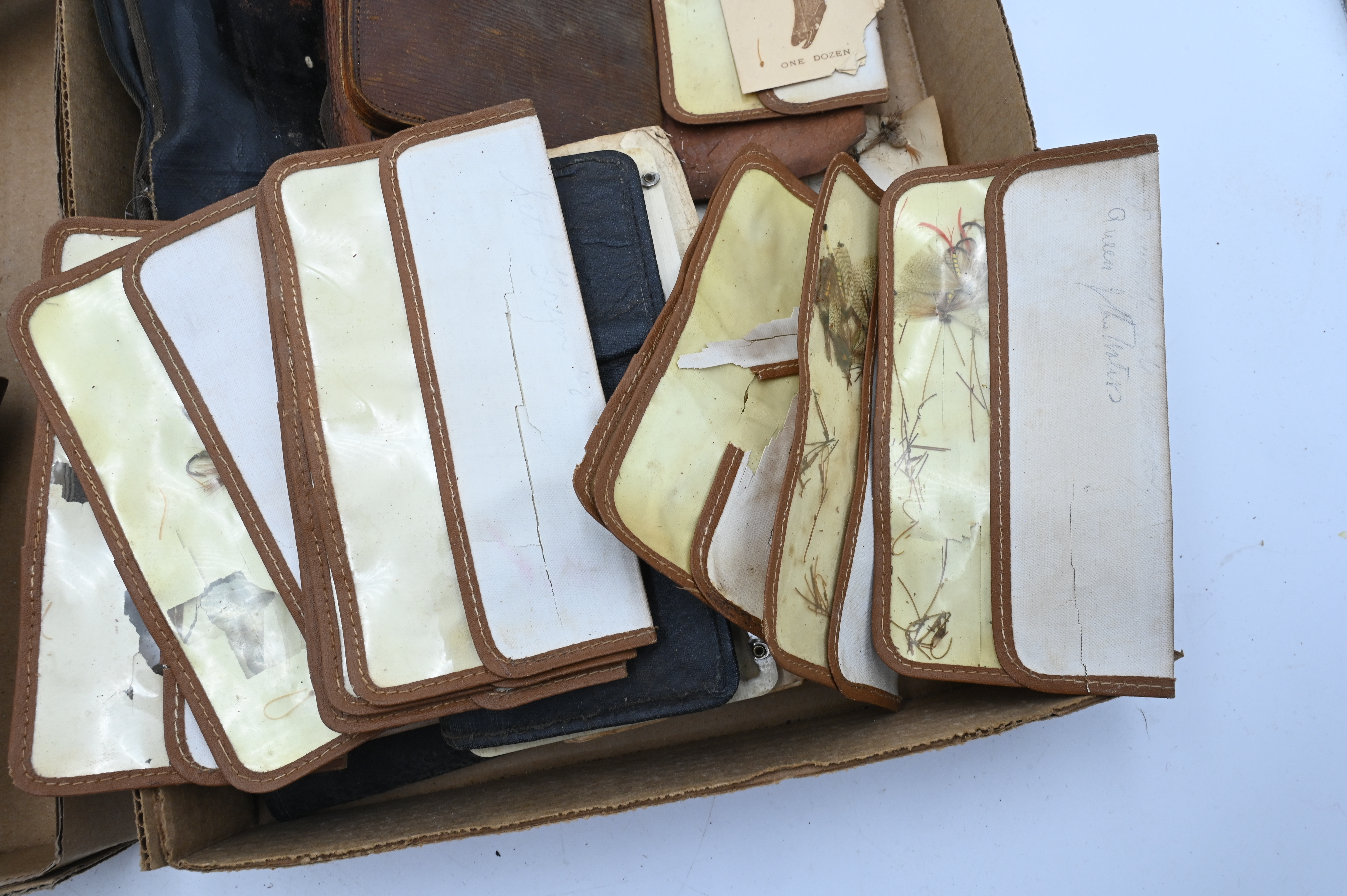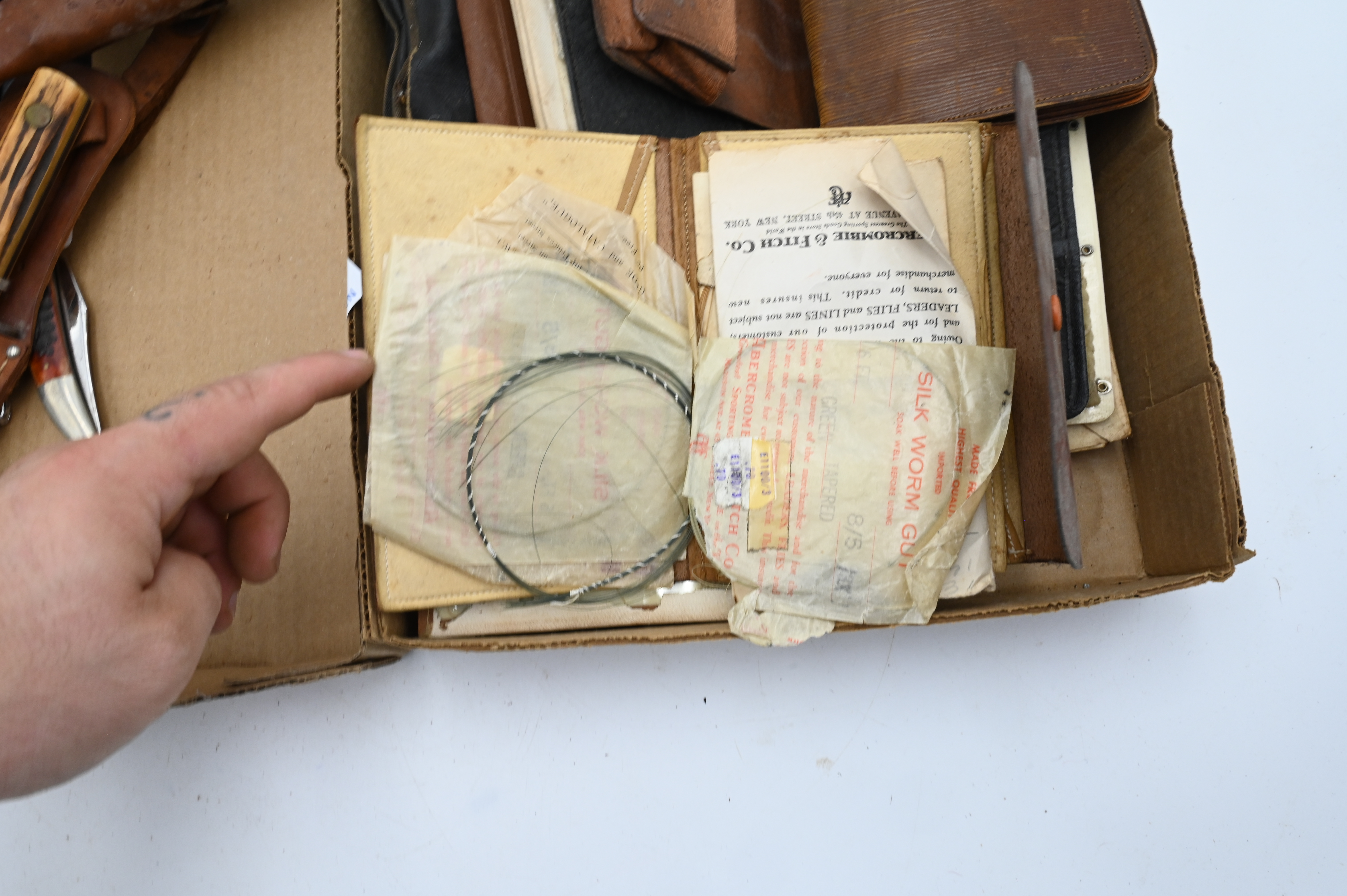 Two Tray Lots of Flies and Fly, along with old folder fly holders and eight knives.