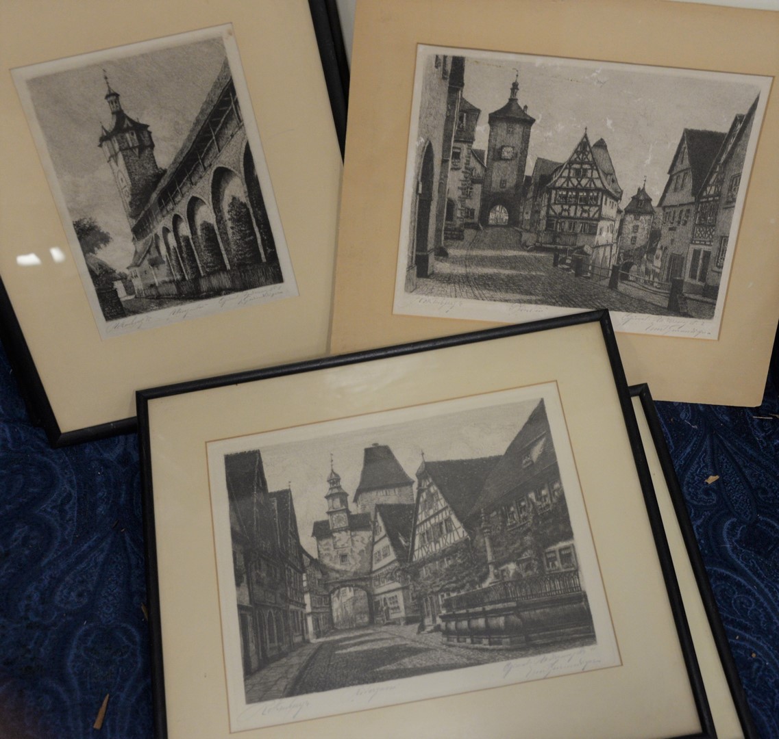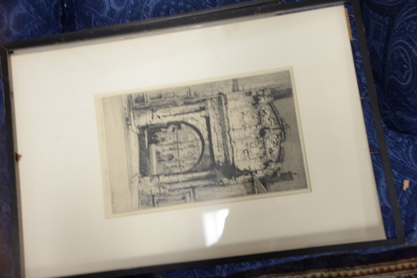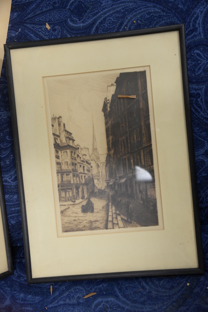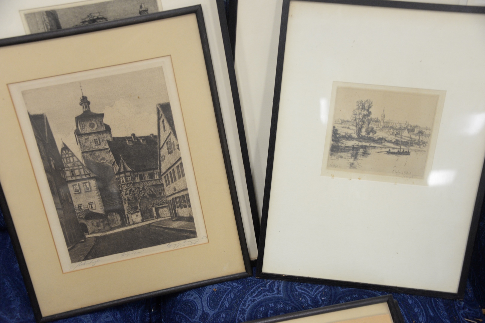 Lot 515: Group of Eleven Framed Etchings to include Martin Hardie, landscape, pencil signed Eugene Bejot, etching, Tersoul Church, Kirk & Co…