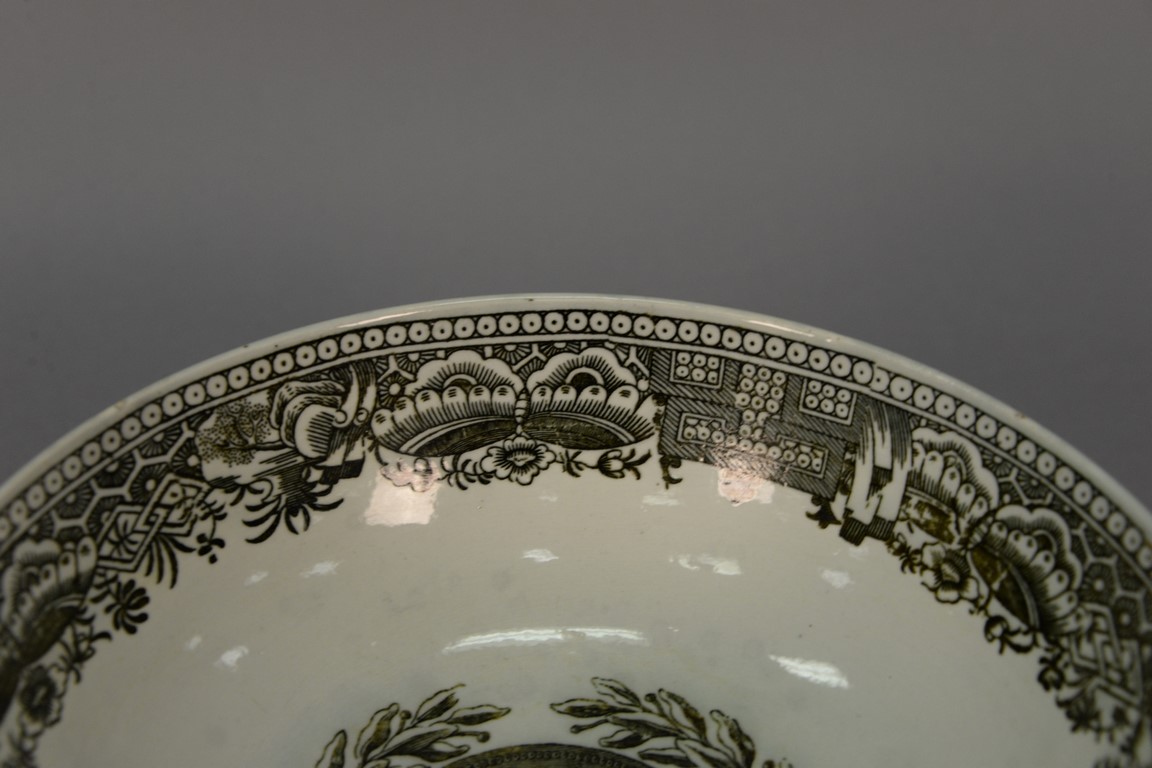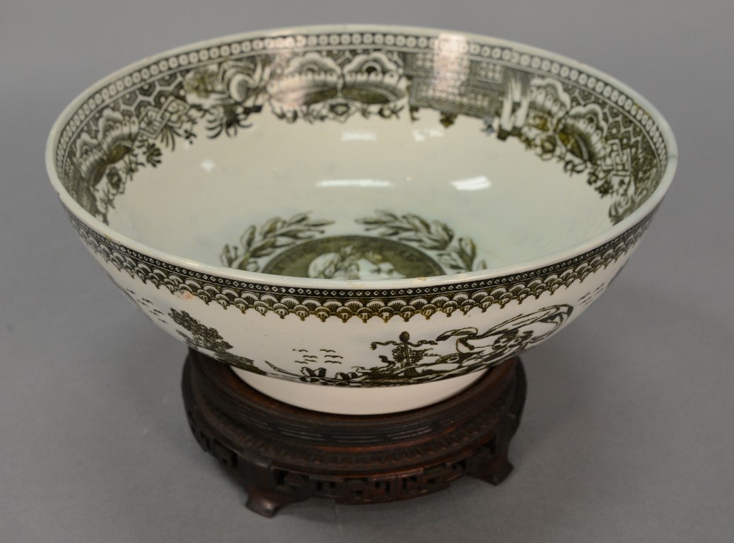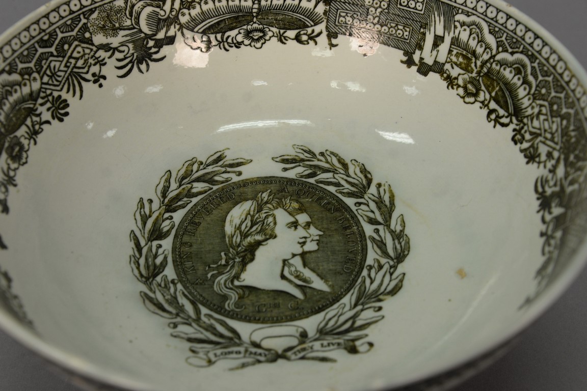 Lot 515: Liverpool footed bowl, medallion of George Rand and Queen Charlotte short hairline crack. dia. 9in.