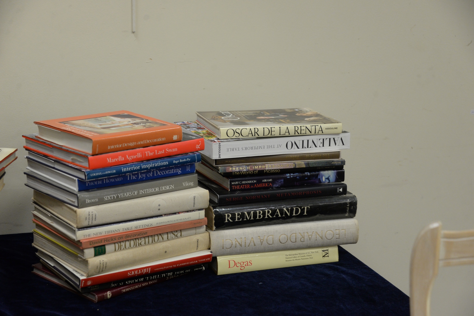 Lot of Coffee table books, approximately 30, related to interior design and couture fashion, titles include, Oscar de la Renta, Valentino, Leonardo da Vinci, Allure, Bayeux, Rembrandt, and Degas, etc.