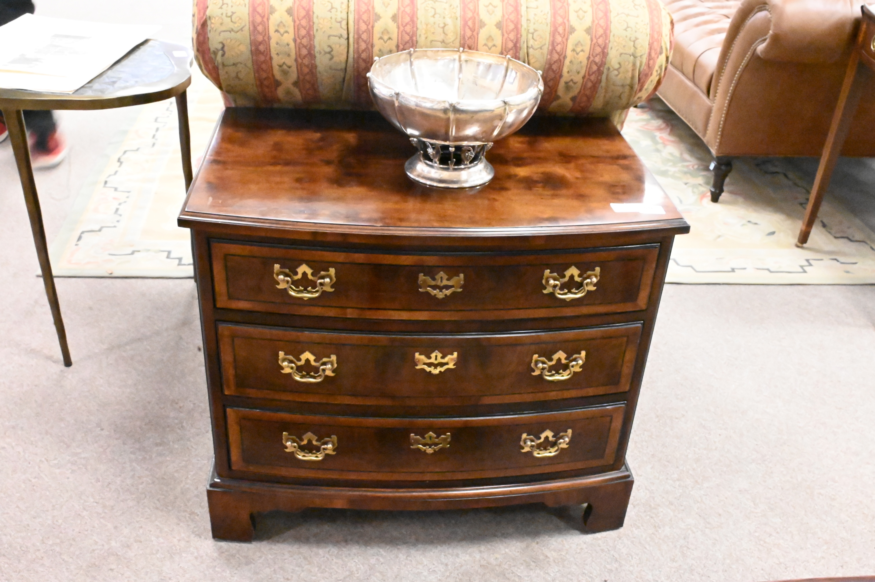 A Pair of Henredon Asian Court Three Drawer Side Tables/Night Stands, height 24 inches, top 18 1/2″ x 28″.