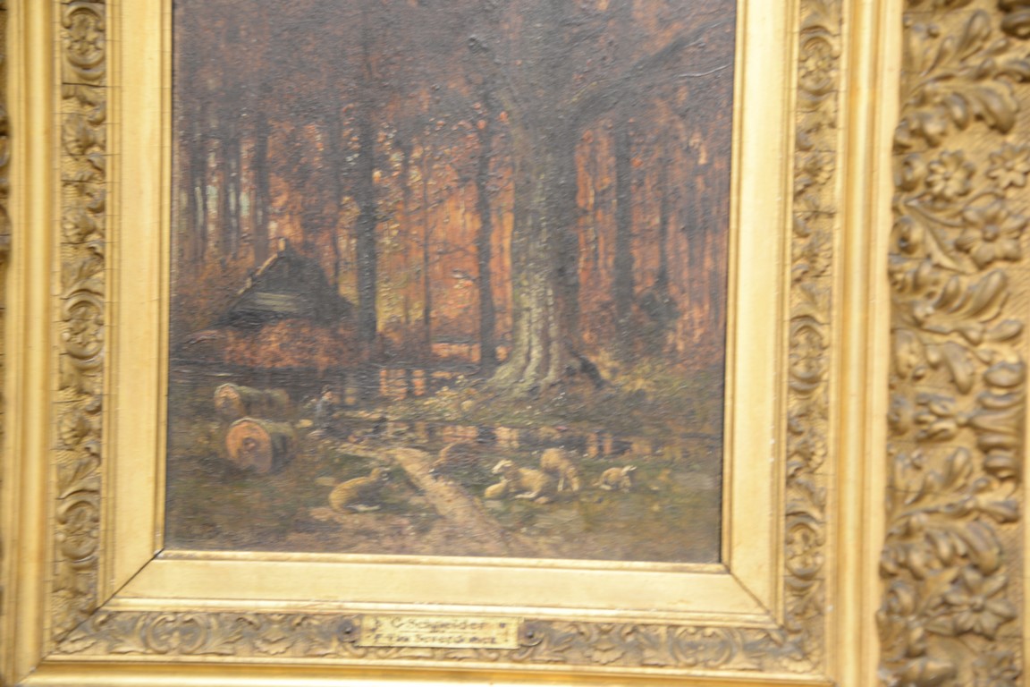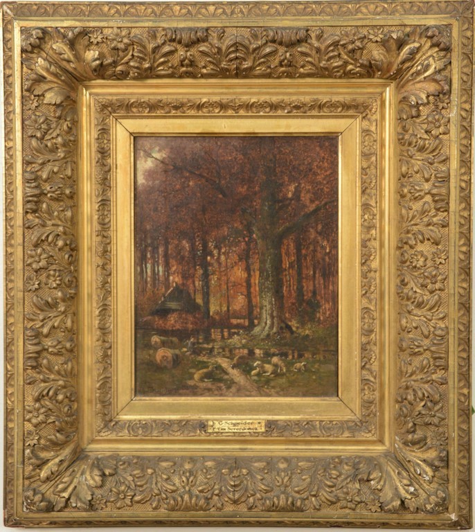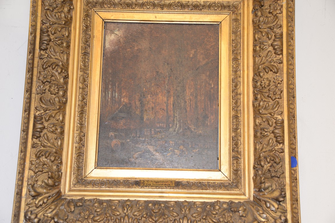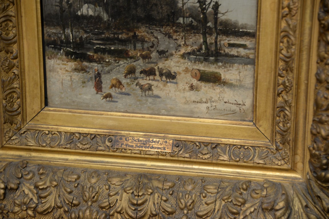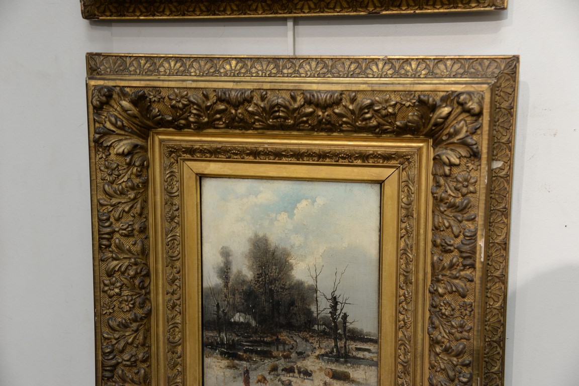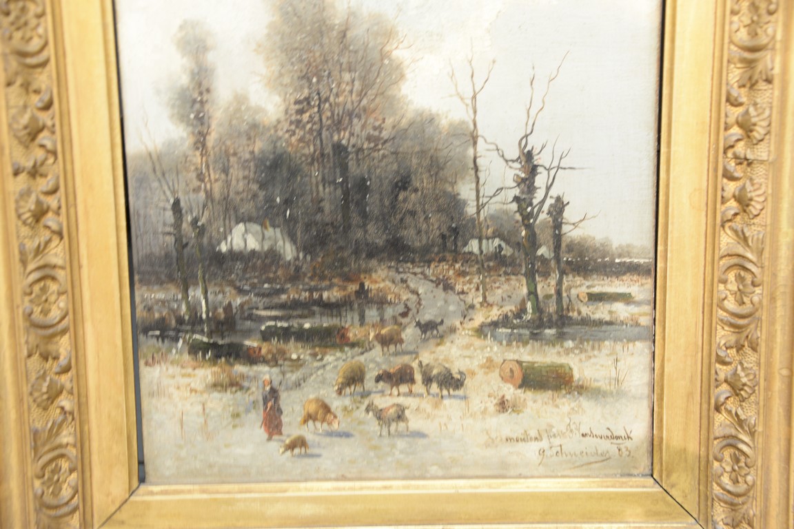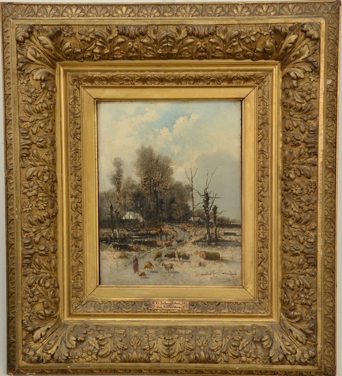 Lot 516: Franz Van Severdonck 1809-1889 and G. Schneider pair of oil on panel paintings Fall and Winter Farm Landscapes signed and…
