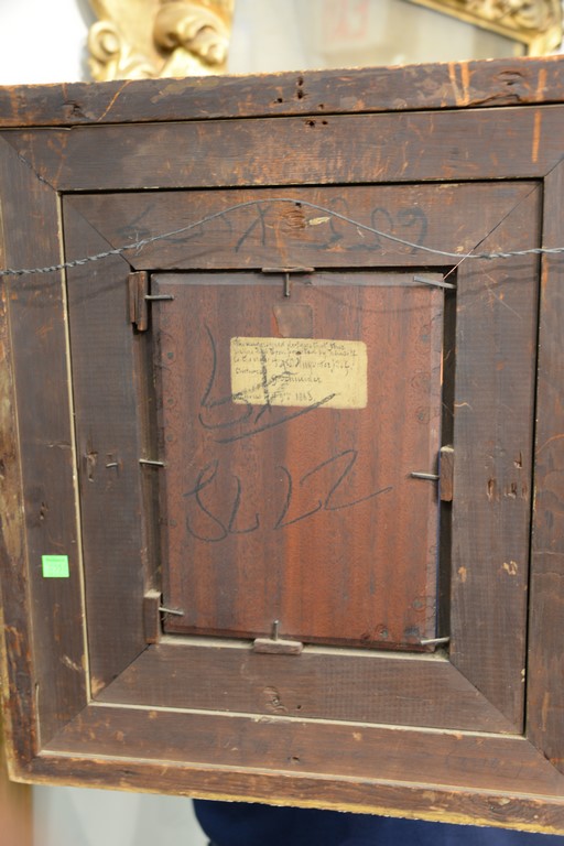 Franz Van Severdonck 1809-1889 and G. Schneider pair of oil on panel paintings Fall and Winter Farm Landscapes signed and dated F. Severdonck and G. Schneider 83 11 X 8 each