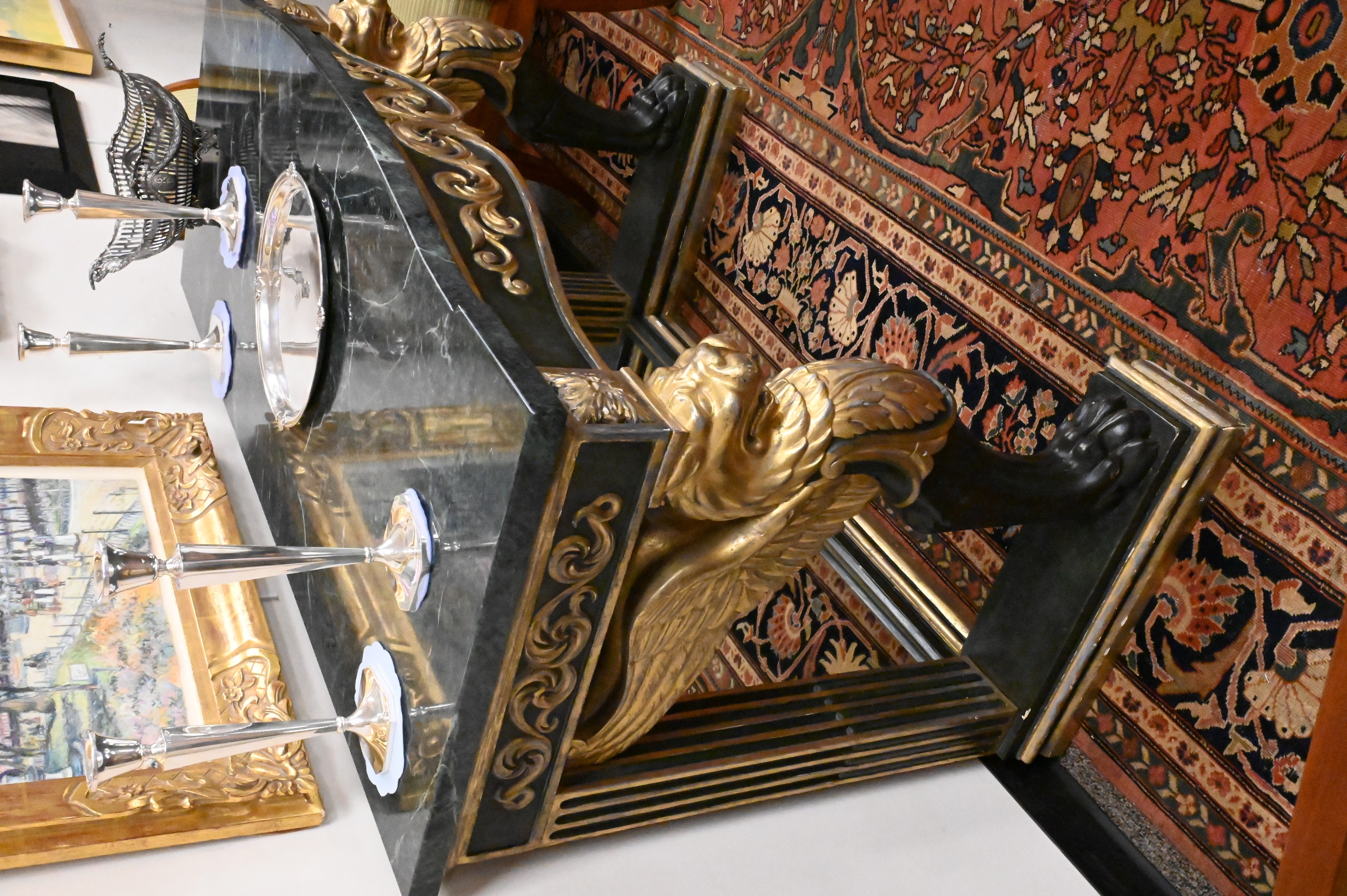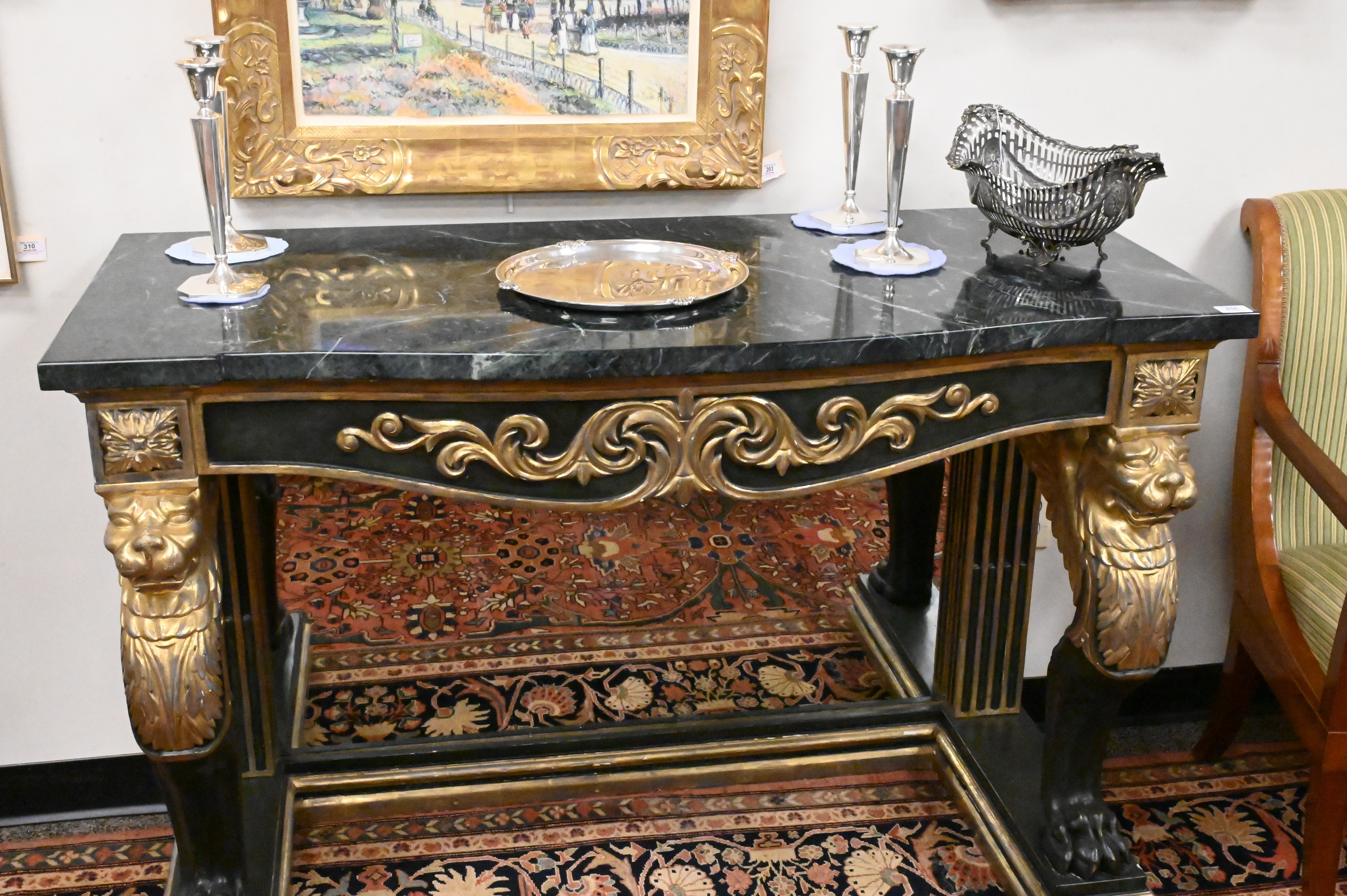 Lot 516: French Empire Ebonized and Parcel Gilt Console Table