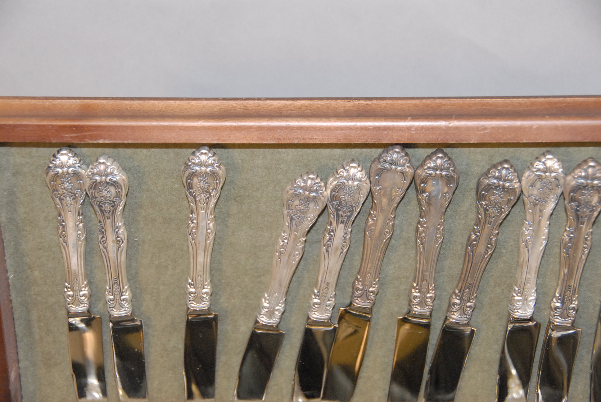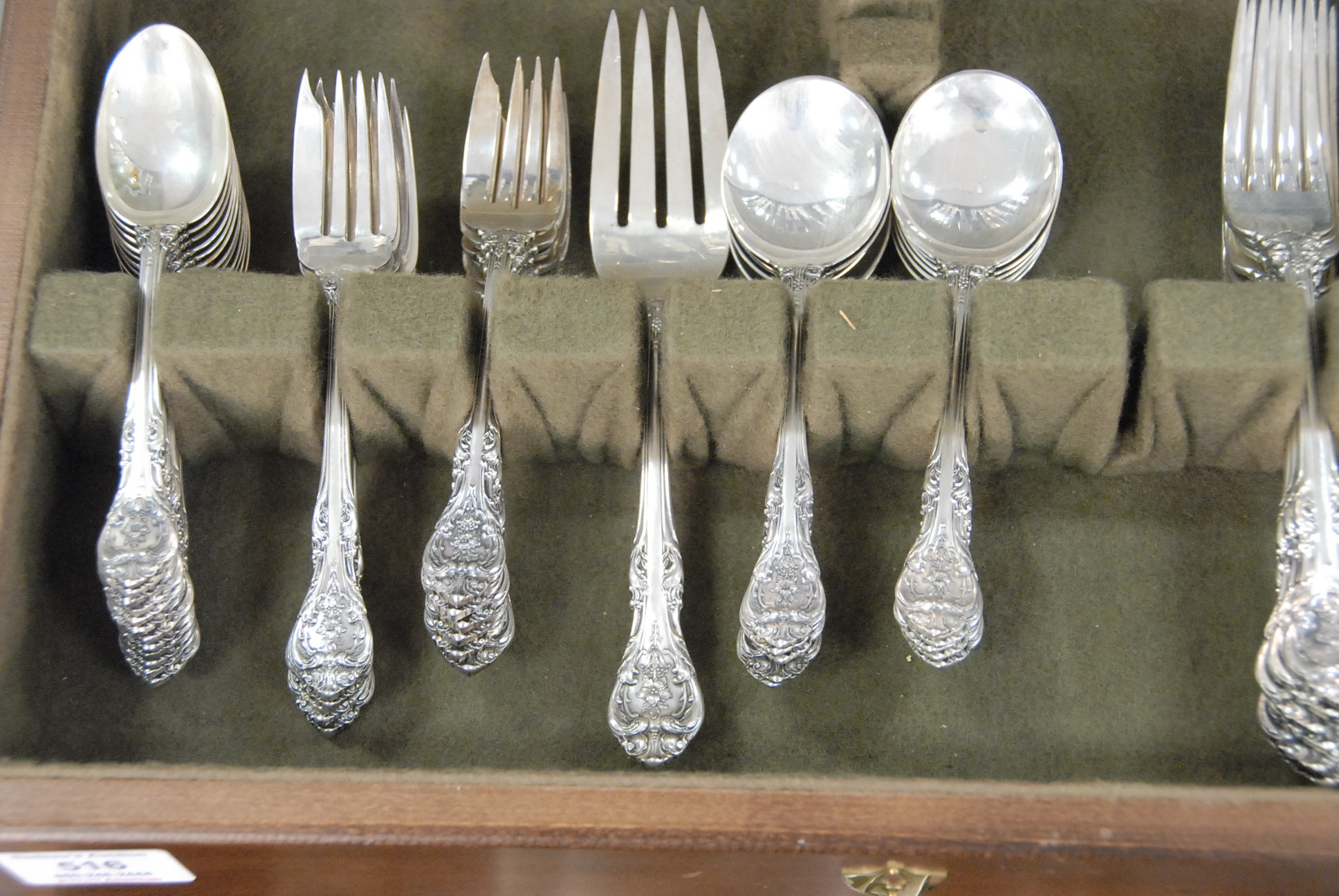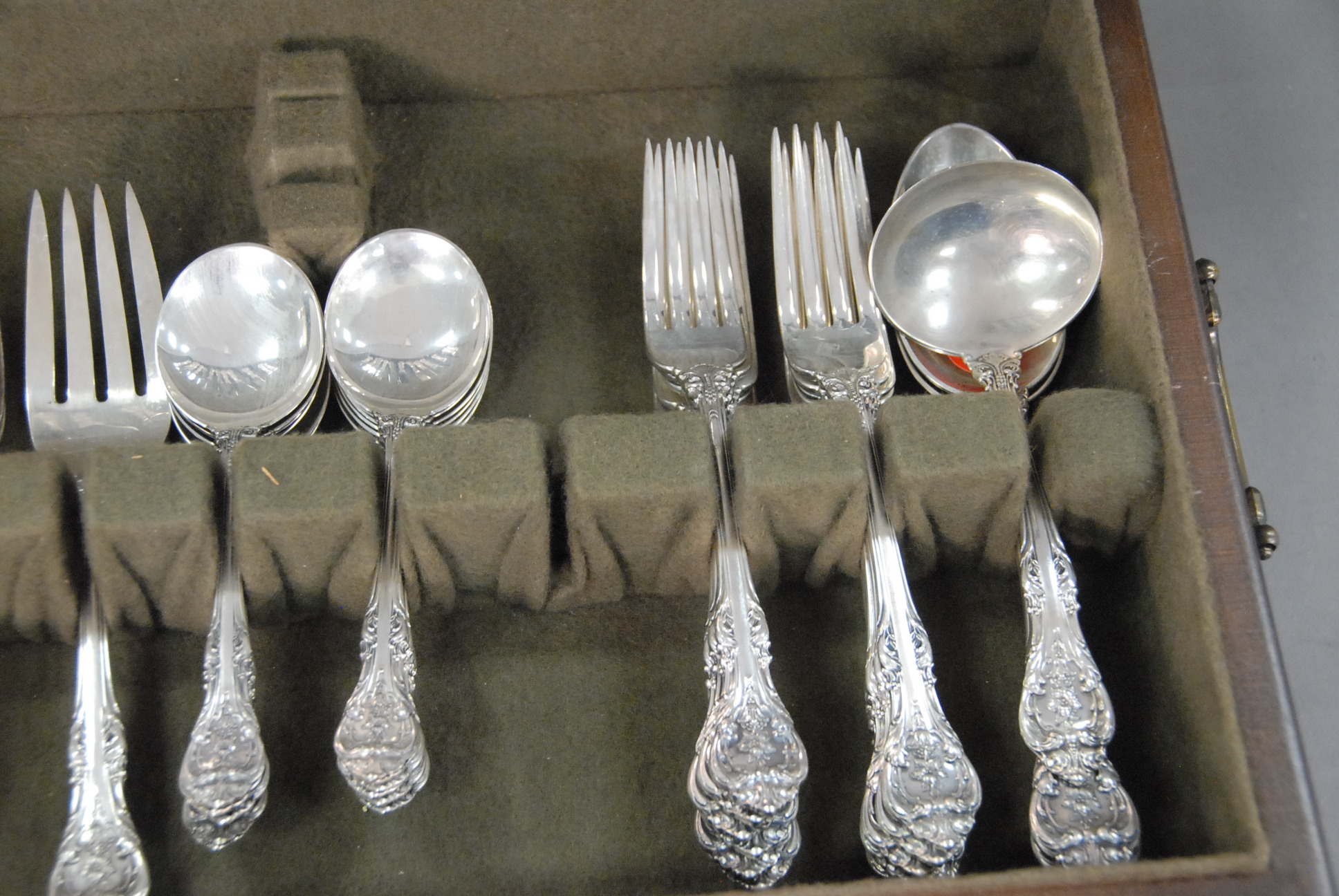 Gorham sterling silver flatware setting for twelve, sixty seven pieces.