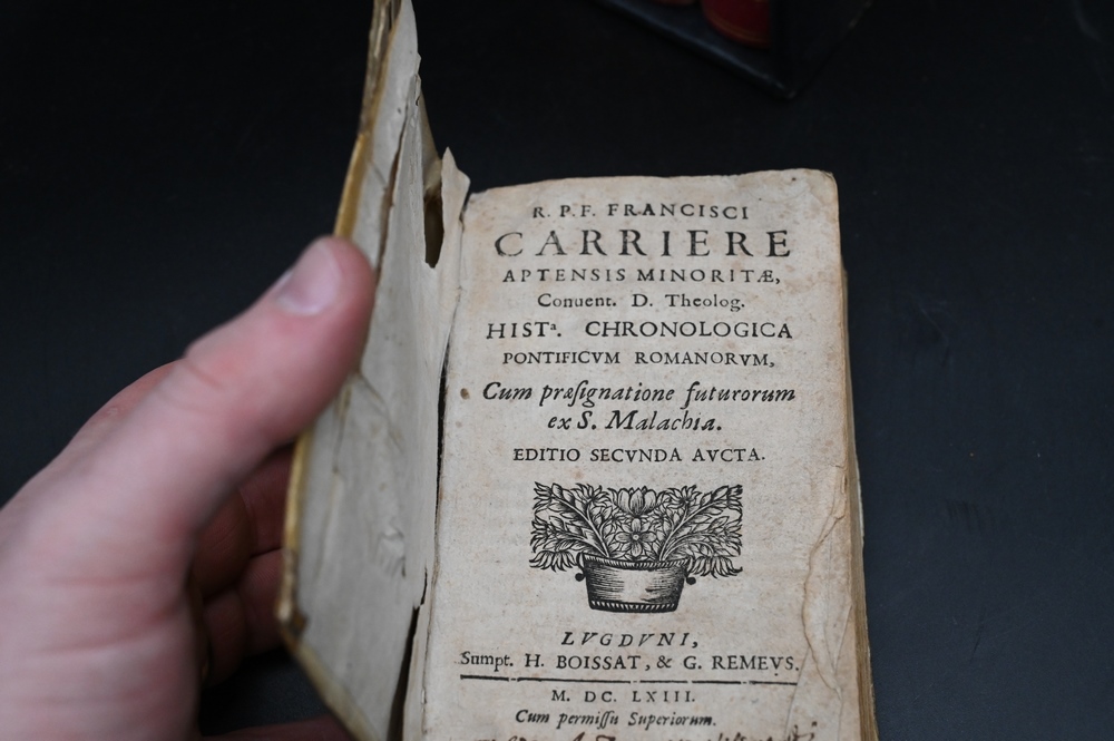 Lot 516: Group of Books, to include 1663 Francisco Carriere Chronological; a three volume set; ledger; leather bound daybook; blotter, in fit…
