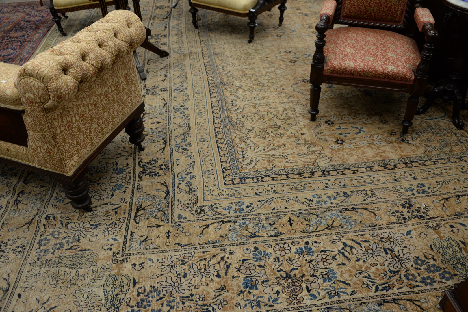 Lot 516: Oriental Carpet 20′ 6 x 30′ 6 Provenance: Former home of Mel Gibson, Old Mill Rd, Greenwich, Connecticut