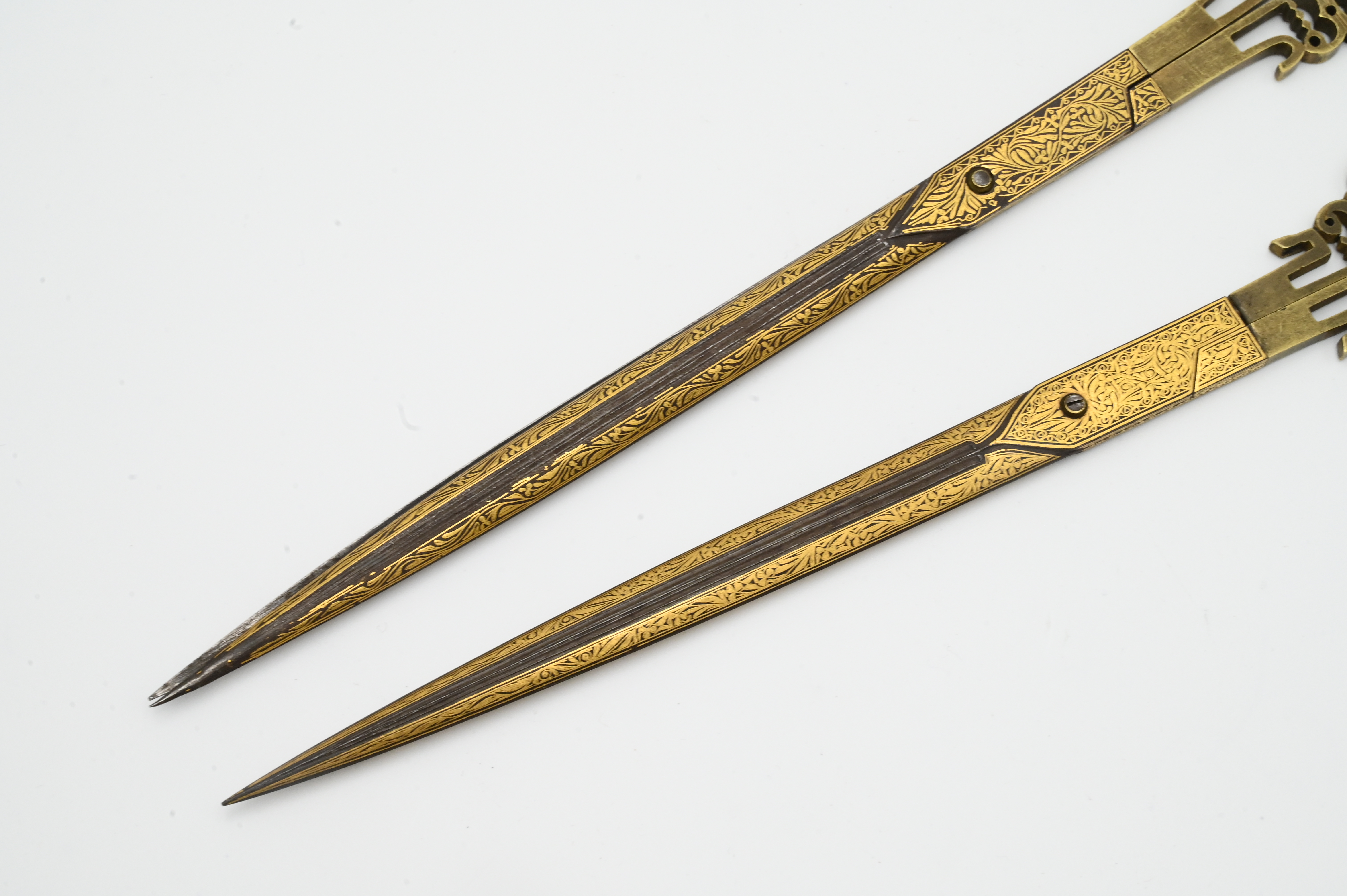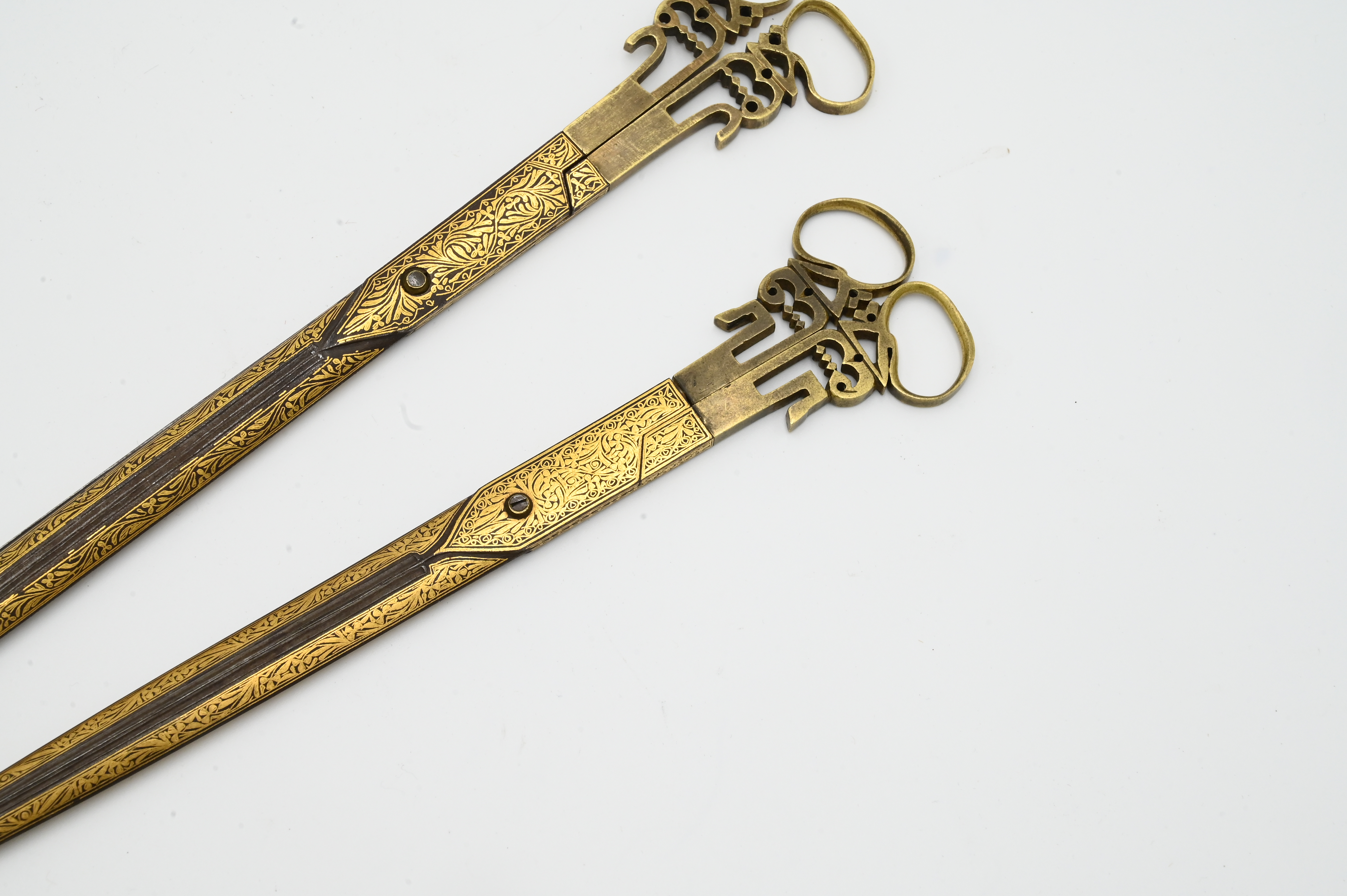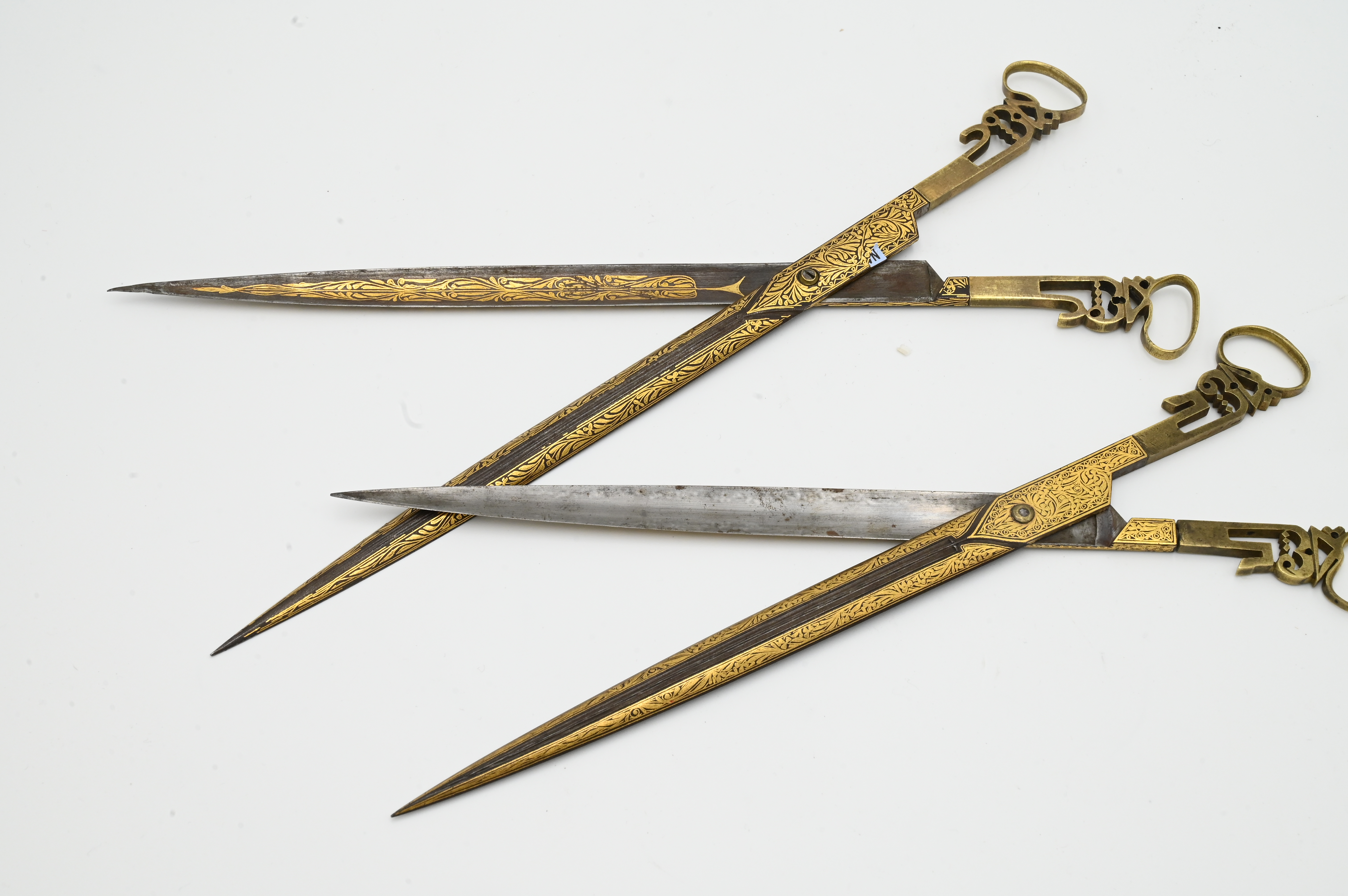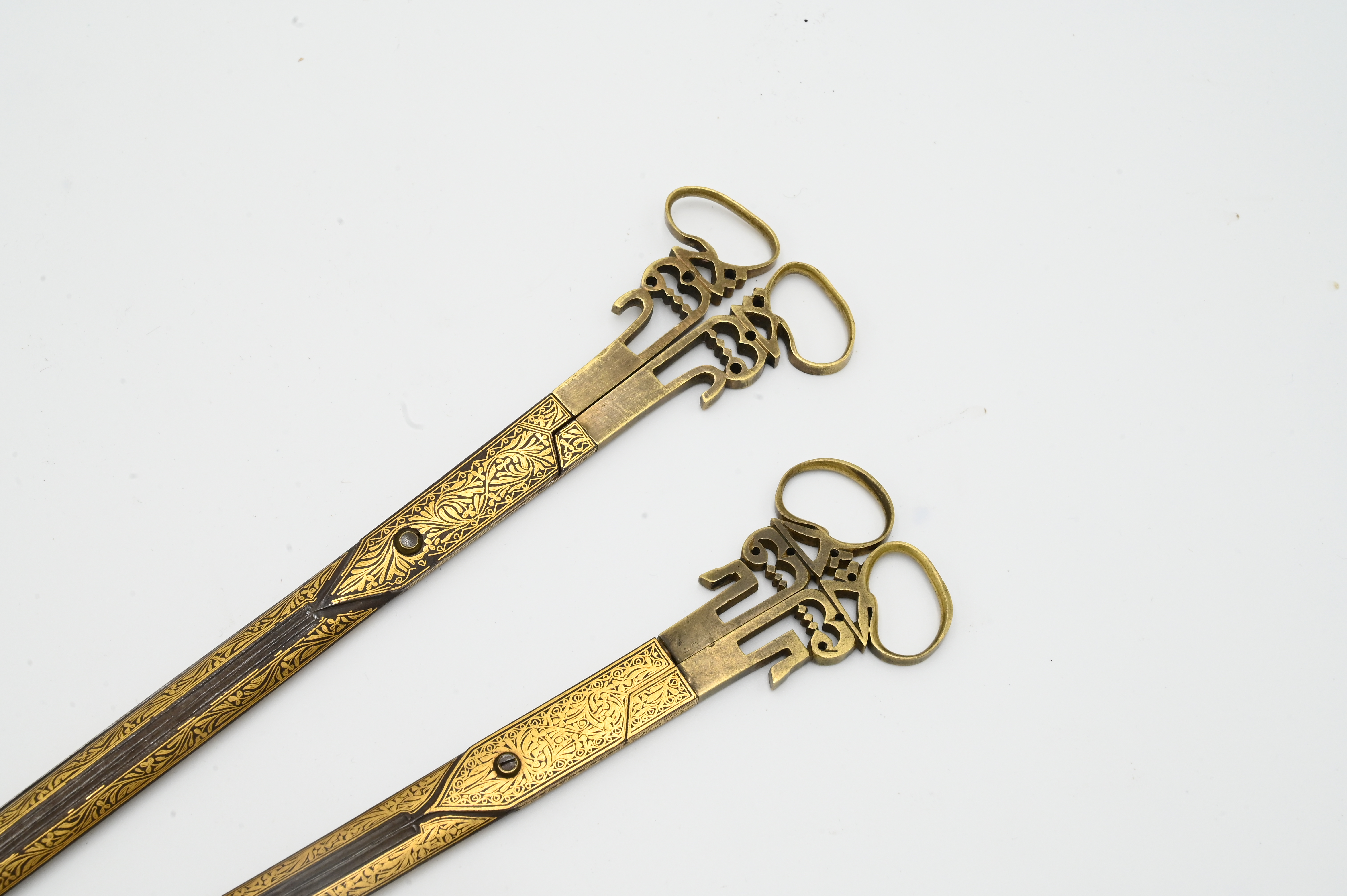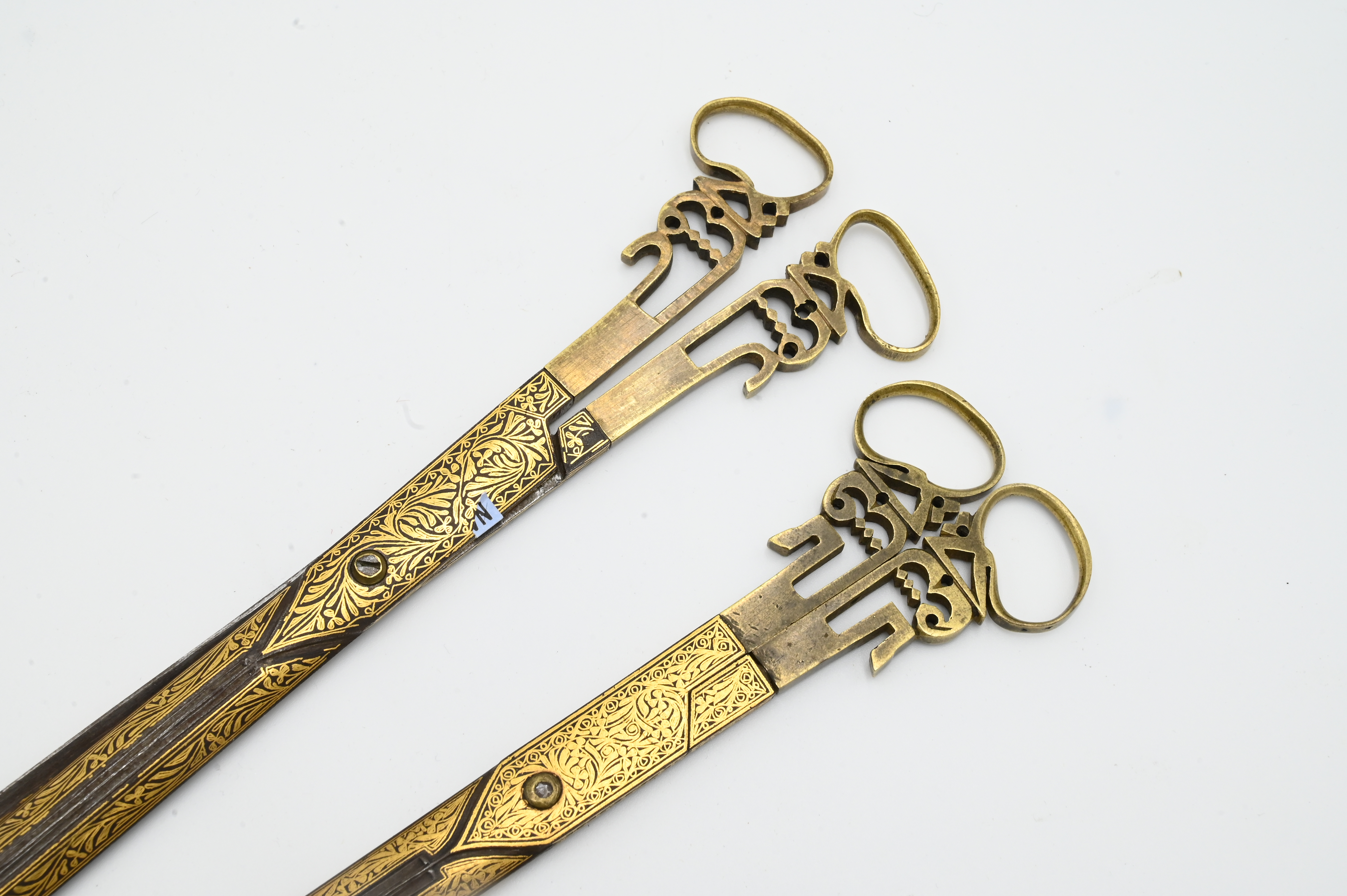 Pair of Turkish Ottoman Gold Damascened Calligraphy Scissors length 11 3/4 inches Provenance: Estate of Dr. Vallo Benjamin E 57th St New York