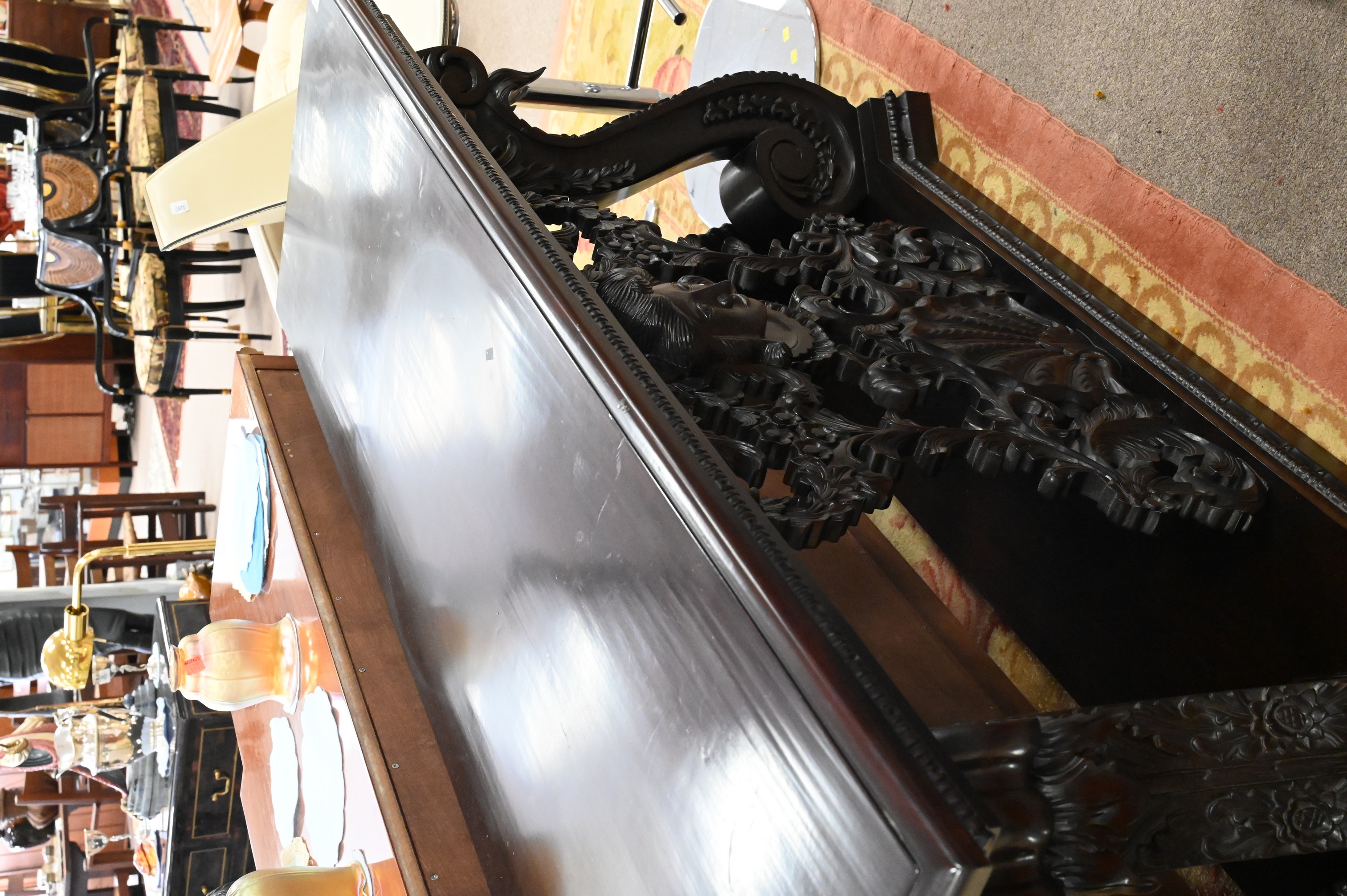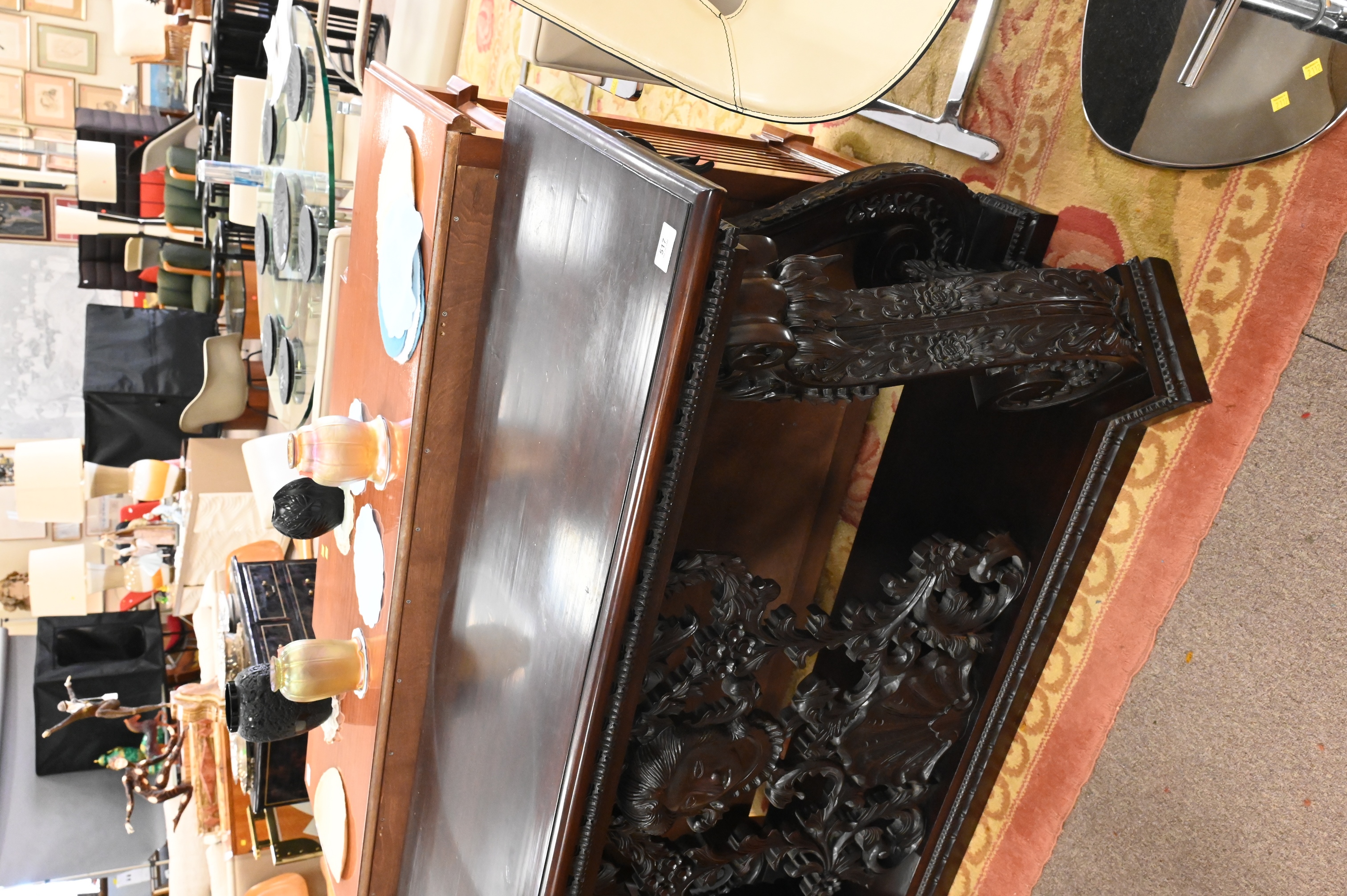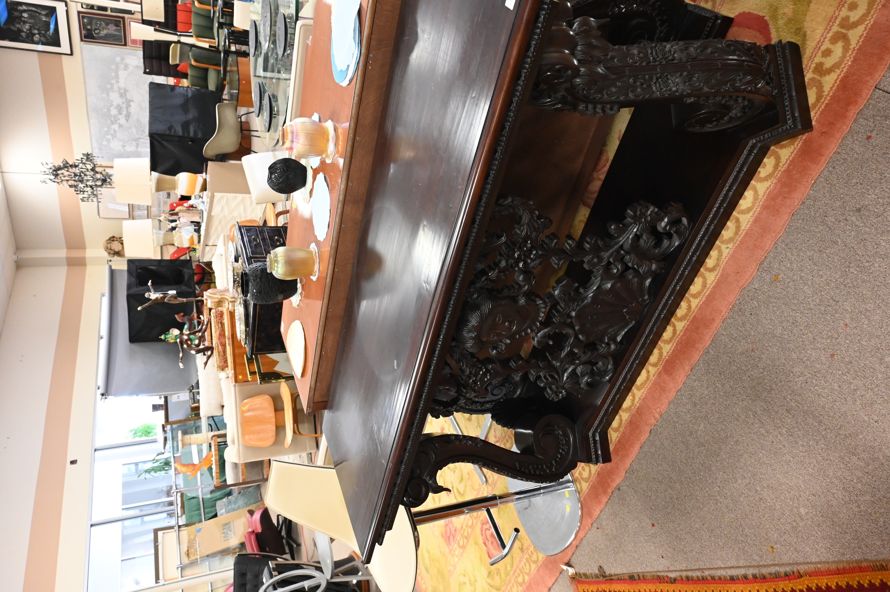 having central carved woman’s face over shell and set on four scrolling supports ending in shaped base