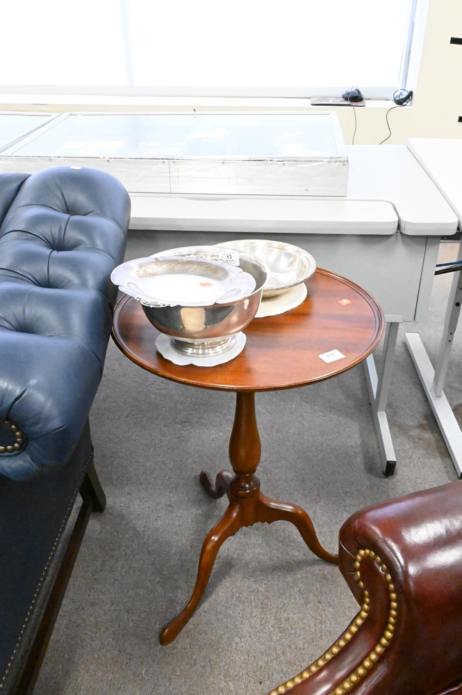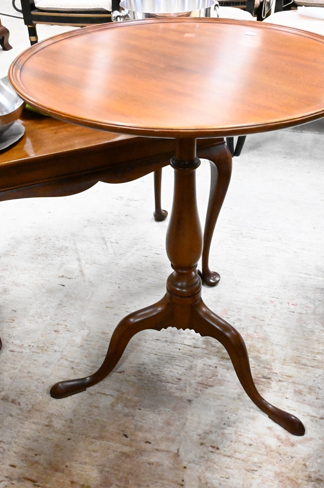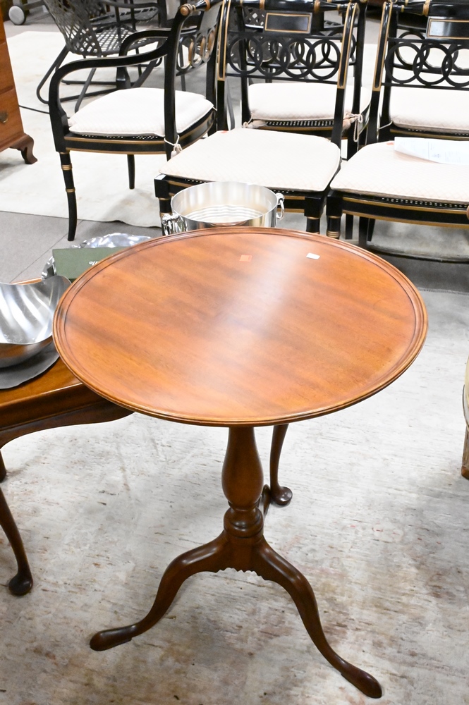 Lot 517: Pair of Margolis Custom Mahogany Candle Stands, having dished tops, height 26 inches, diameter 20 inches.
