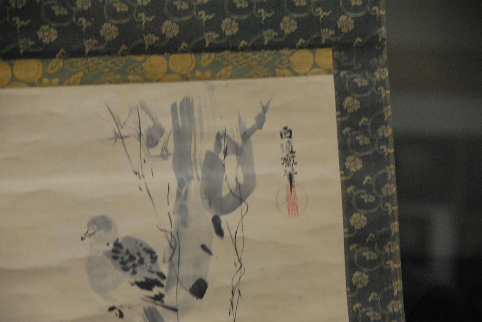 Scroll painting of bird in tree. 16 x 23 1/2 image size