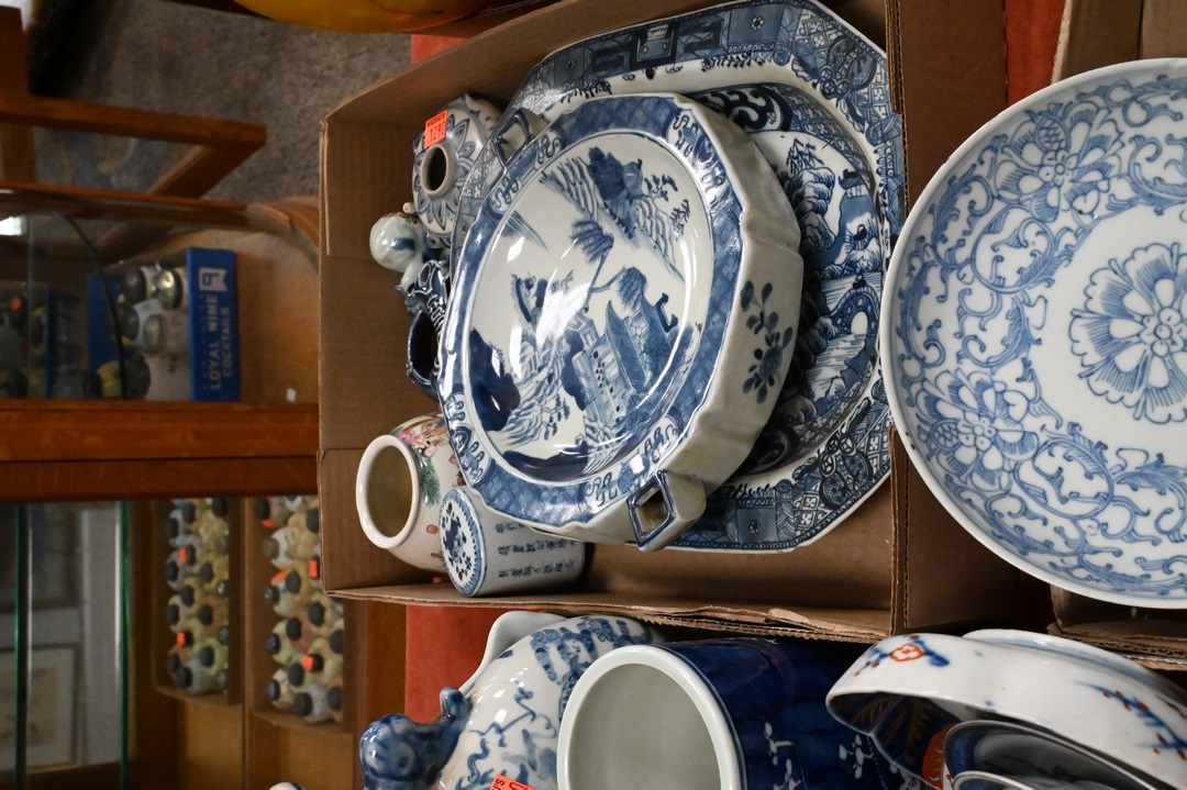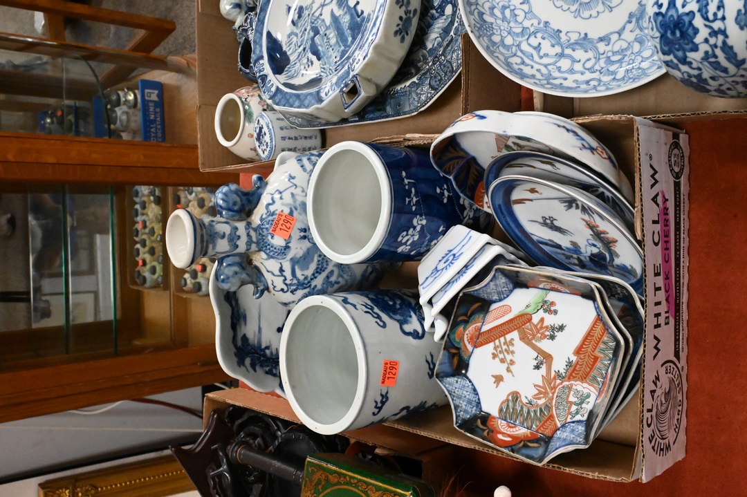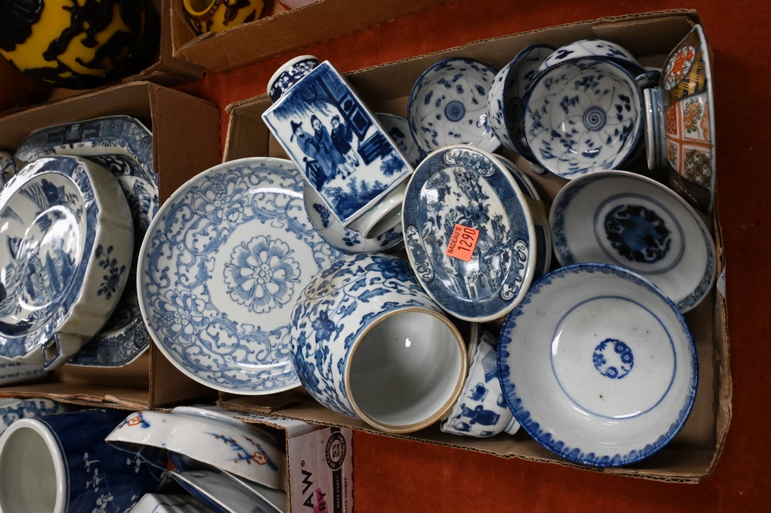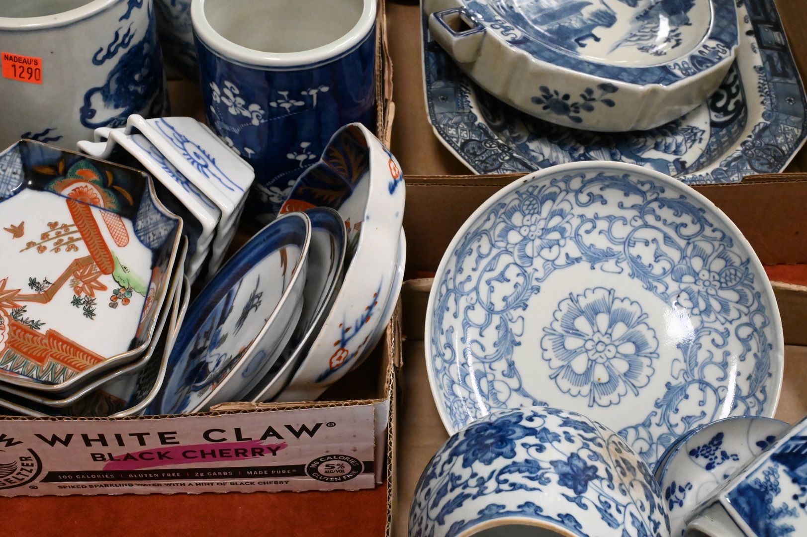 Three Tray Lots of Chinese Black And White Porcelain, to include cups, saucers, vases, brush pots, etc.