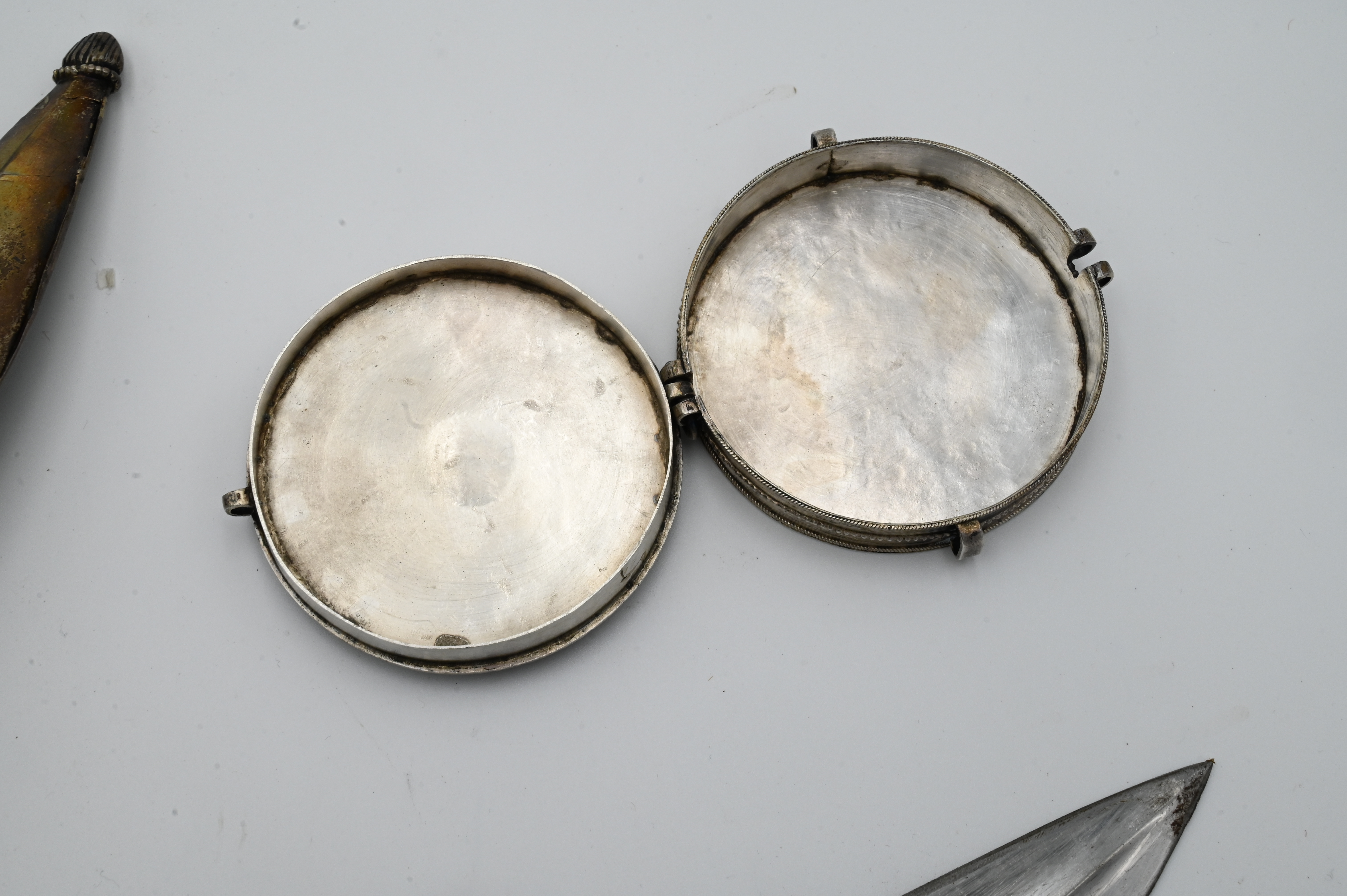 along with a small round box, diameter 3 inches, mounted with jewel in center