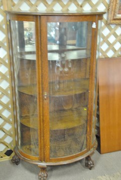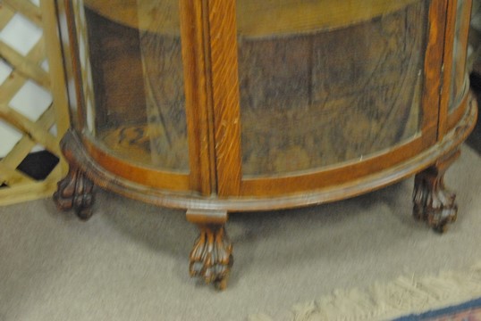 Victorian oak bowed glass china cabinet. ht. 60 in. wd. 34 in. dp. 18 in.
