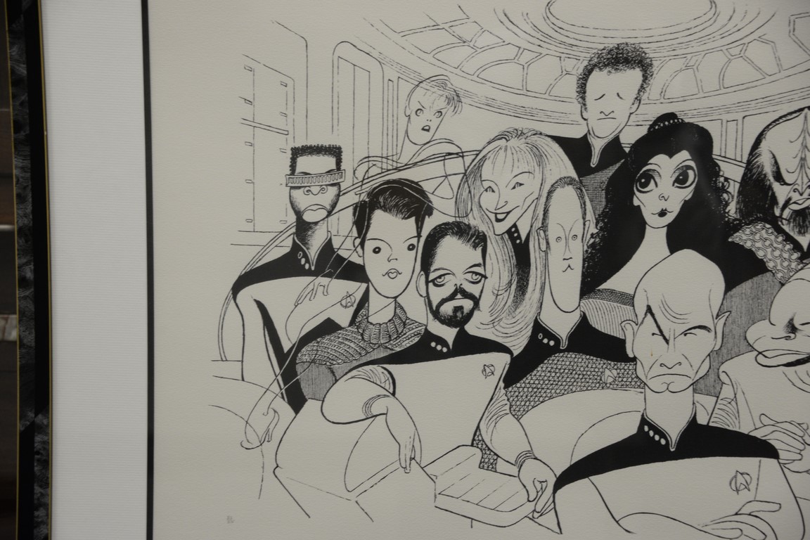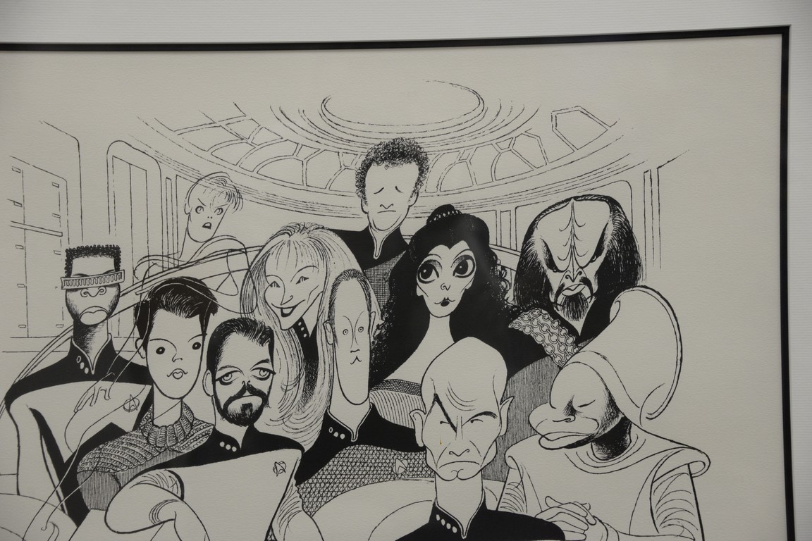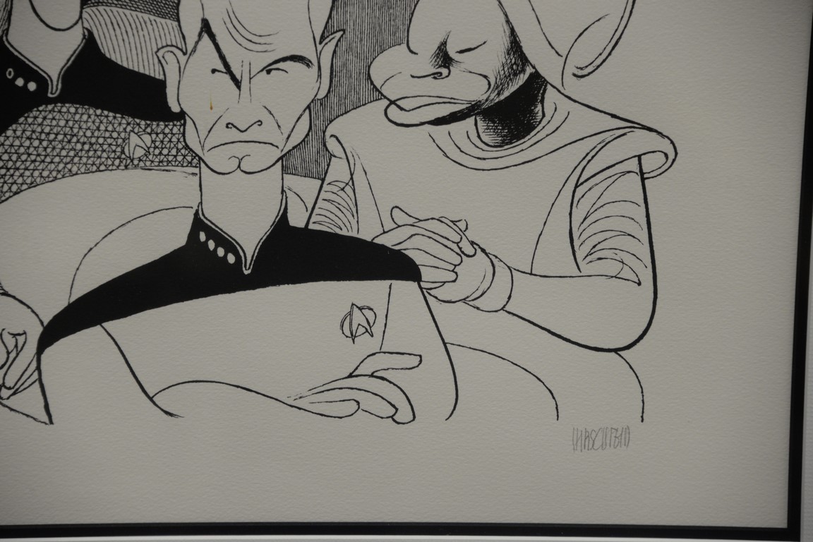 Lot 518: Al Hirschfeld hand signed lithograph Star Trek: The Next Generation Cast Patrick Stewart, Jonathan Frakes, Levar Burton, et…