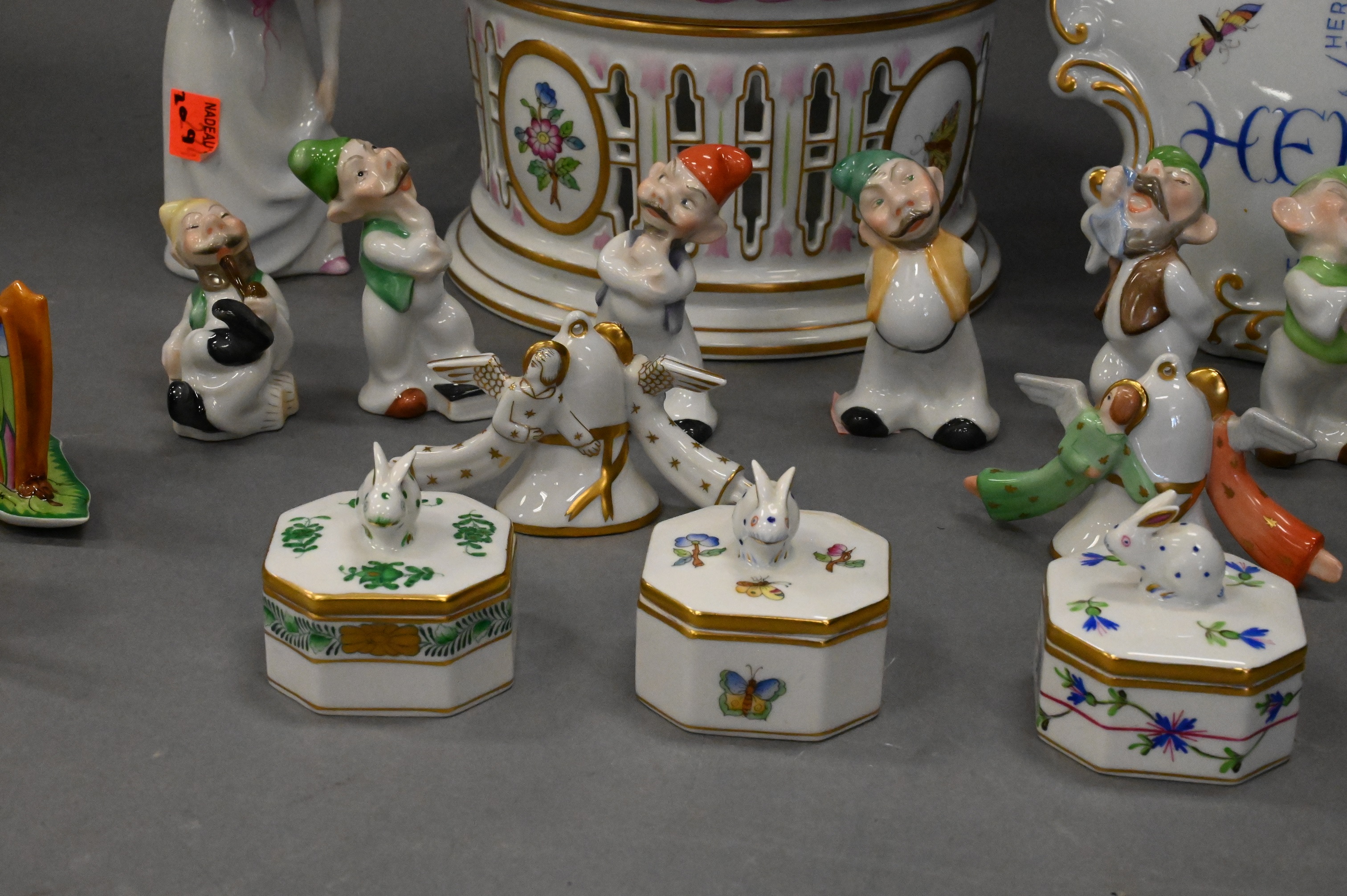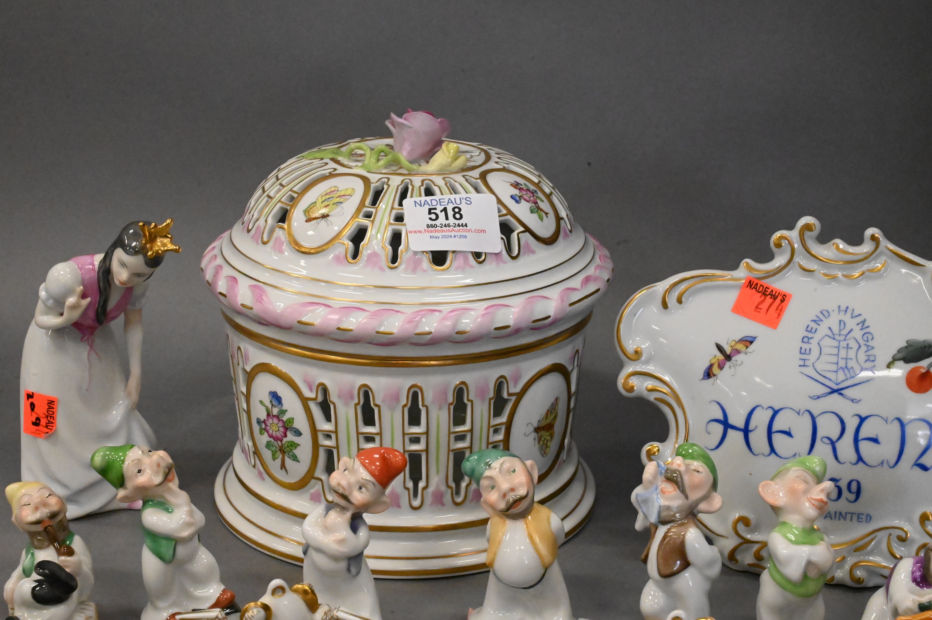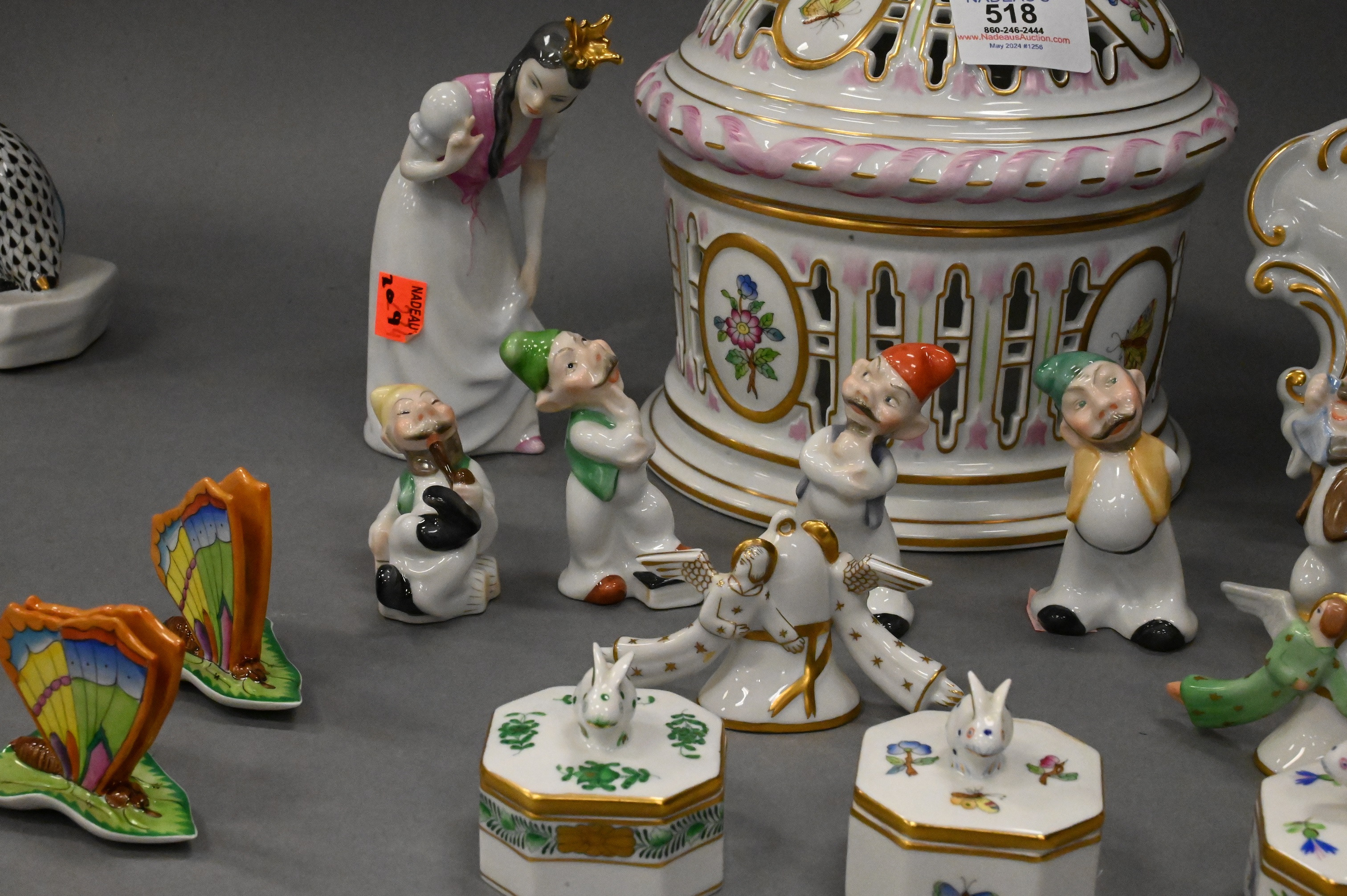 to include Snow White and the Seven Dwarves, Herend 1839 plaque, four butterflies, two angel bells, three rabbit trinket boxes, bird vase, reticulated covered dish having rose handle
