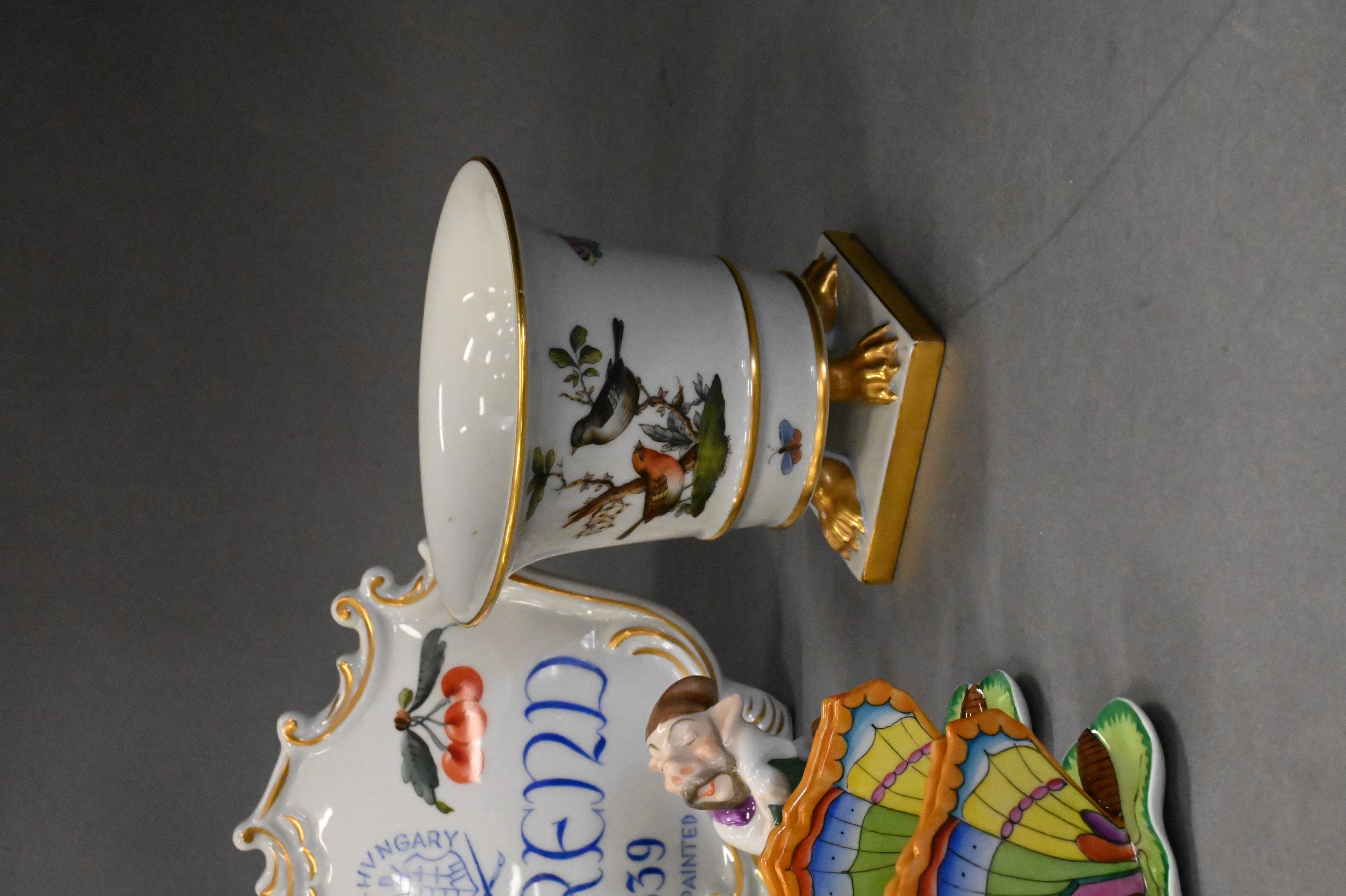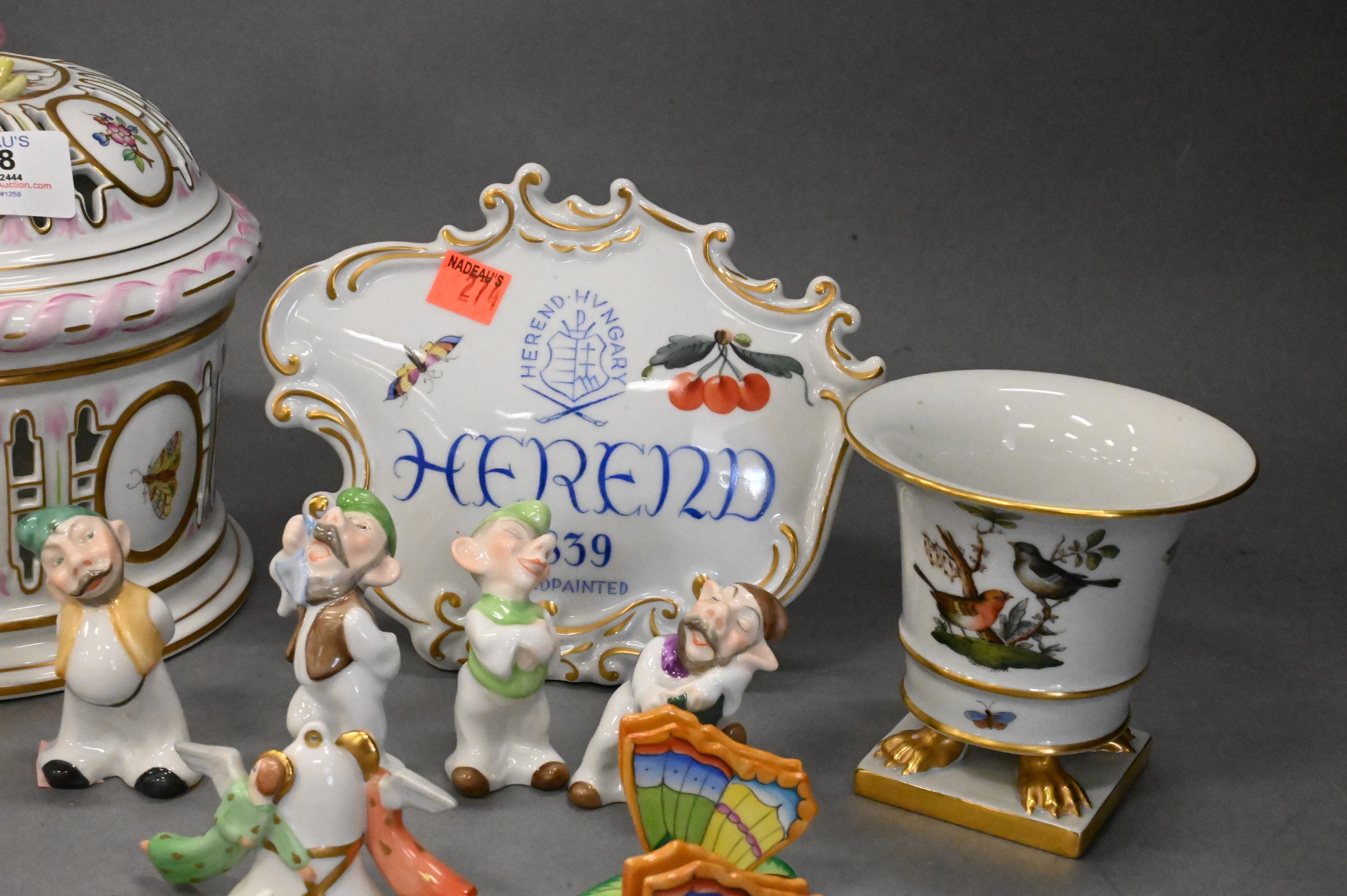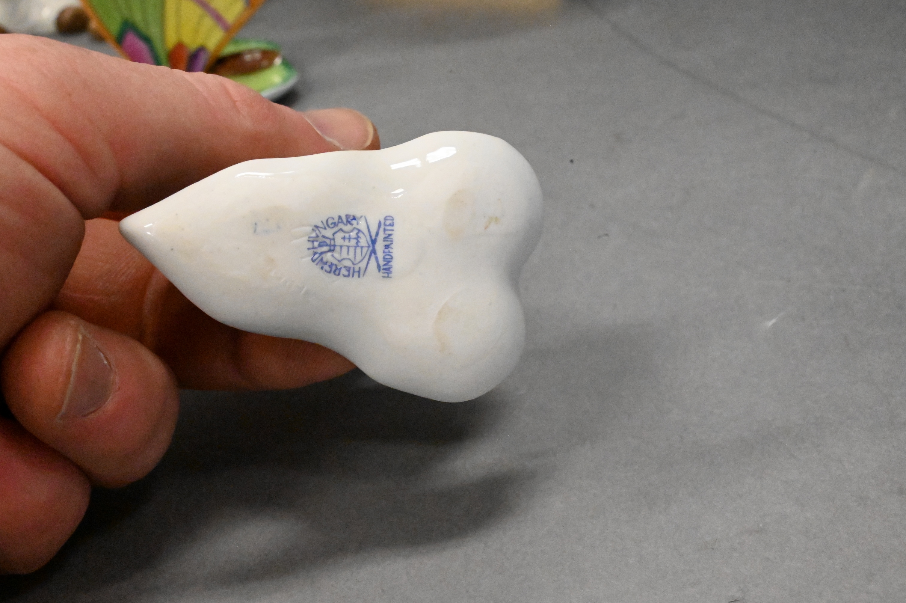 to include Snow White and the Seven Dwarves, Herend 1839 plaque, four butterflies, two angel bells, three rabbit trinket boxes, bird vase, reticulated covered dish having rose handle