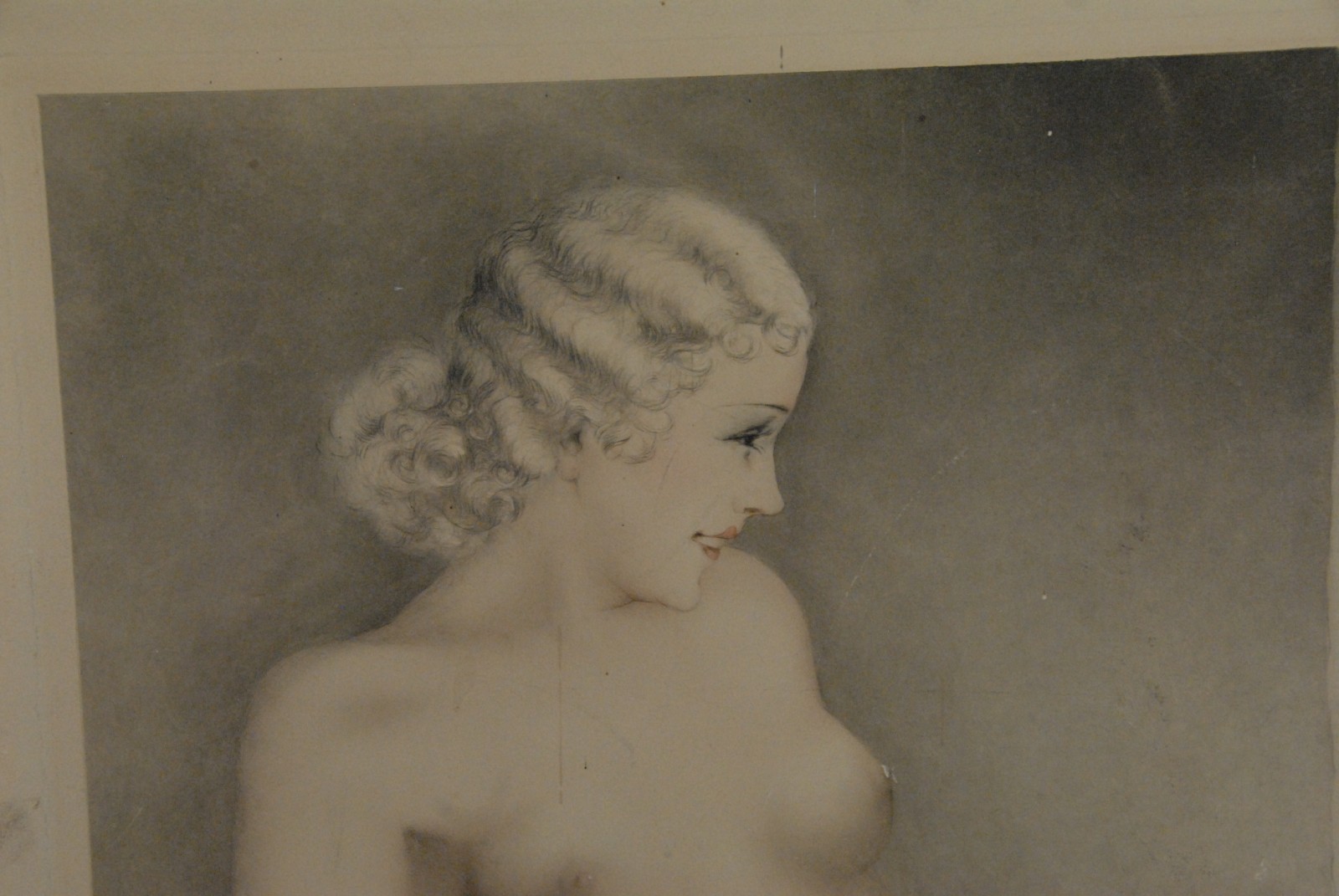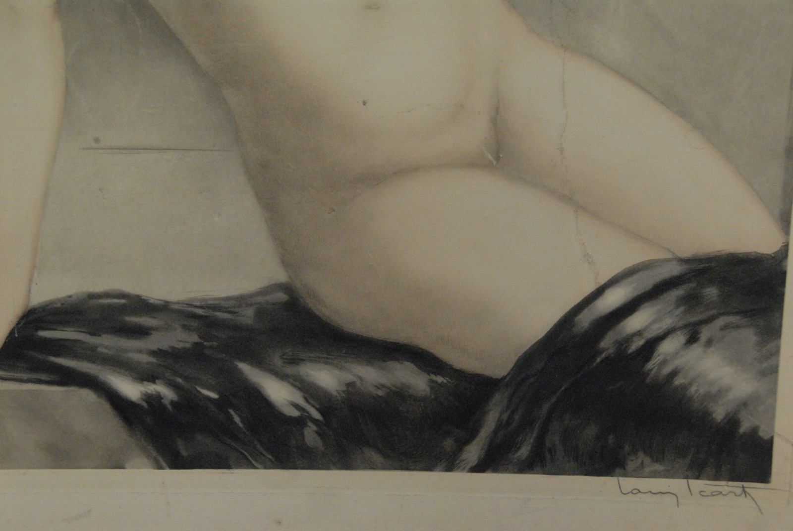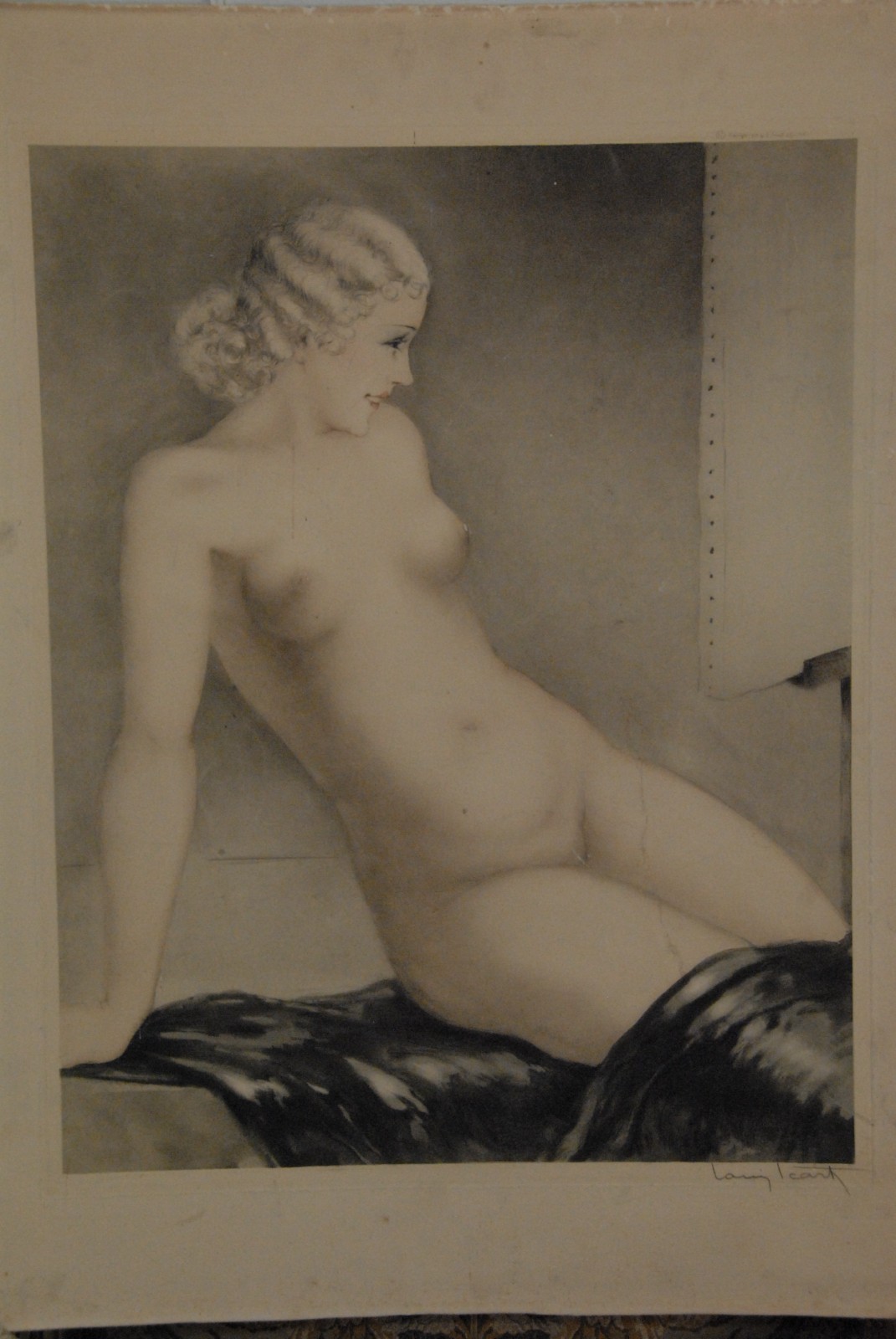 Louis Icart 1888 – 1950 untitled posing nude woman etching signed lower right Louis Icart lower left Paris stamp.