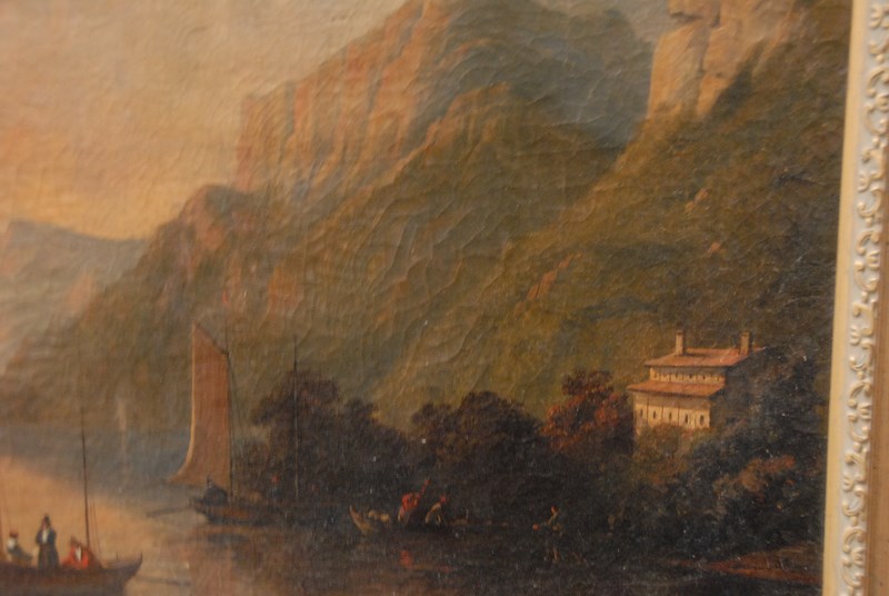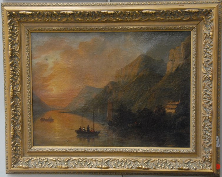 Lot 518: Manner of Albert Bierstadt 1830-1902 SUNSET ON THE RIVER oil on canvas unsigned restretched 17 x 23
