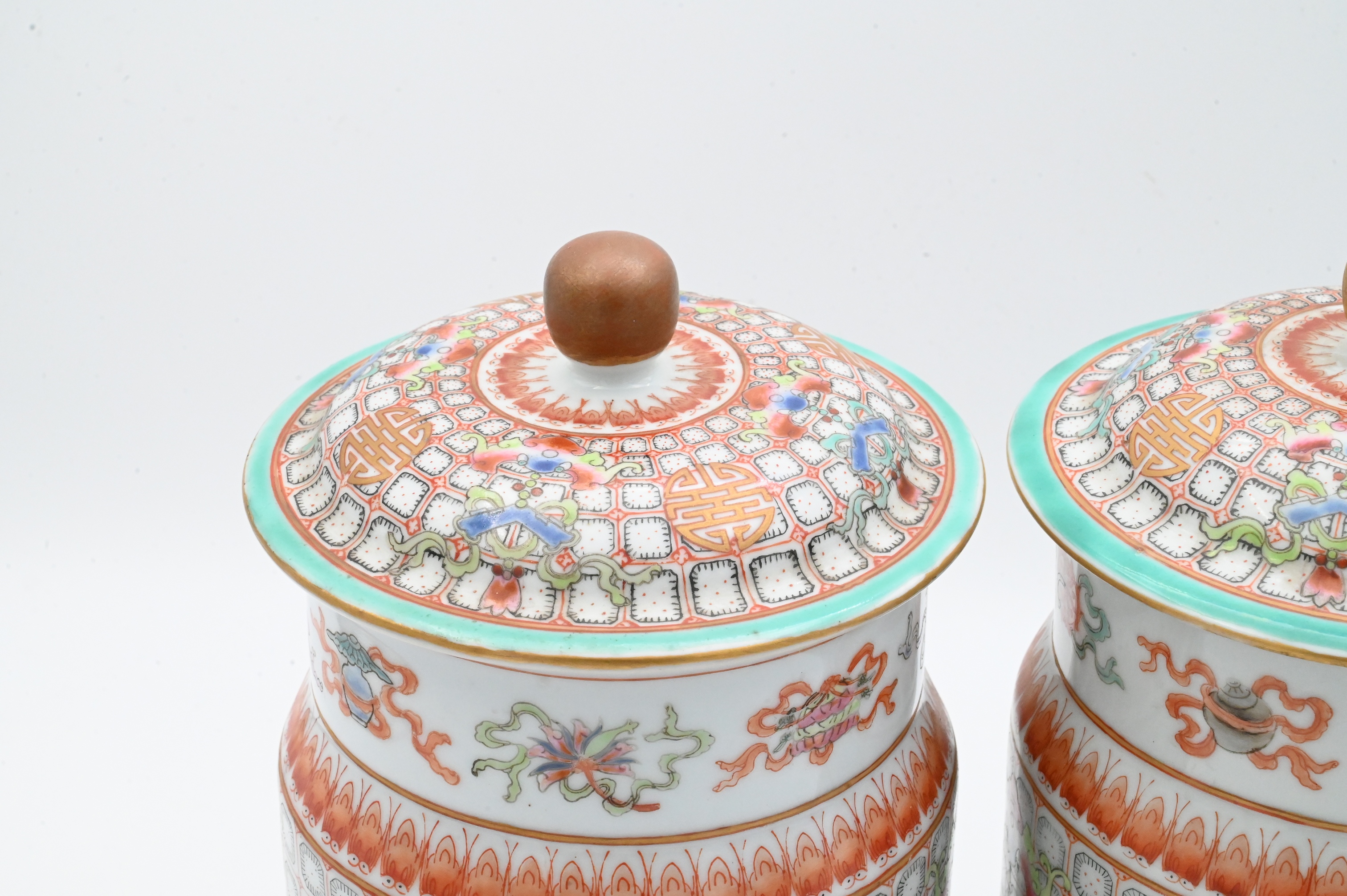 Pair of Chinese Famille Rose Porcelain Covered Jars