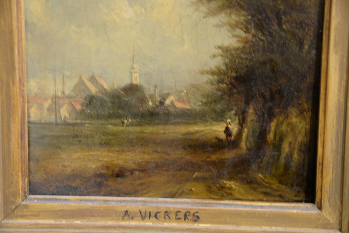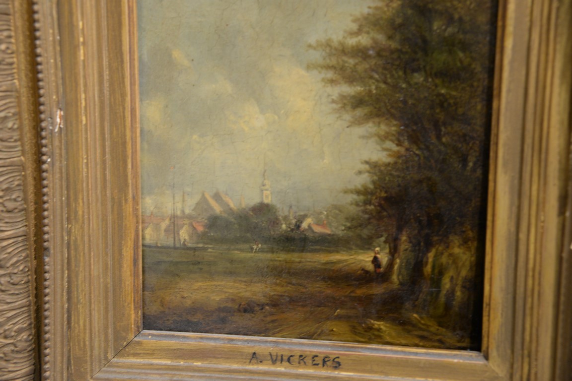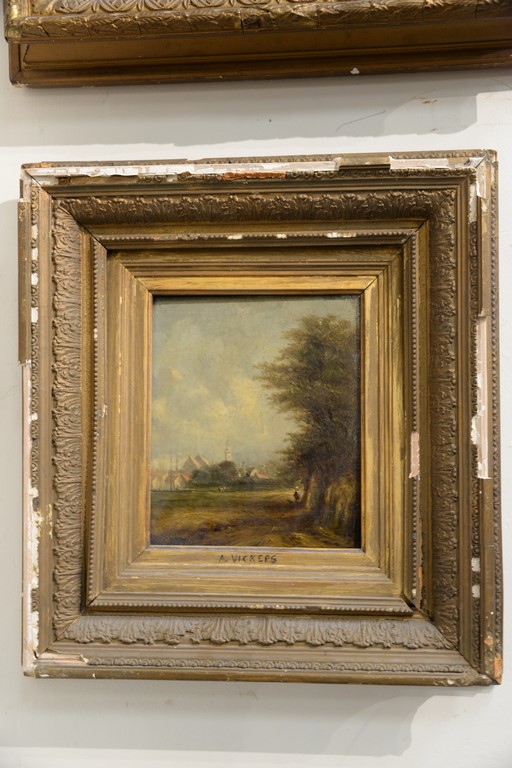 18th/19th Century oil on panel Town’s Edge Landscape signed lower right illegibly 9 x 7 1/4