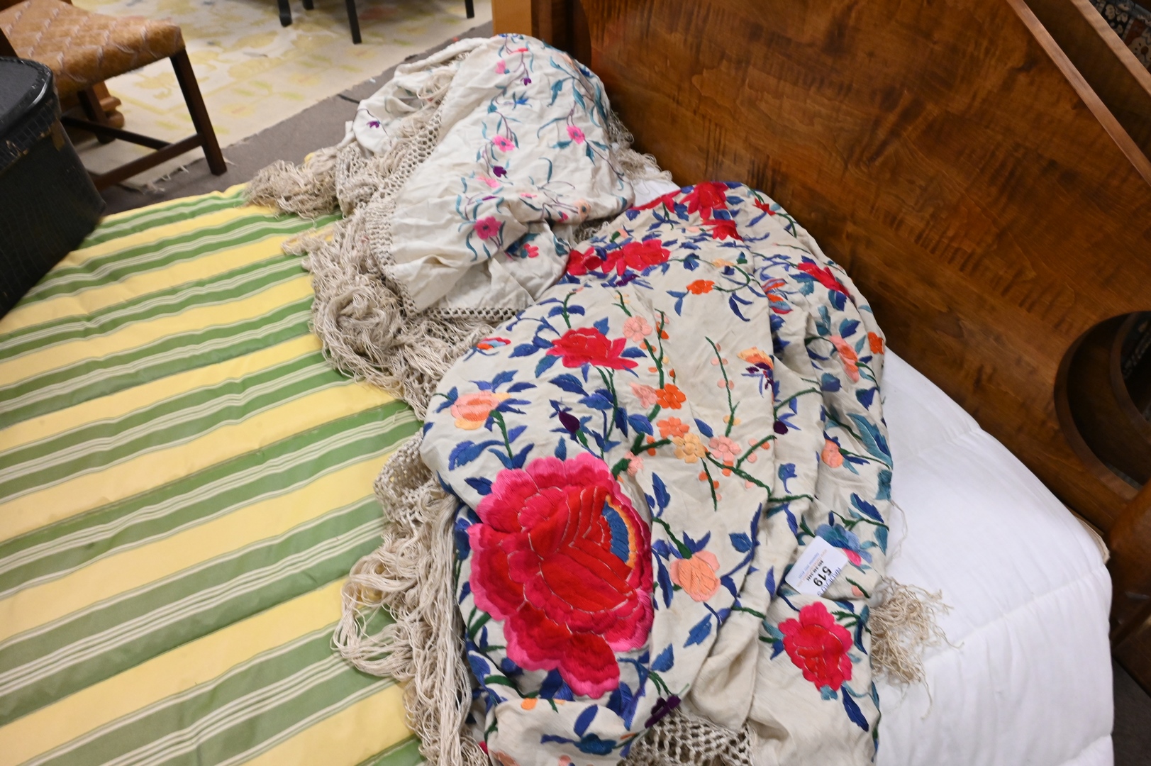 Two Chinese Embroided Piano Shawls, 5’4 x 6′.