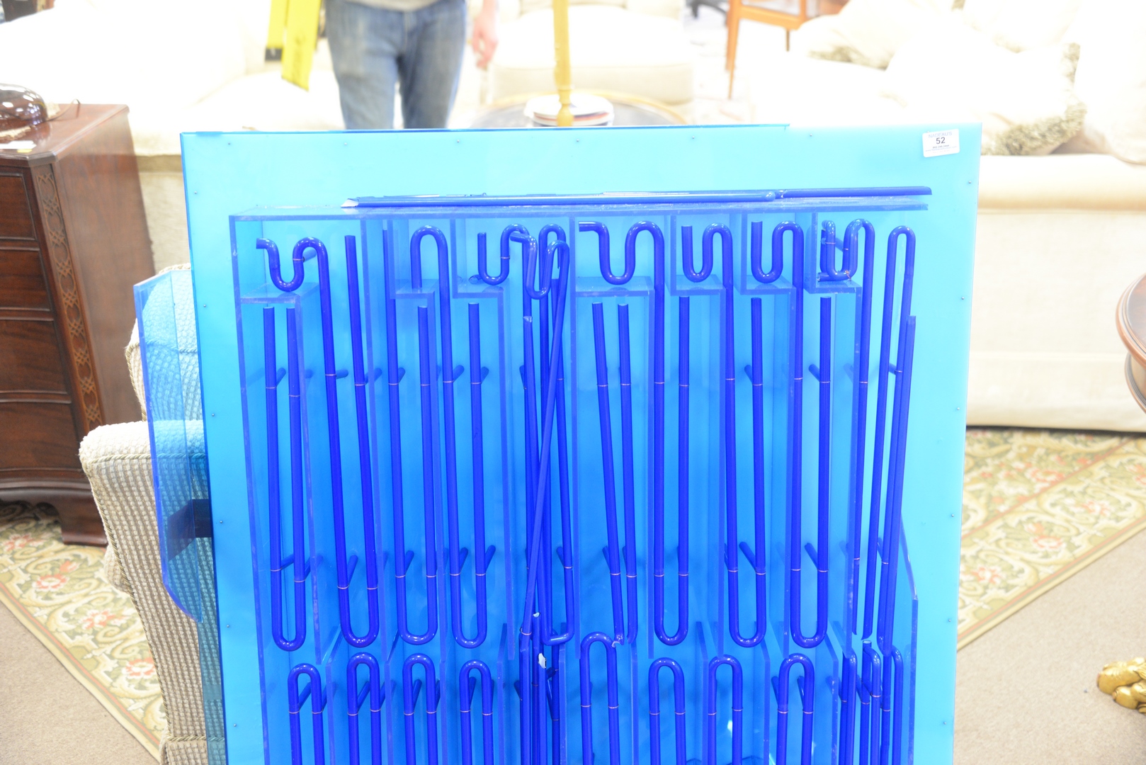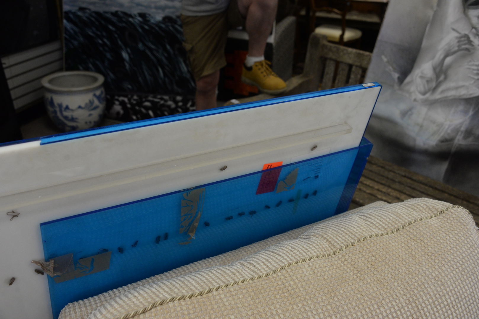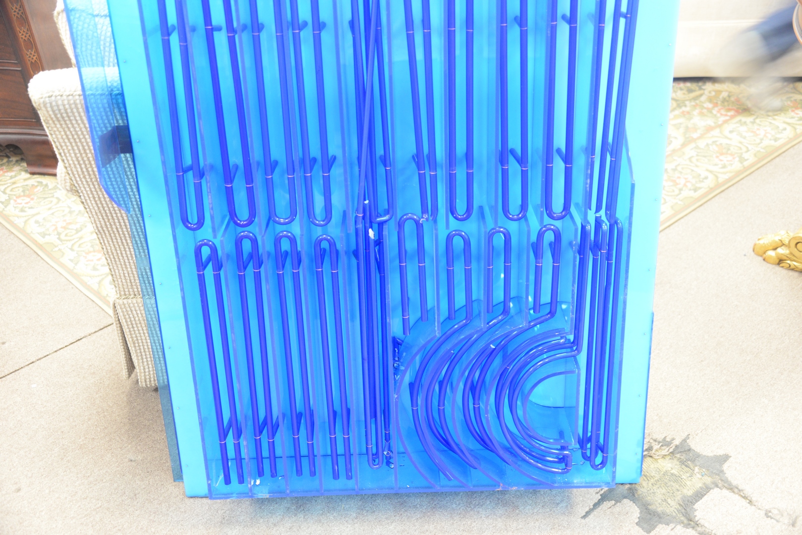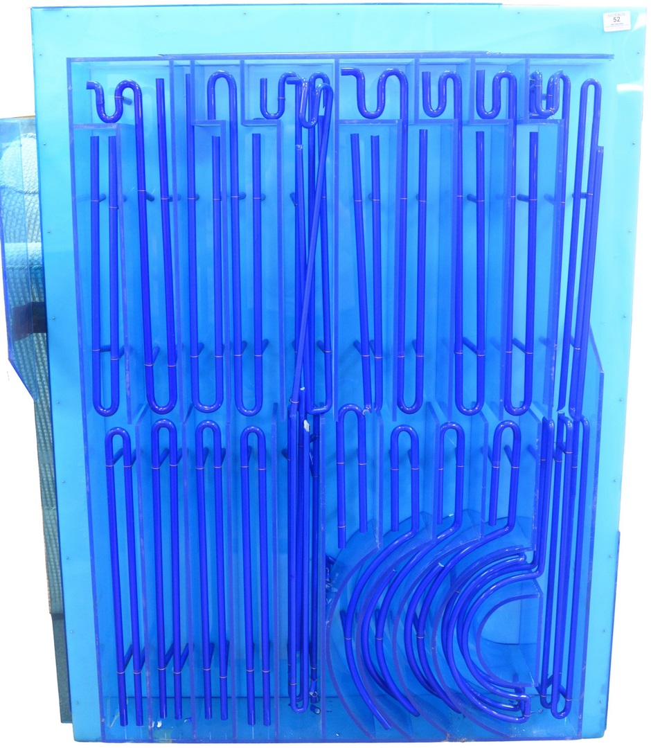 Lot 52: Chryssa (Greek, 1933-2013), Untitled, 1967, cast acrylic and glass, unsigned, overall: 34 1/2″ x 45 1/4″ x 5 3/4″, (heavily damaged).