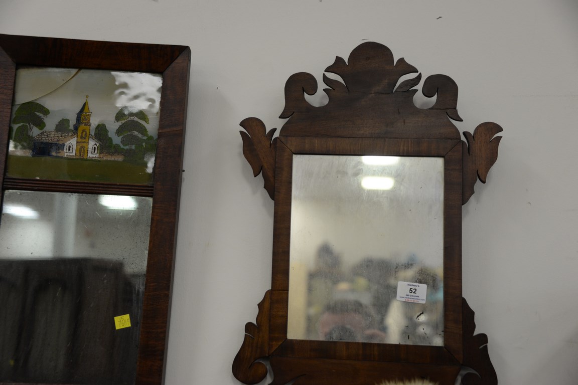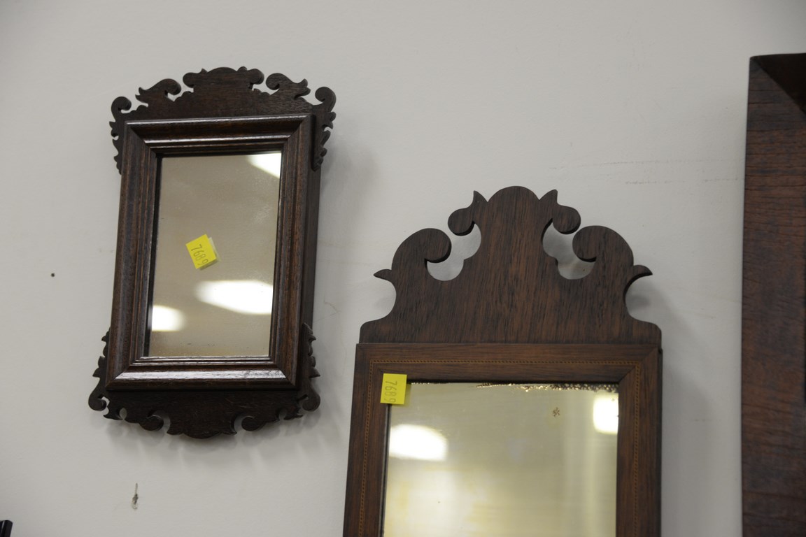 Lot 52: Four mirror lot to include one Chippendale, one federal, and two Chippendale style, sizes from 10 1/2 x 7 to 20 x 11.