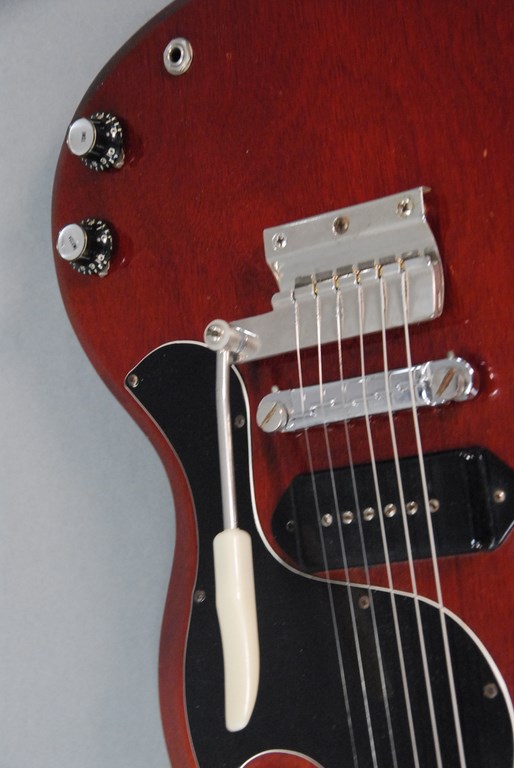 Gibson SG Junior Guitar, cardinal red, in very good condition, model #340997, made at Kalamazoo plant, USA in 1966 in fitted Gibson Guitar case. lg. 39in.